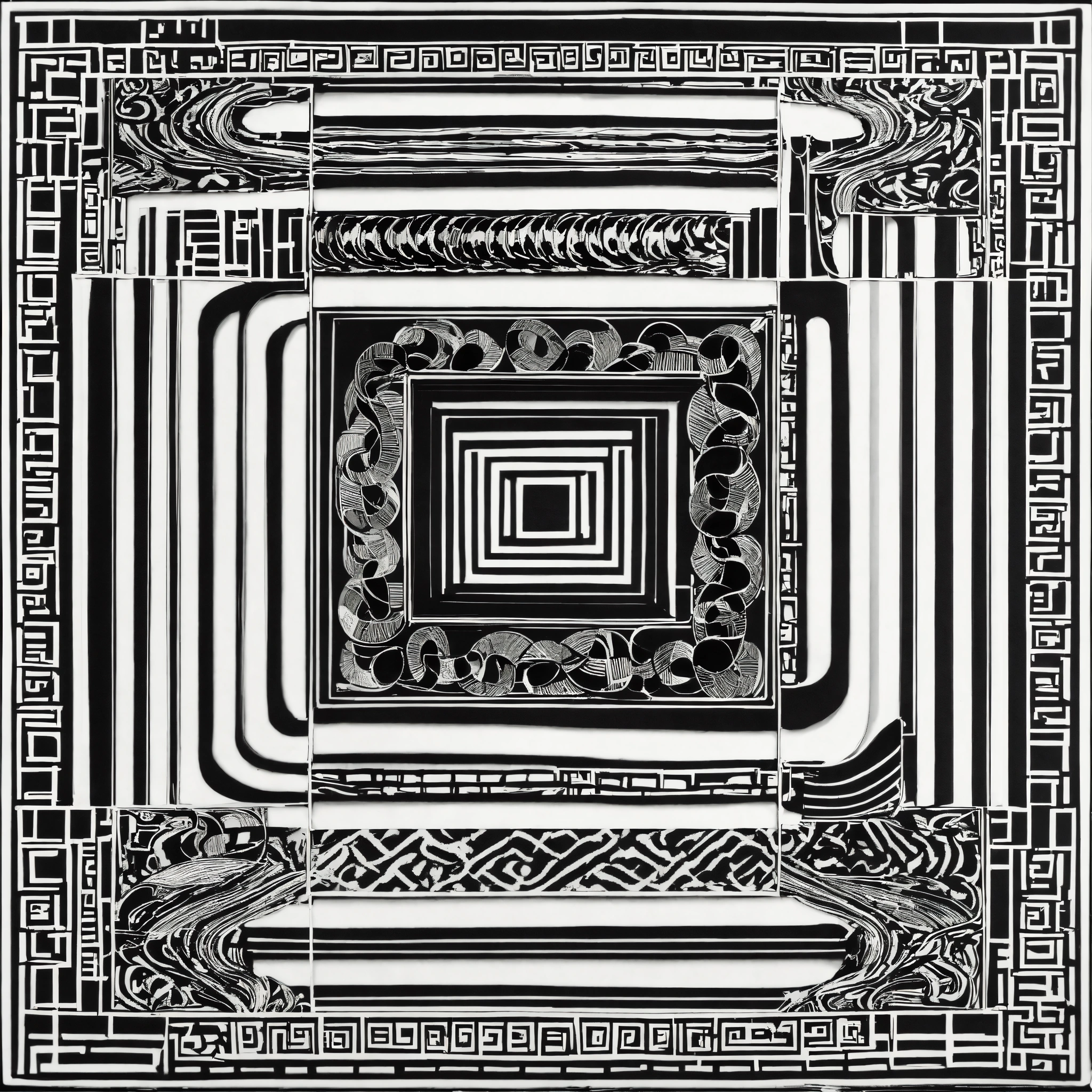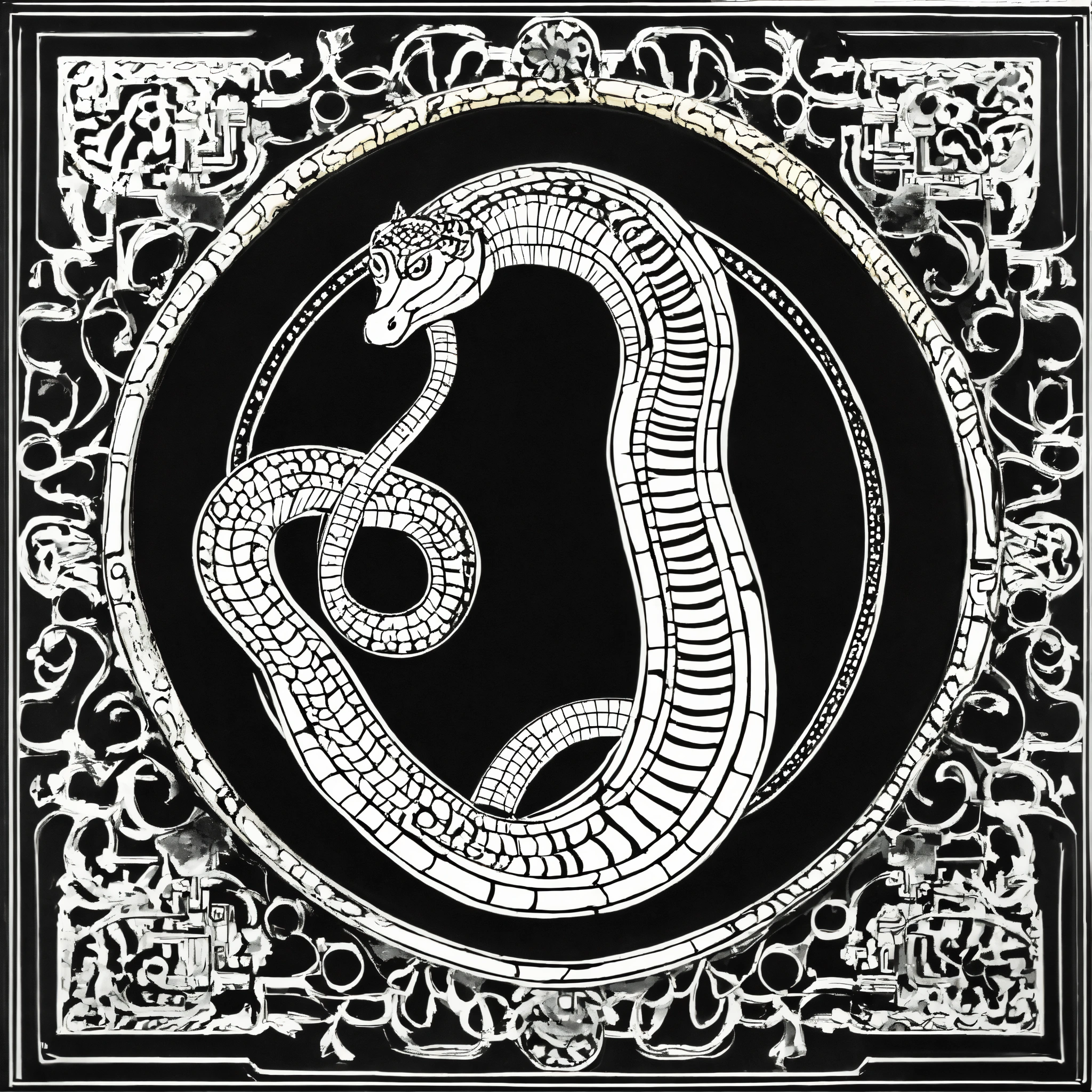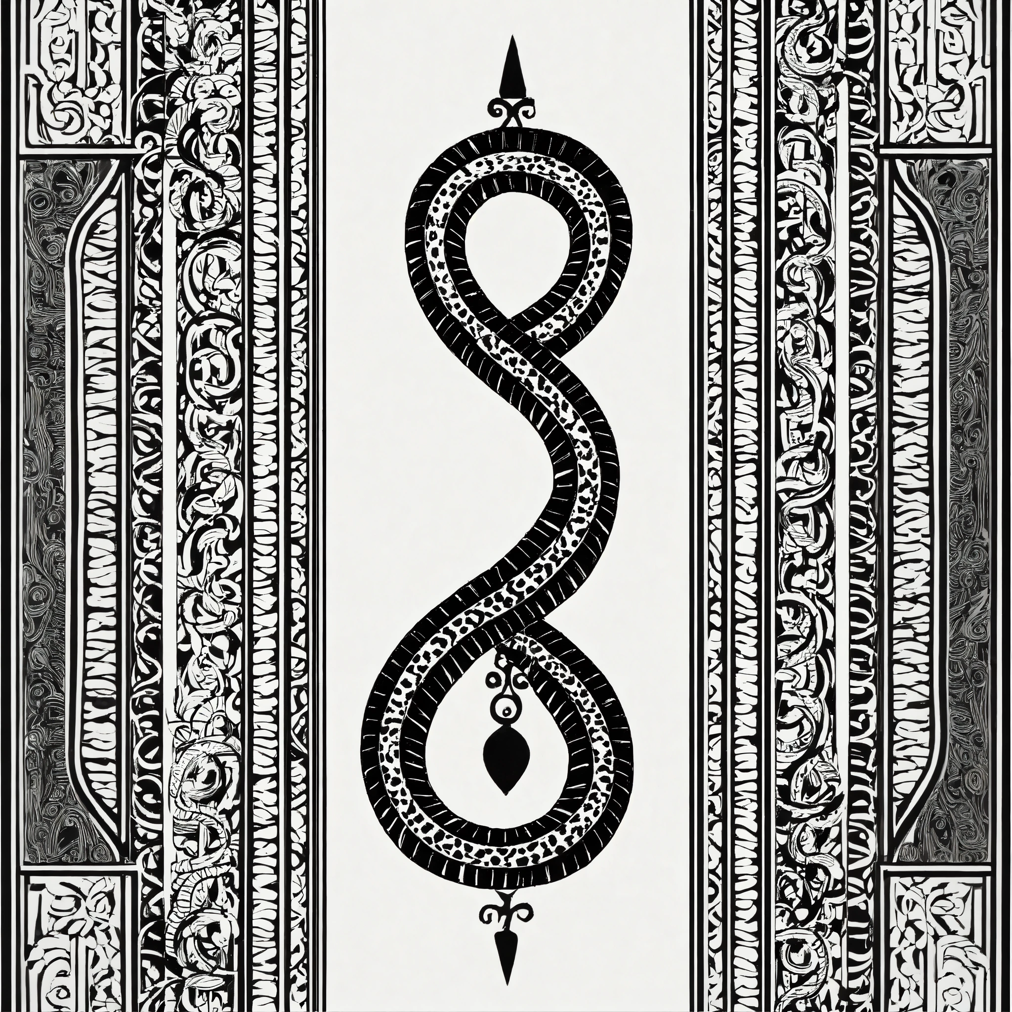 Black and white ornament in the form of a straight line in the shape of a snake