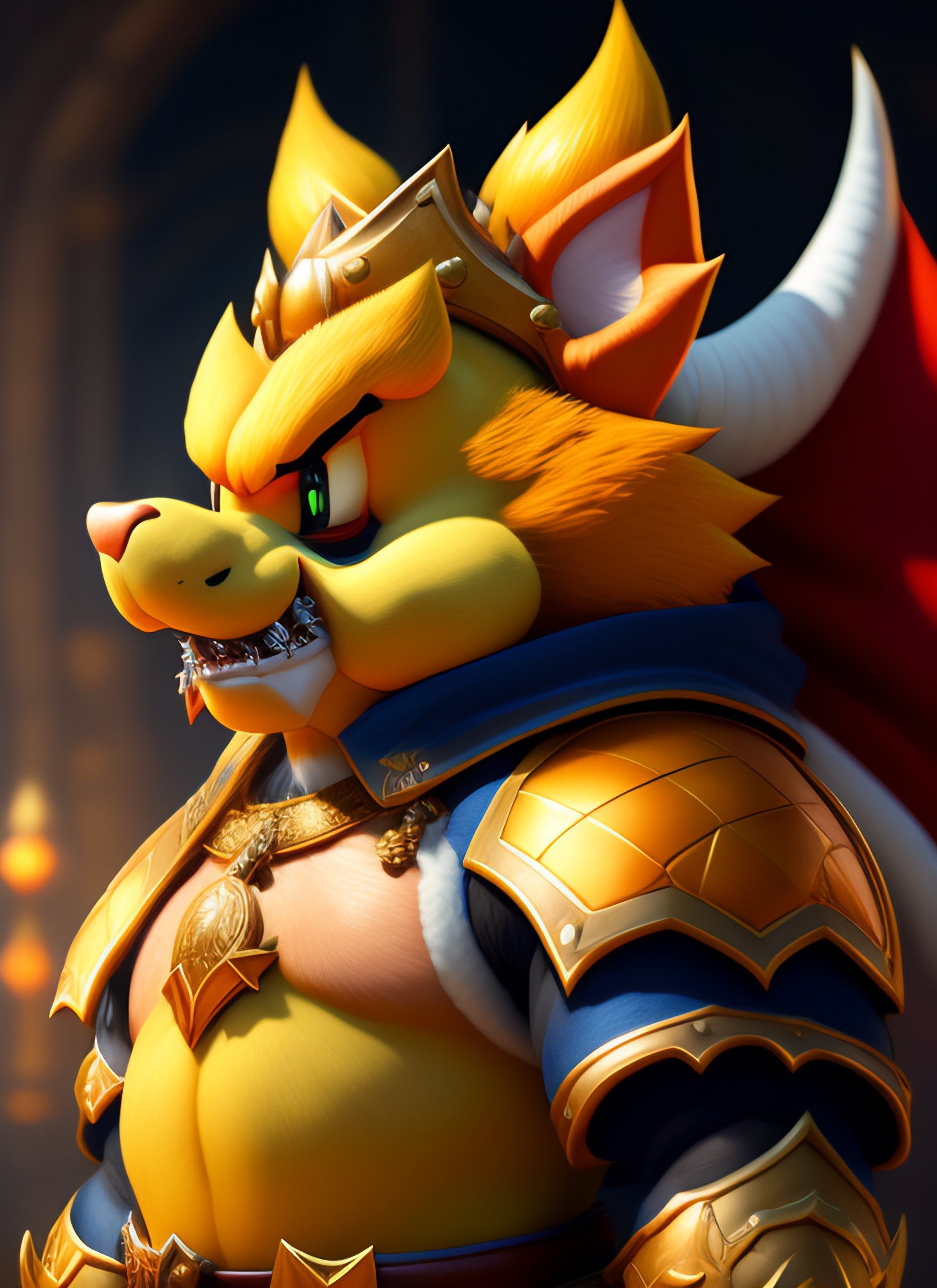 A detailed portrait of bowser from super mario, by justin gerard and greg rutkowski, digital art, realistic painting, dnd, character design, trending on artstation