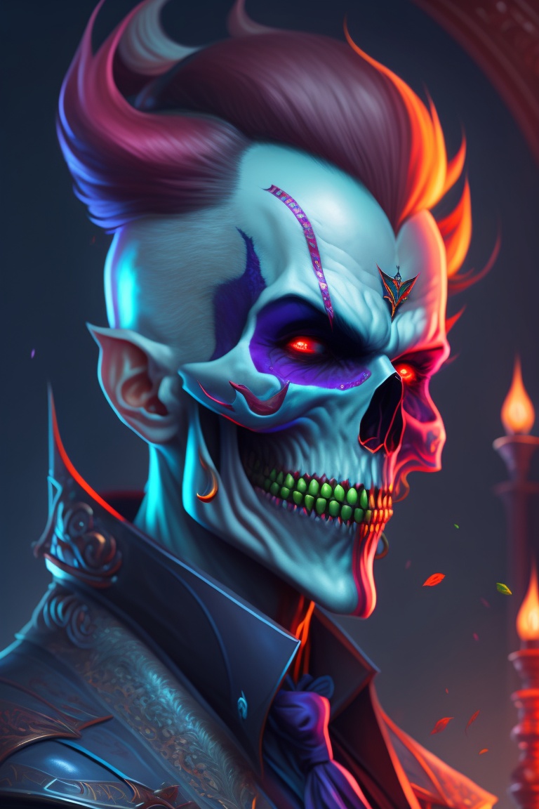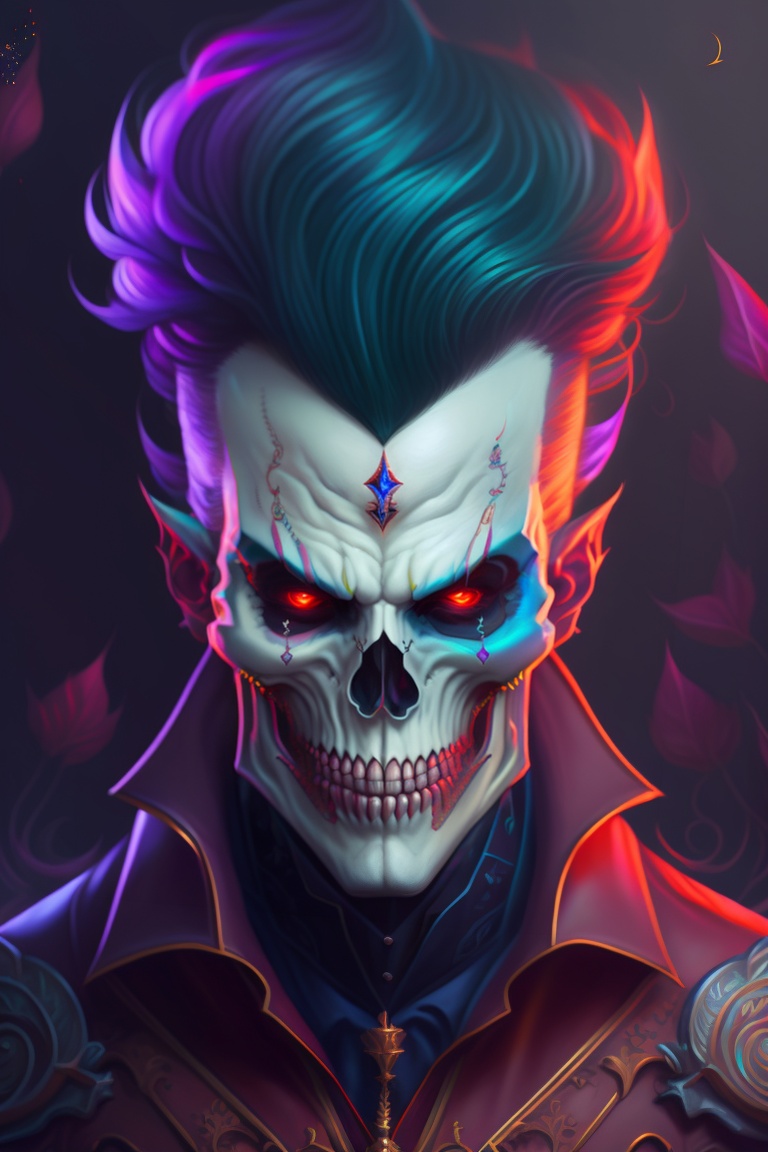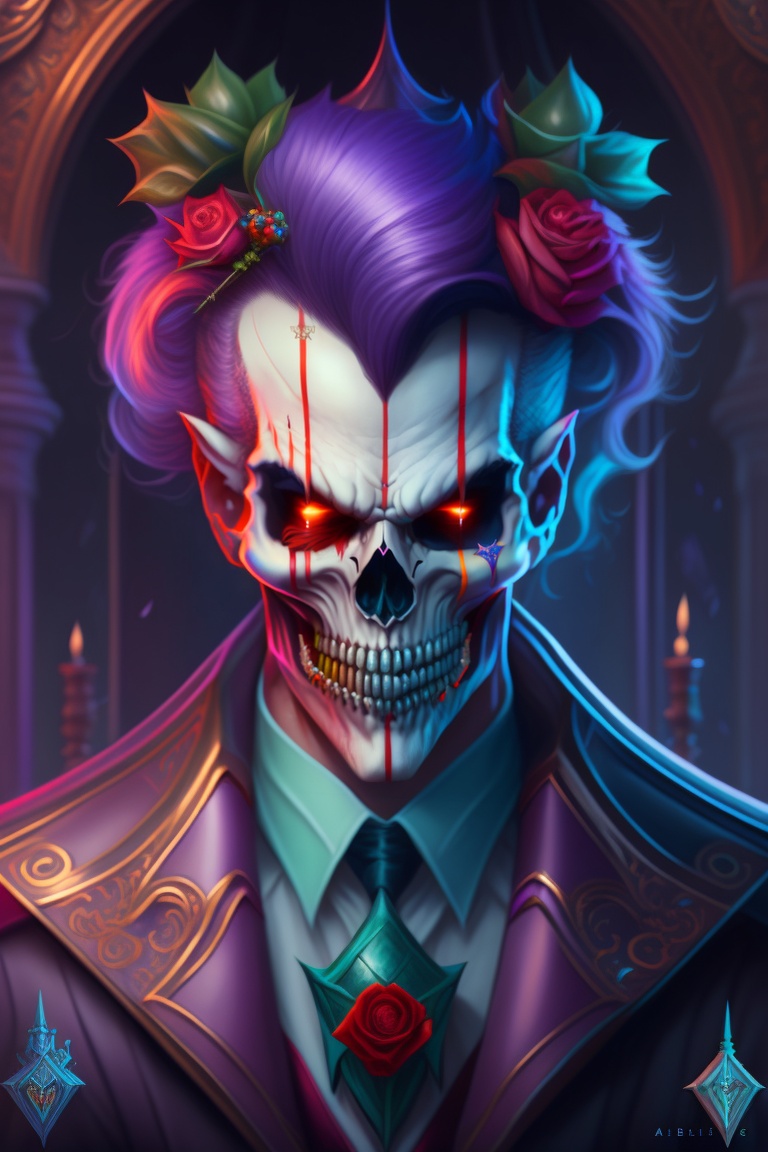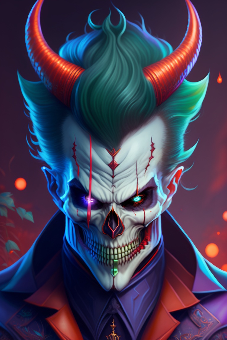 Skull joker demon concept art portrait by casey weldon, olga kvasha, miho hirano, hyperdetailed intricately detailed gothic art trending on artstation triadic colors unreal engine 5 detailed matte painting, deep color, fantastical, intricate detail, splash screen, complementary colors, fantasy concept art, 8k resolution, gothic deviantart masterpiece, fullbody