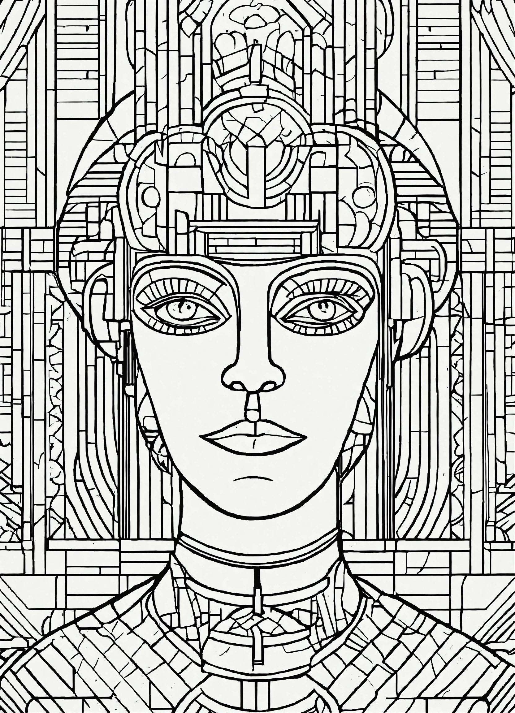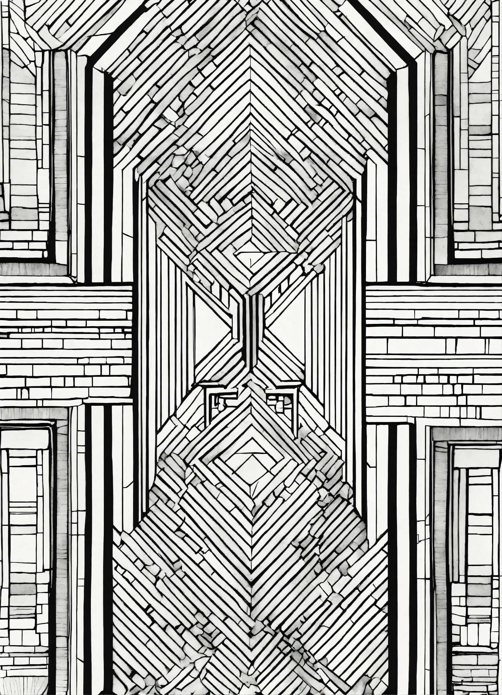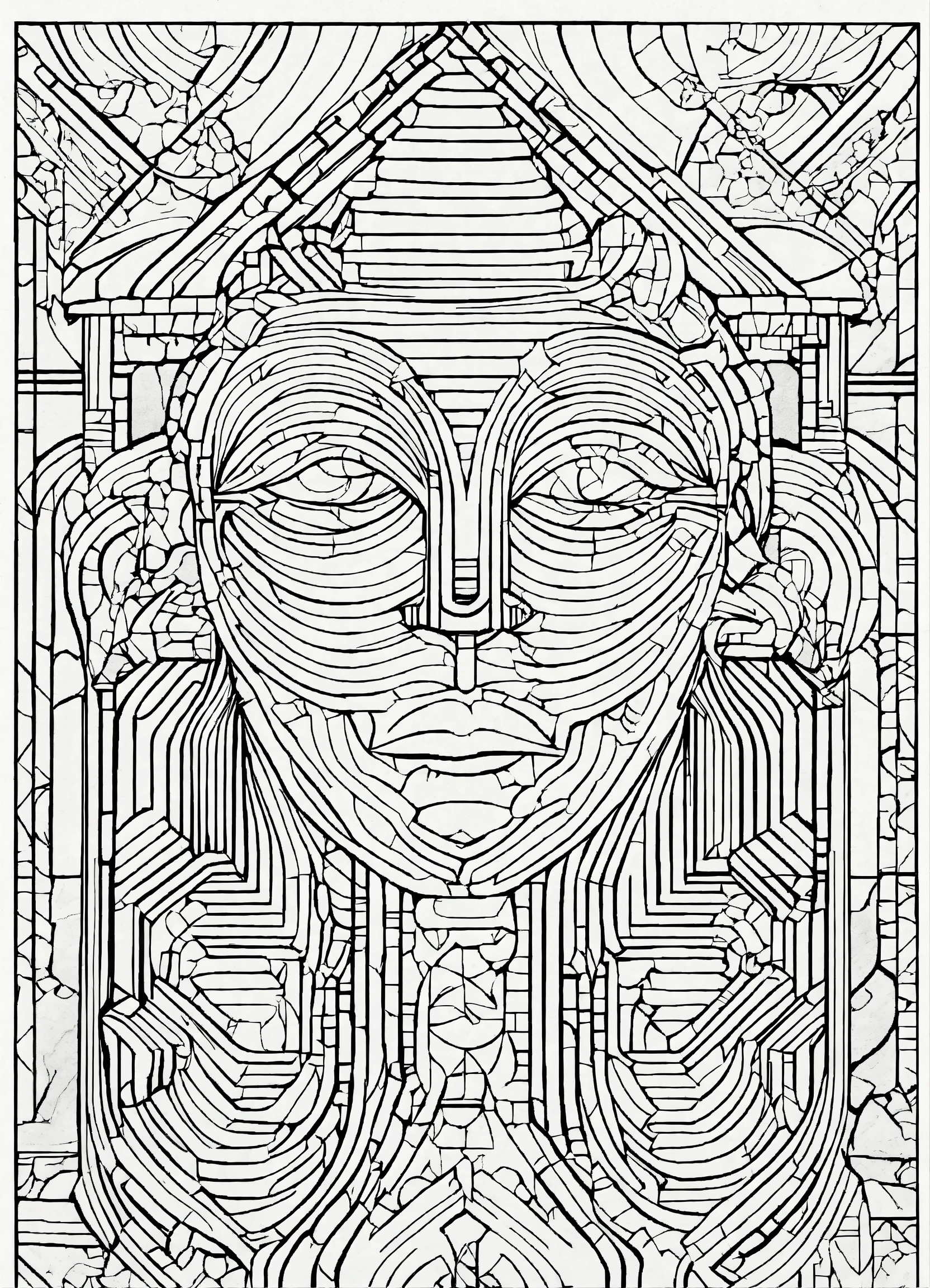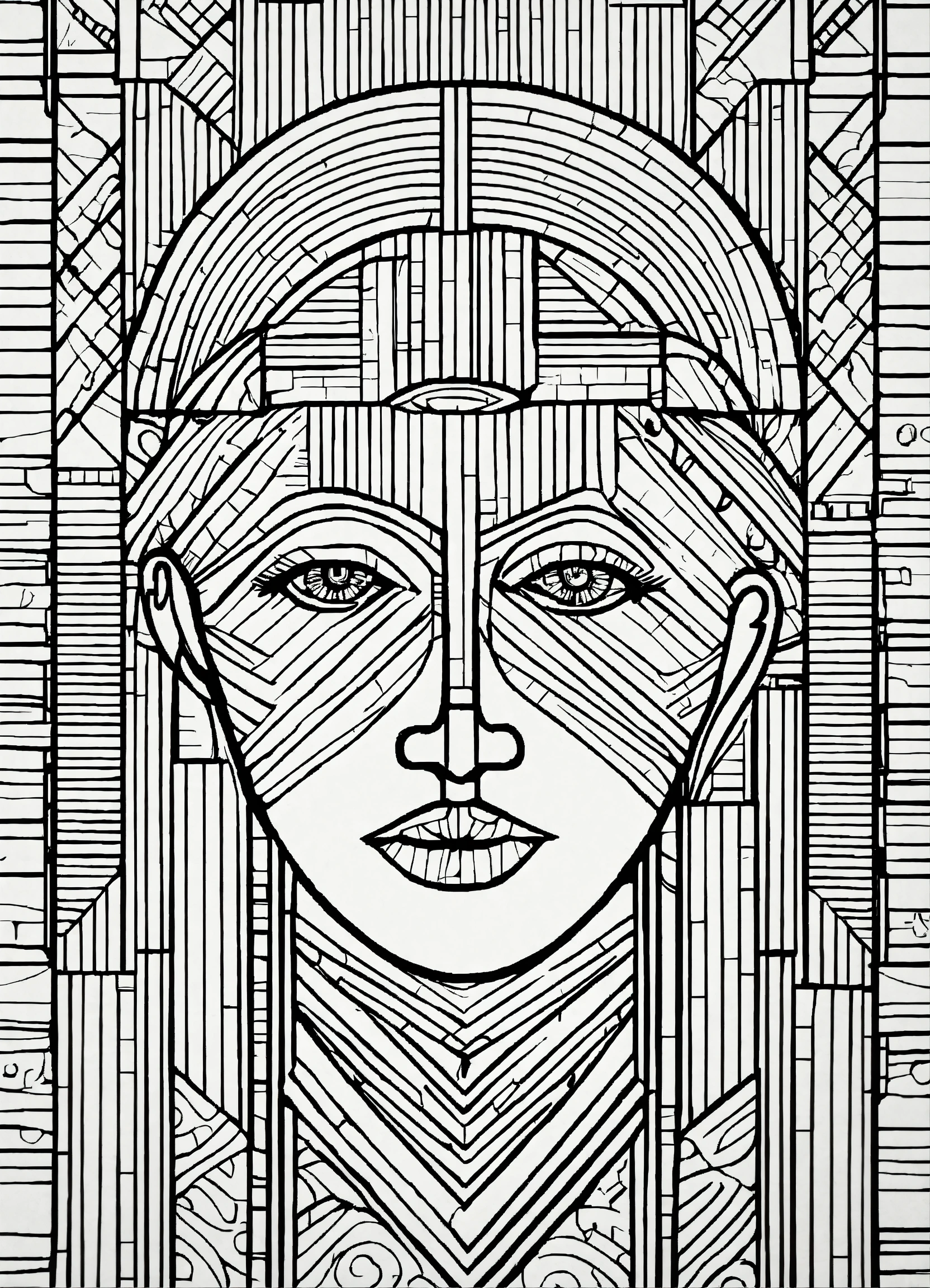 Coloring page for adults, bold lines, dark lines, geometric pattern the know-it-all moron, weird, geometric pattern moron face, white background, clean line art, fine line art