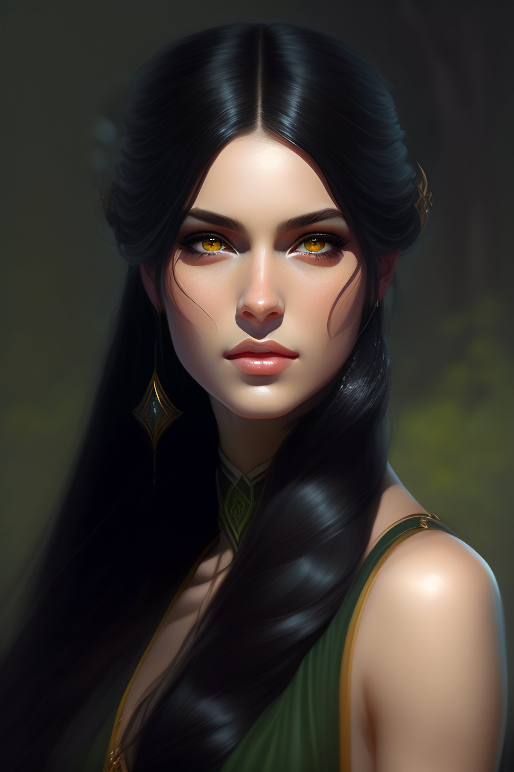 Girl with long straight black hair, fantasy style, portrait, painting, glasses, rpg, dnd, oil painting, portrait extremely detailed, artgerm greg rutkowski greg, brazilian, dark green eyes