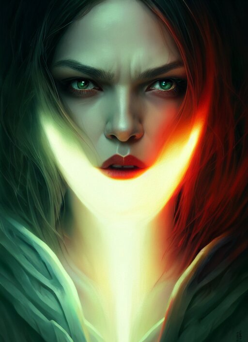 Full face epic portrait, vampire with glowing eyes, elden ring, matte painting concept art, midjourney, beautifully backlit, swirly vibrant color lines, majestic, cinematic aesthetic, smooth, intricate, 8 k, by ilya kuvshinov, artgerm, darius zawadzki and zdizslaw beksinski