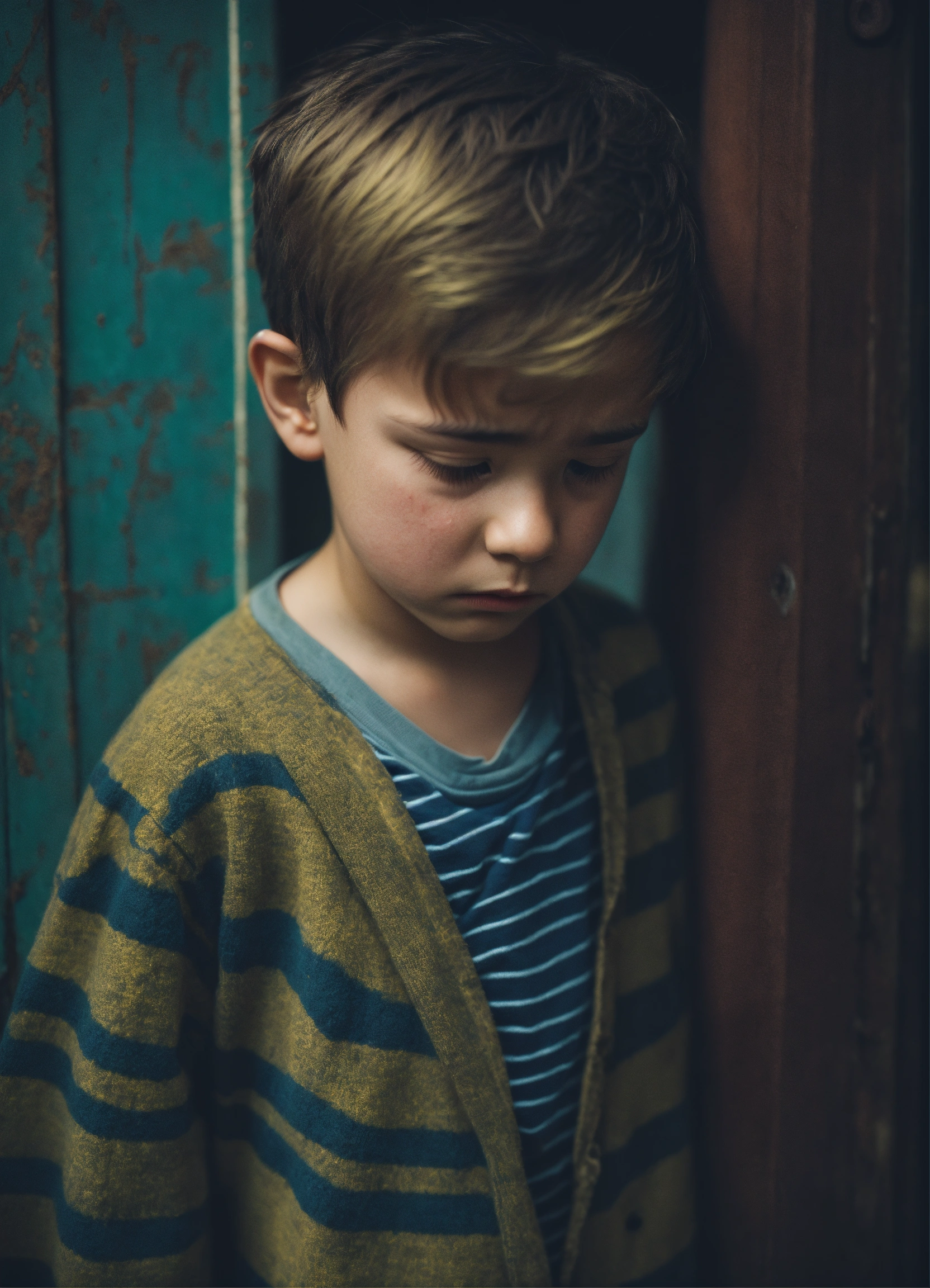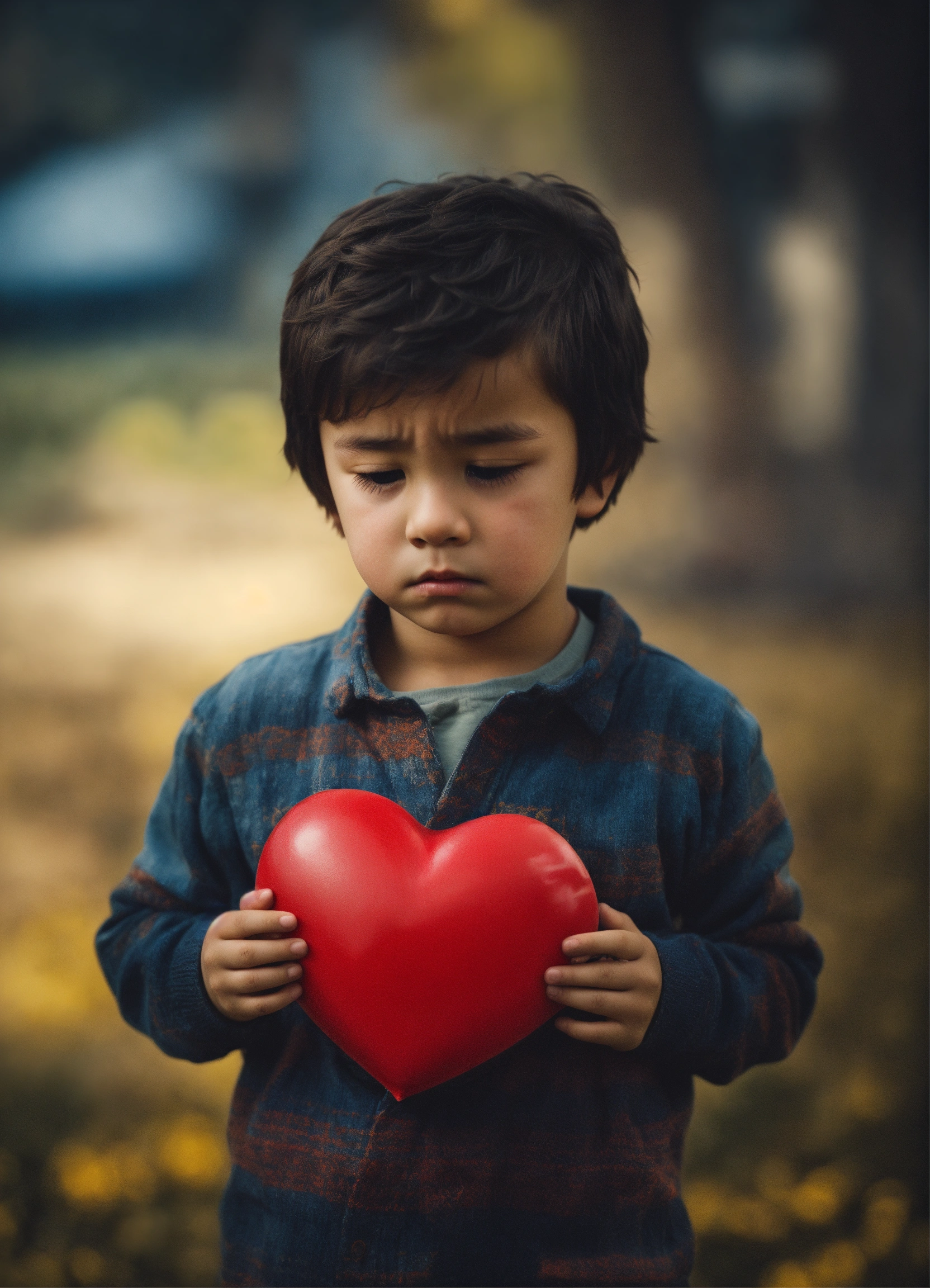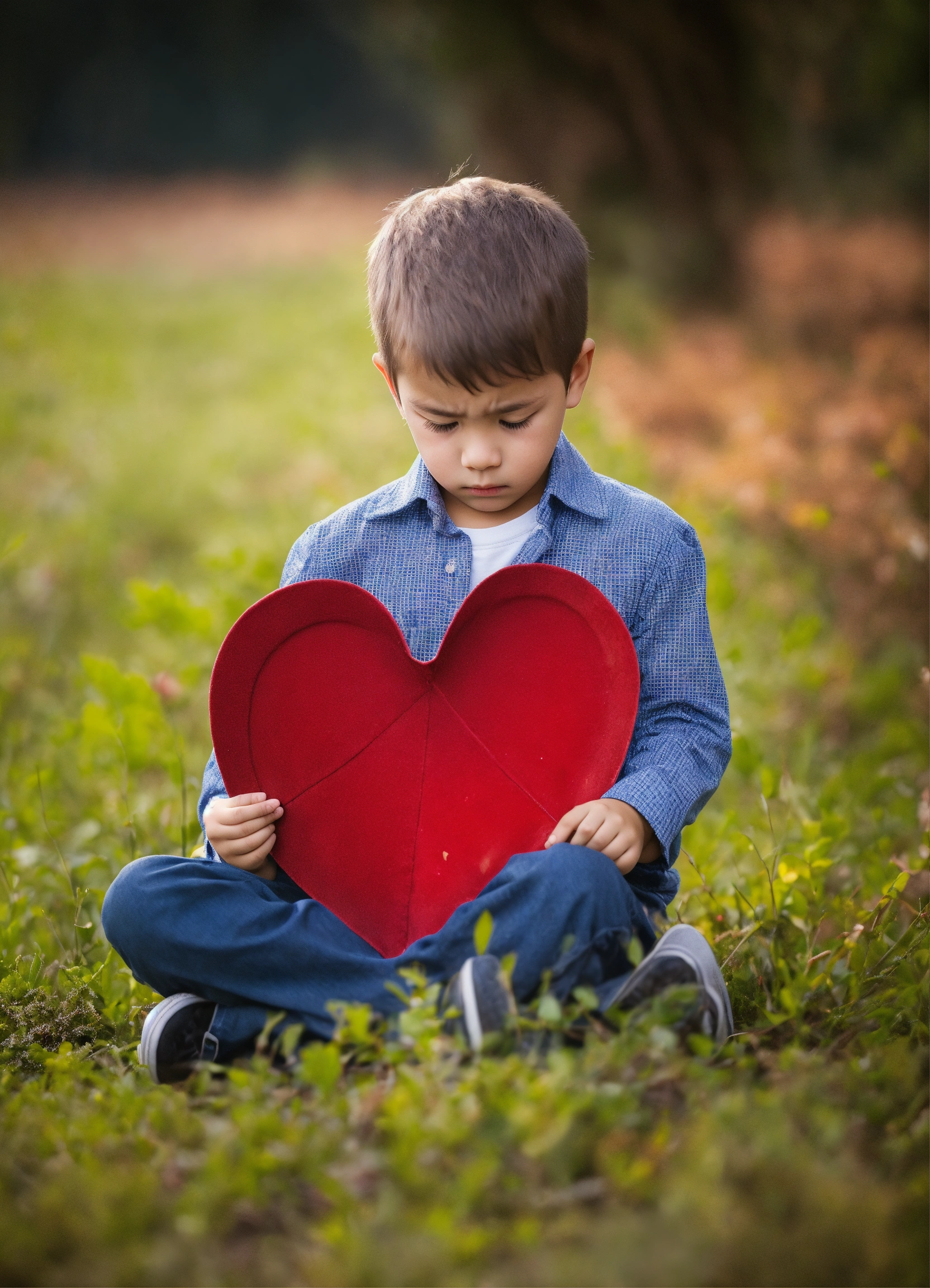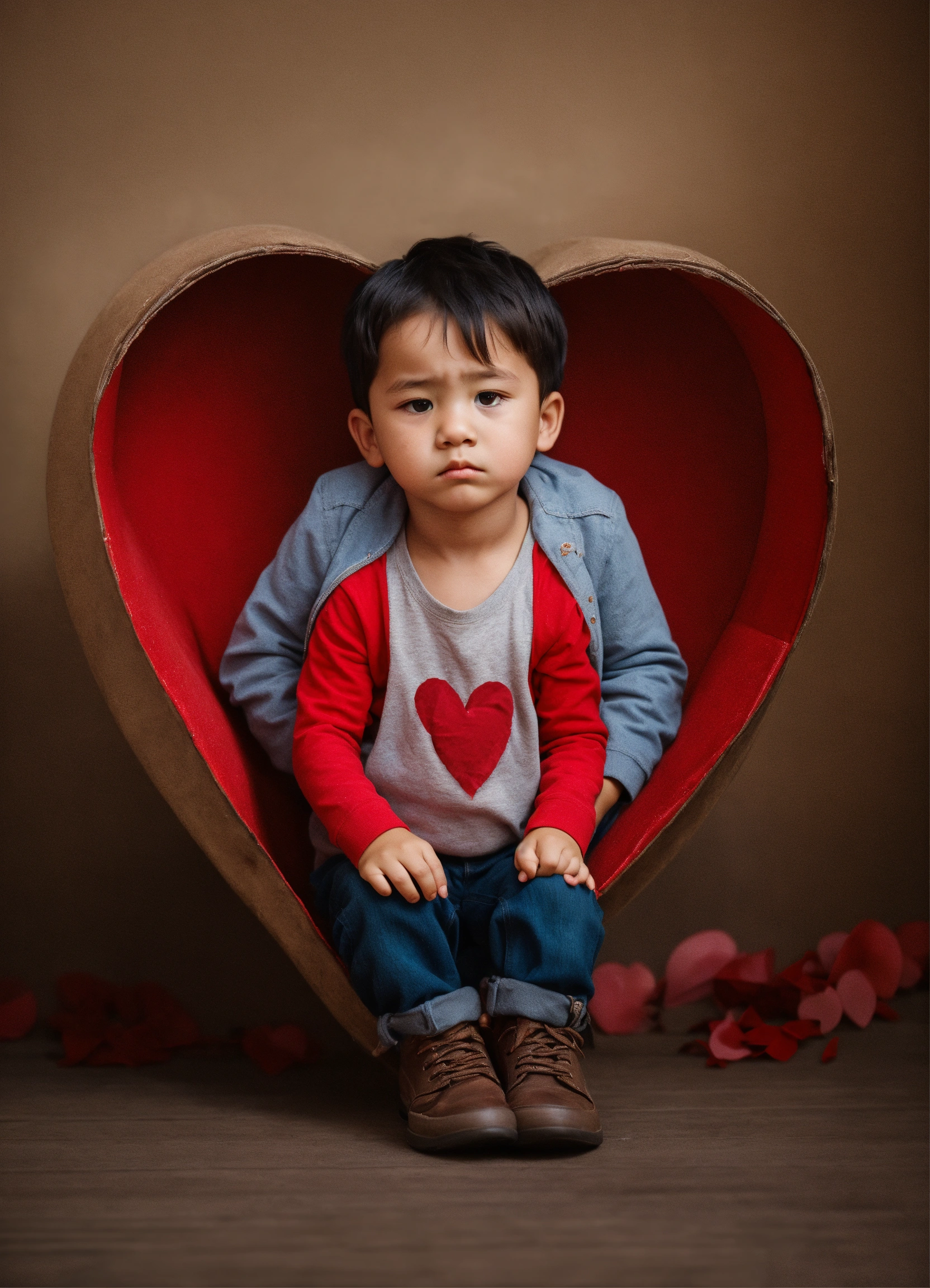 Alittle boy in a heart sad