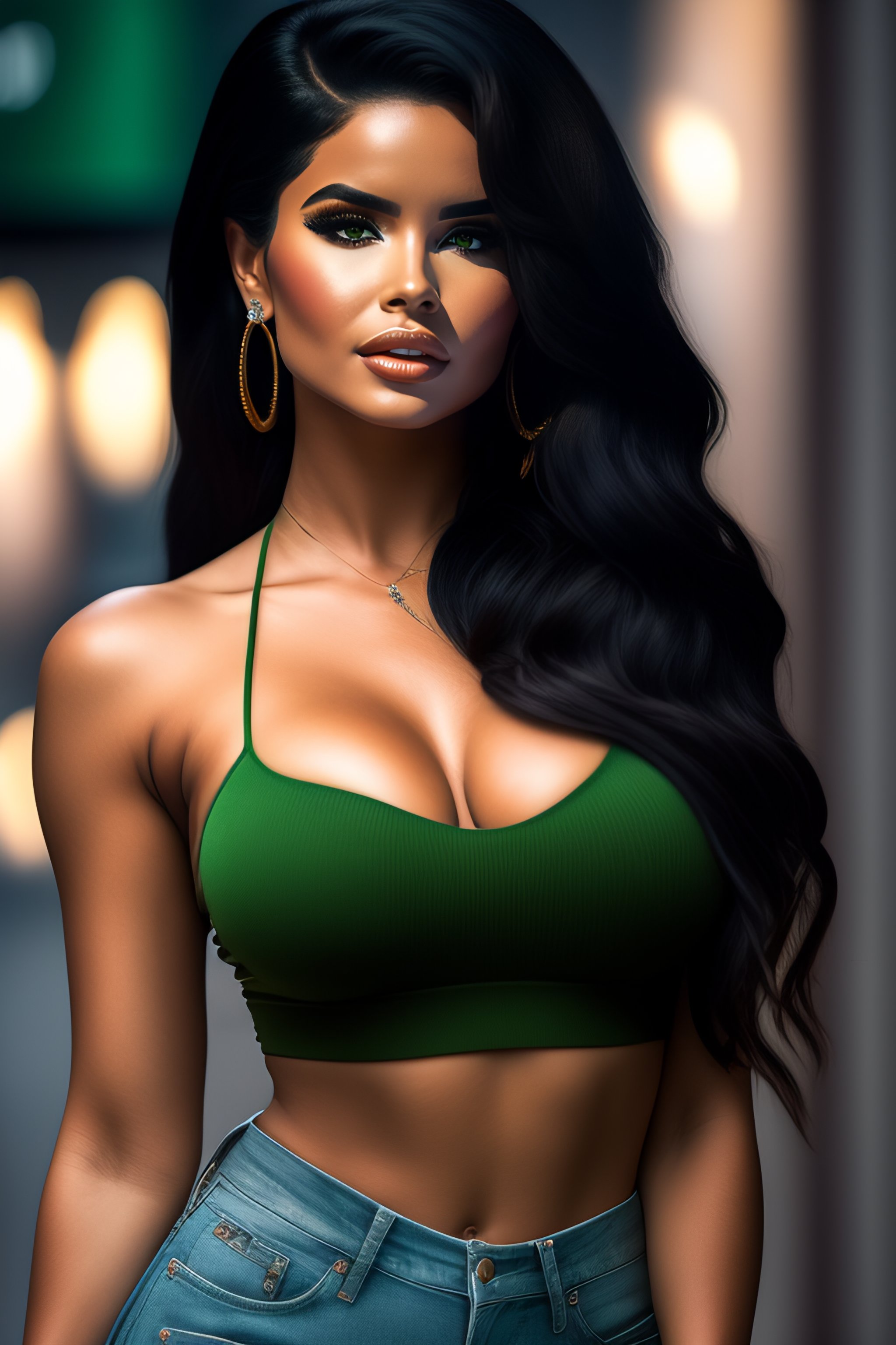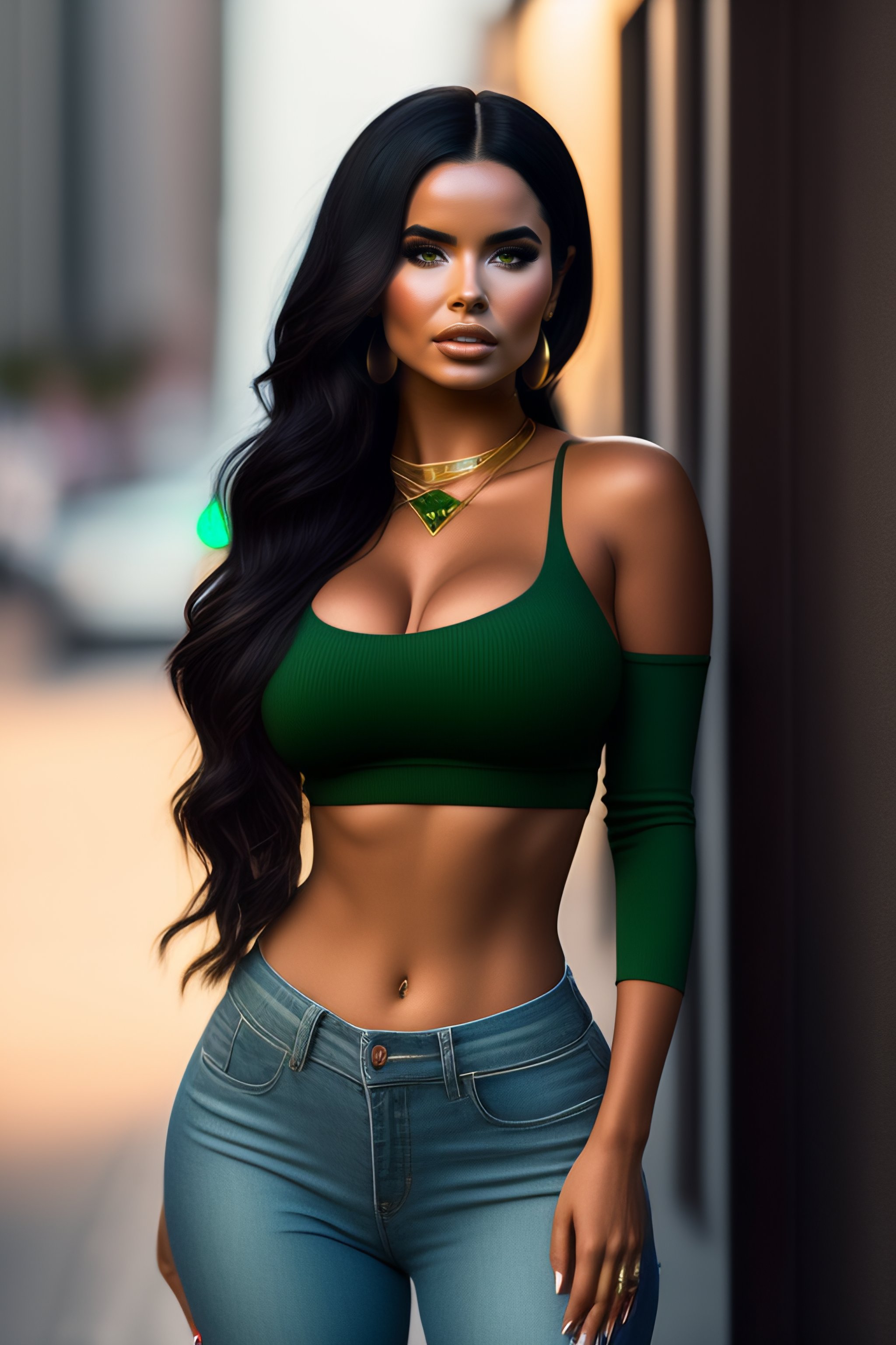 Full body length studio photos of demi rose with black hair and green eyes, wearing t-shirt and jeans, beautiful face, photorealistic, high details, 8k, branch with kaa from jungle book