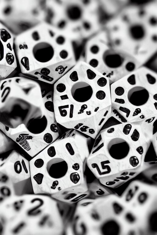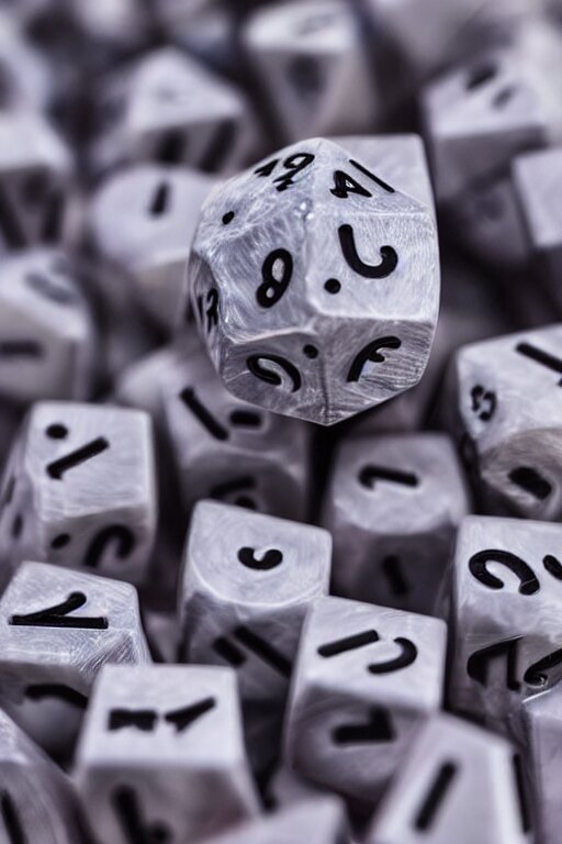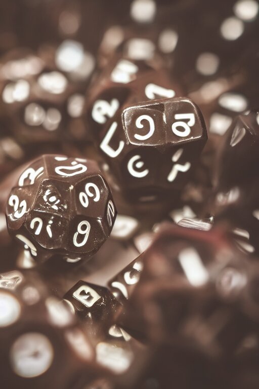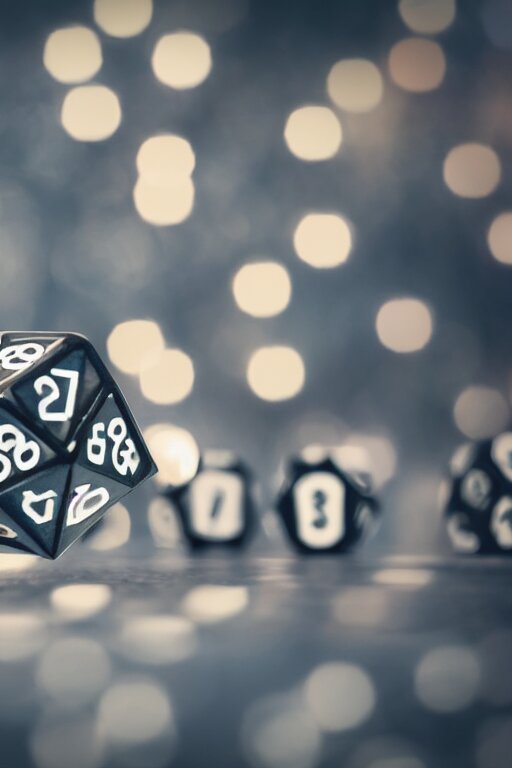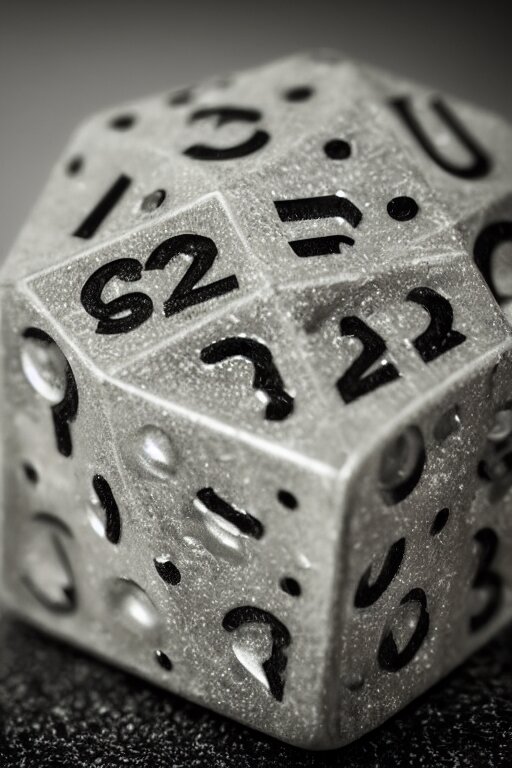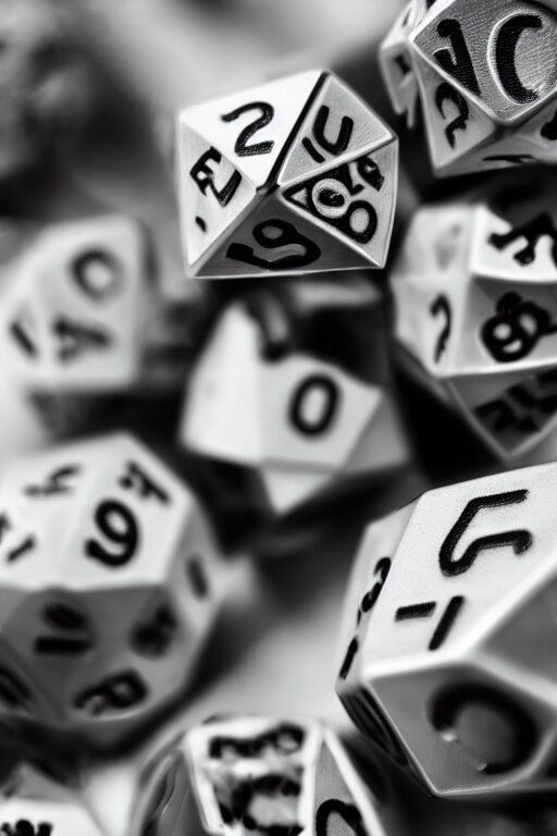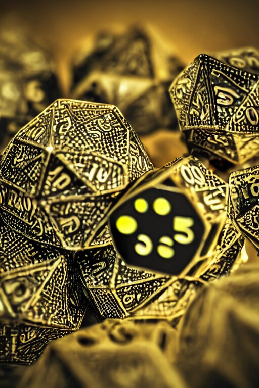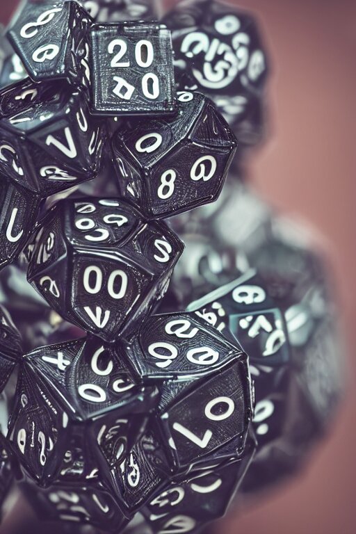 Closeup photographyof a mutated and futuristic twenty sided dice, bokeh, sharp focus, intricate, highly detailed, 8k, cinematic, sharp focus