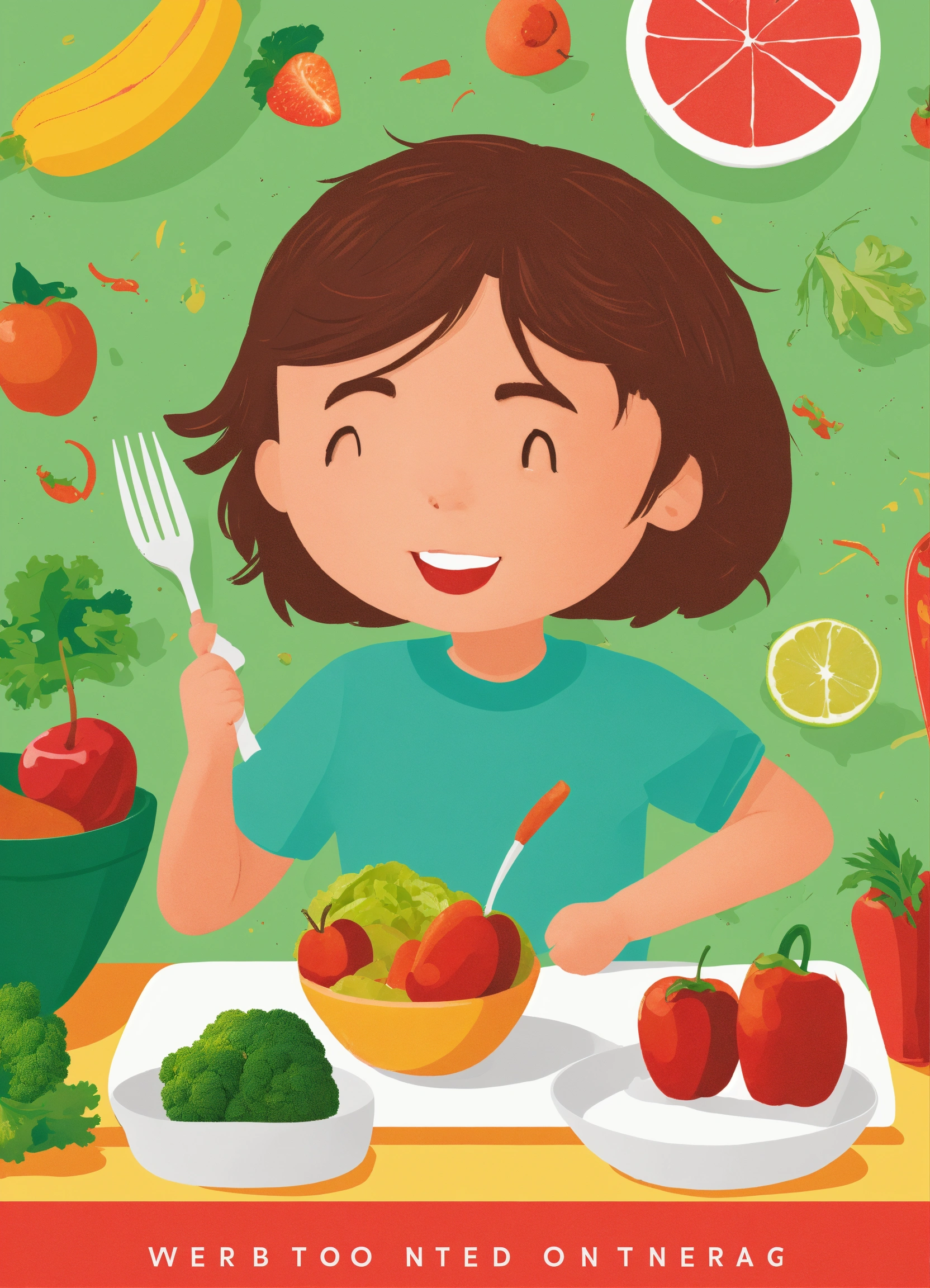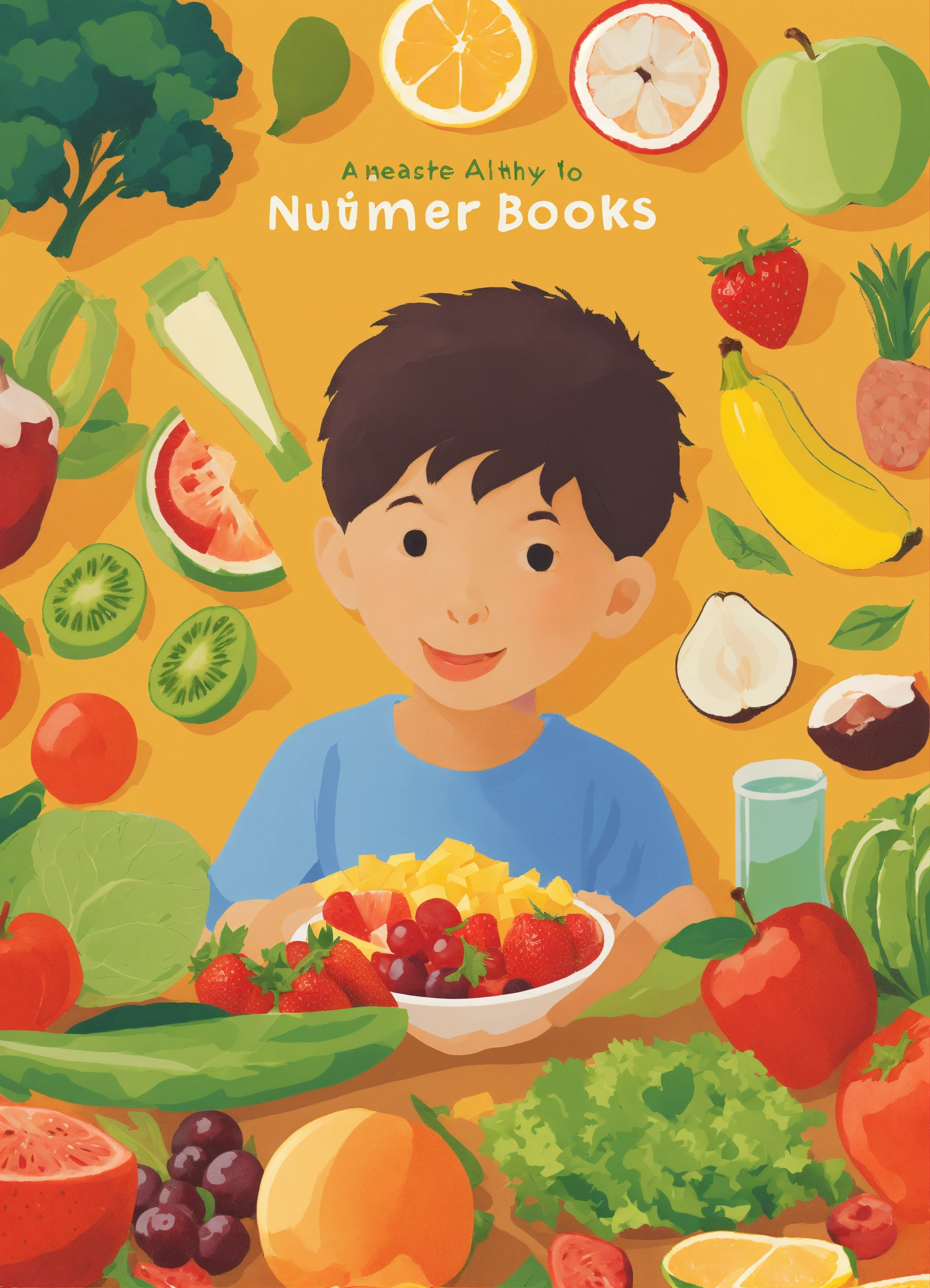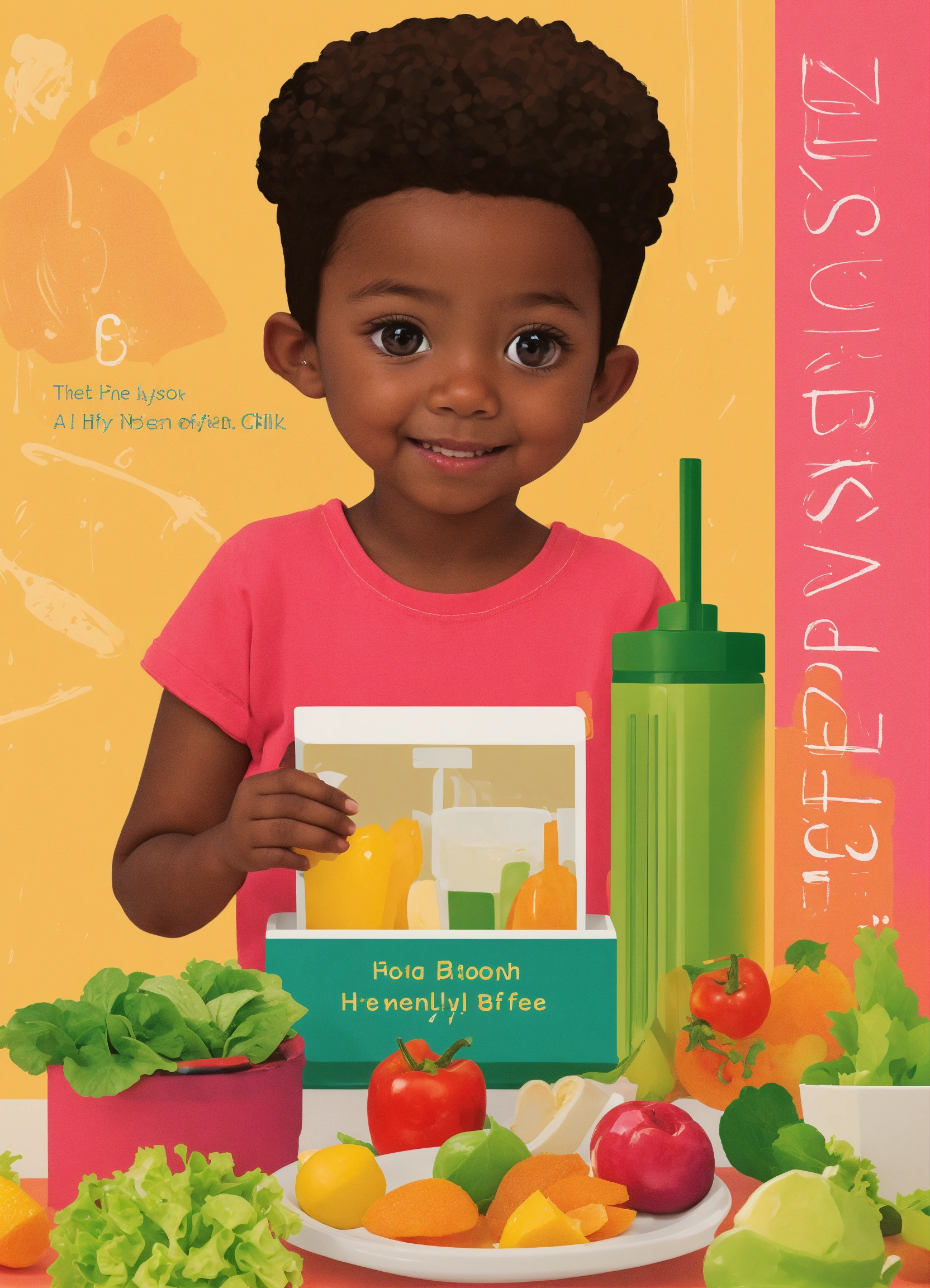 I need a nonfiction book cover, keep it minimalistic and simple, the book is about a healthy lifestyle for 8 year olds, make it modern and use different tones of color for the background, show a child playing and another child eating healthy food