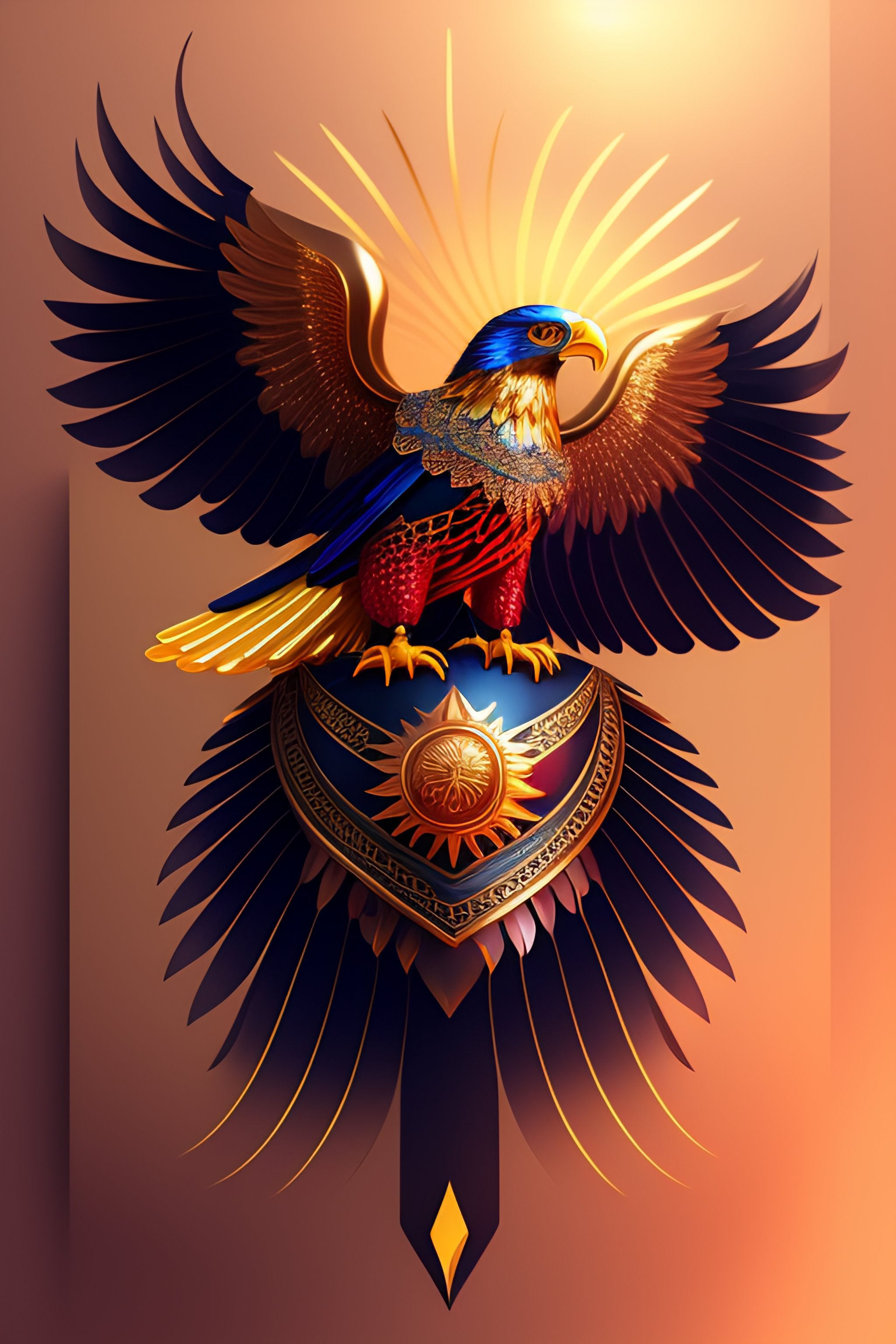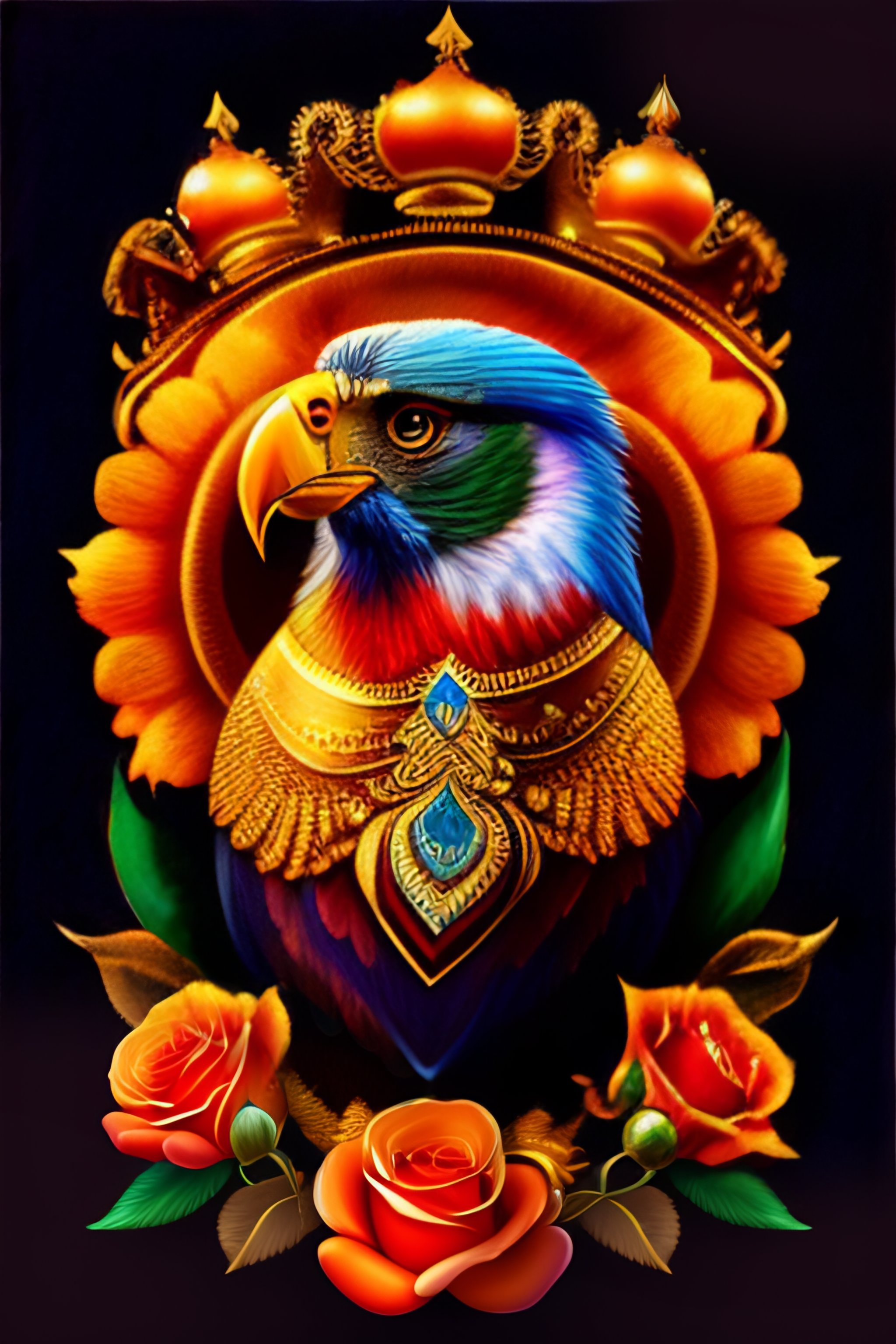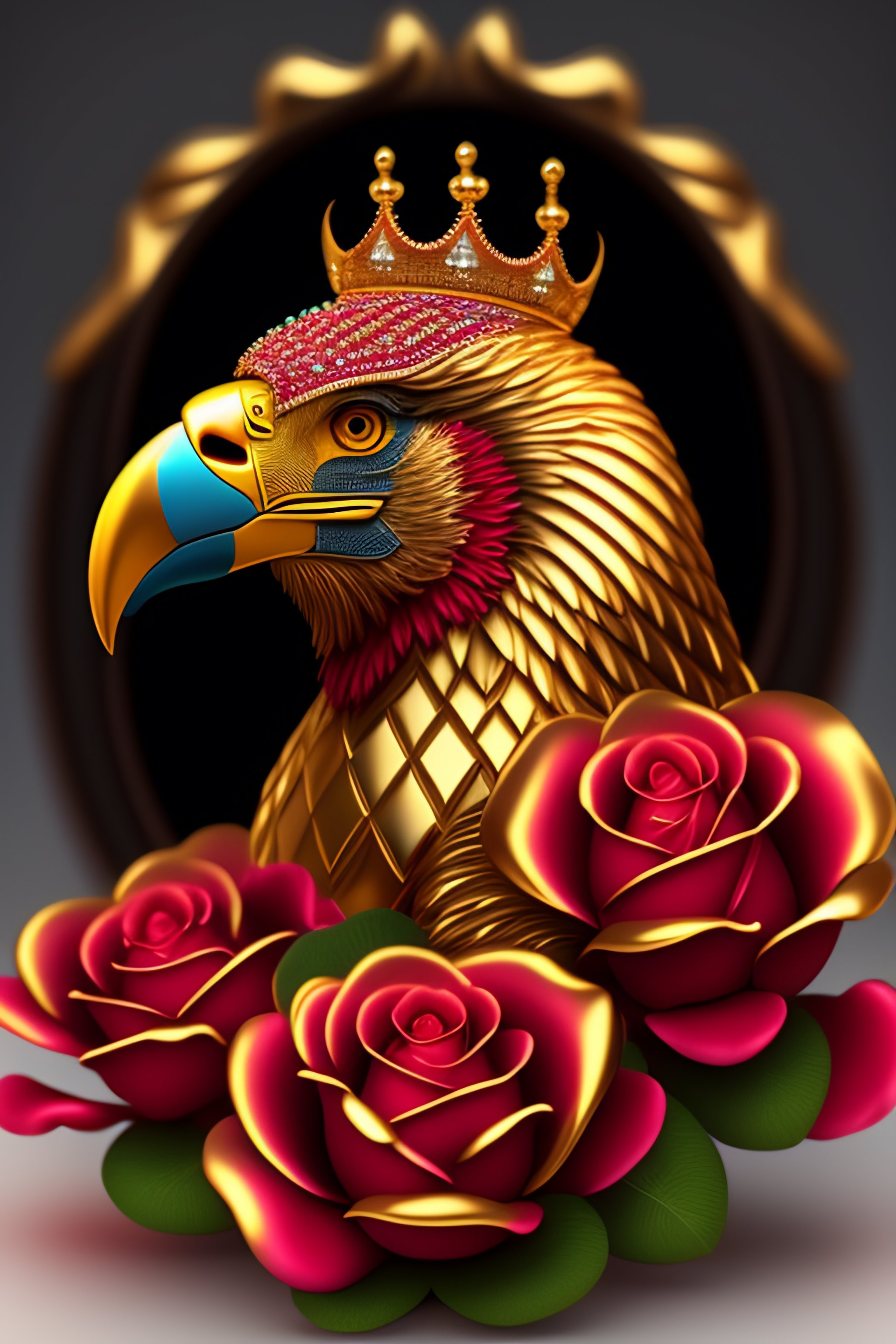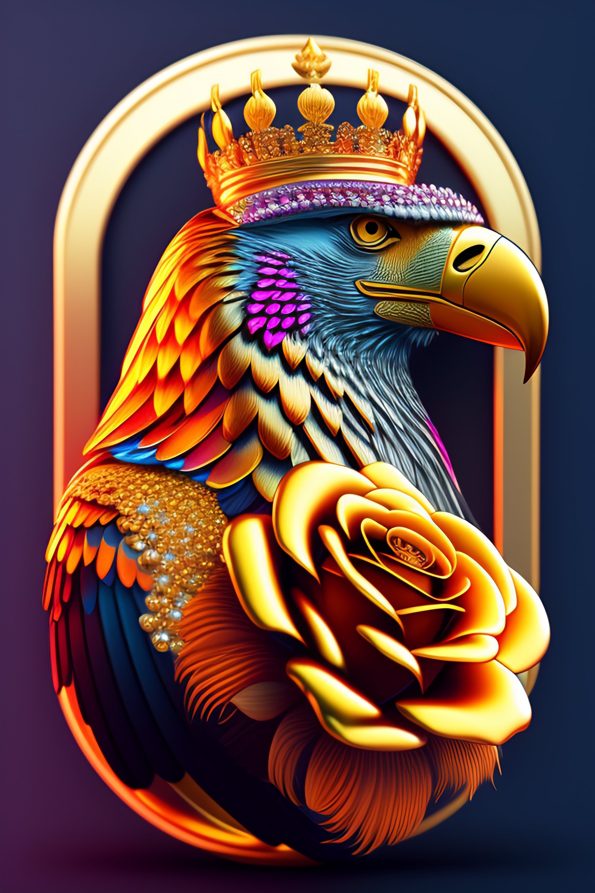 Crowned jeweled eagle, sun, roses, hyper detailed, ultra-sharp, octane render, 8 k, illustration, highly detailed, simple, smooth and clean vector, no jagged lines, vector art, smooth