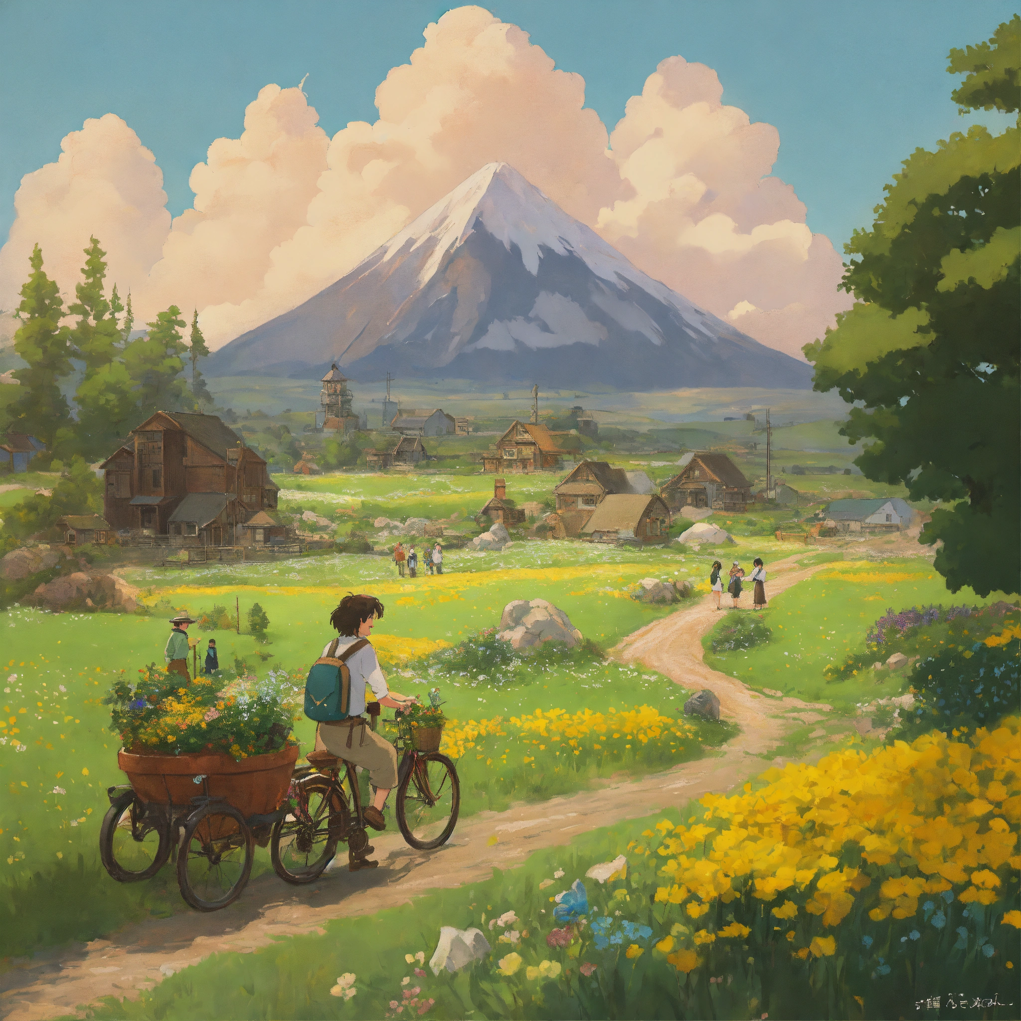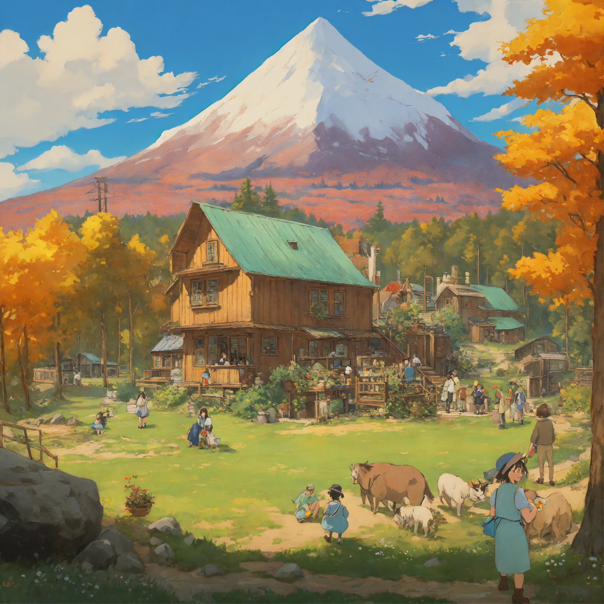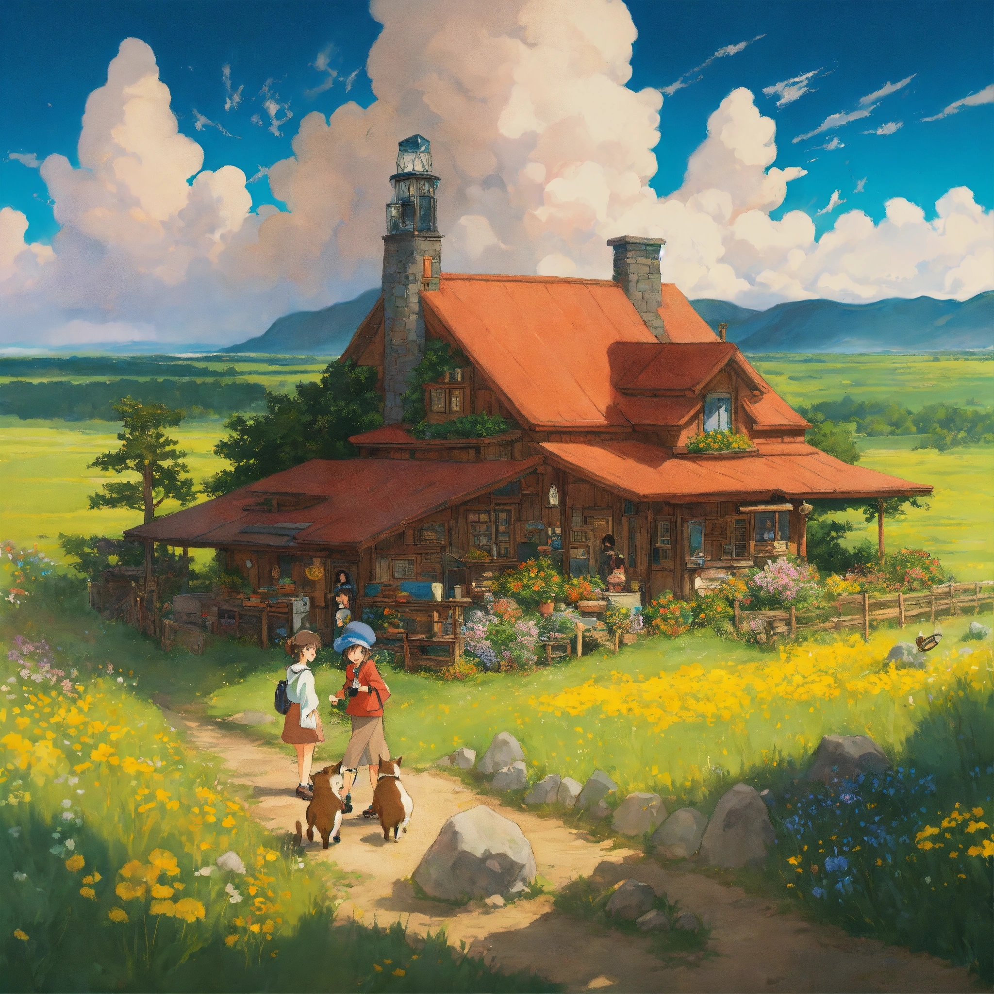 A studio ghibli painting of the crystal and mineral enthusiast cult has token over the prairies, it looks like this now and we're so happy
