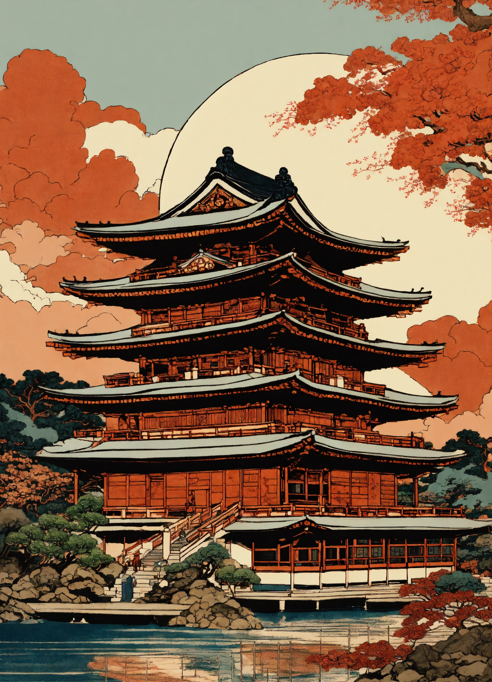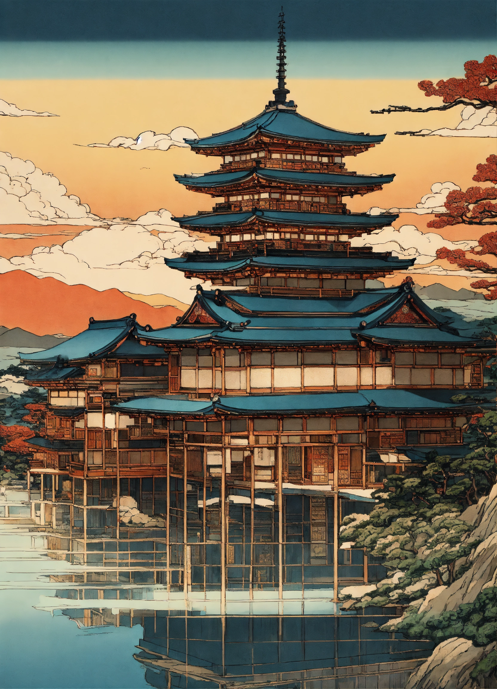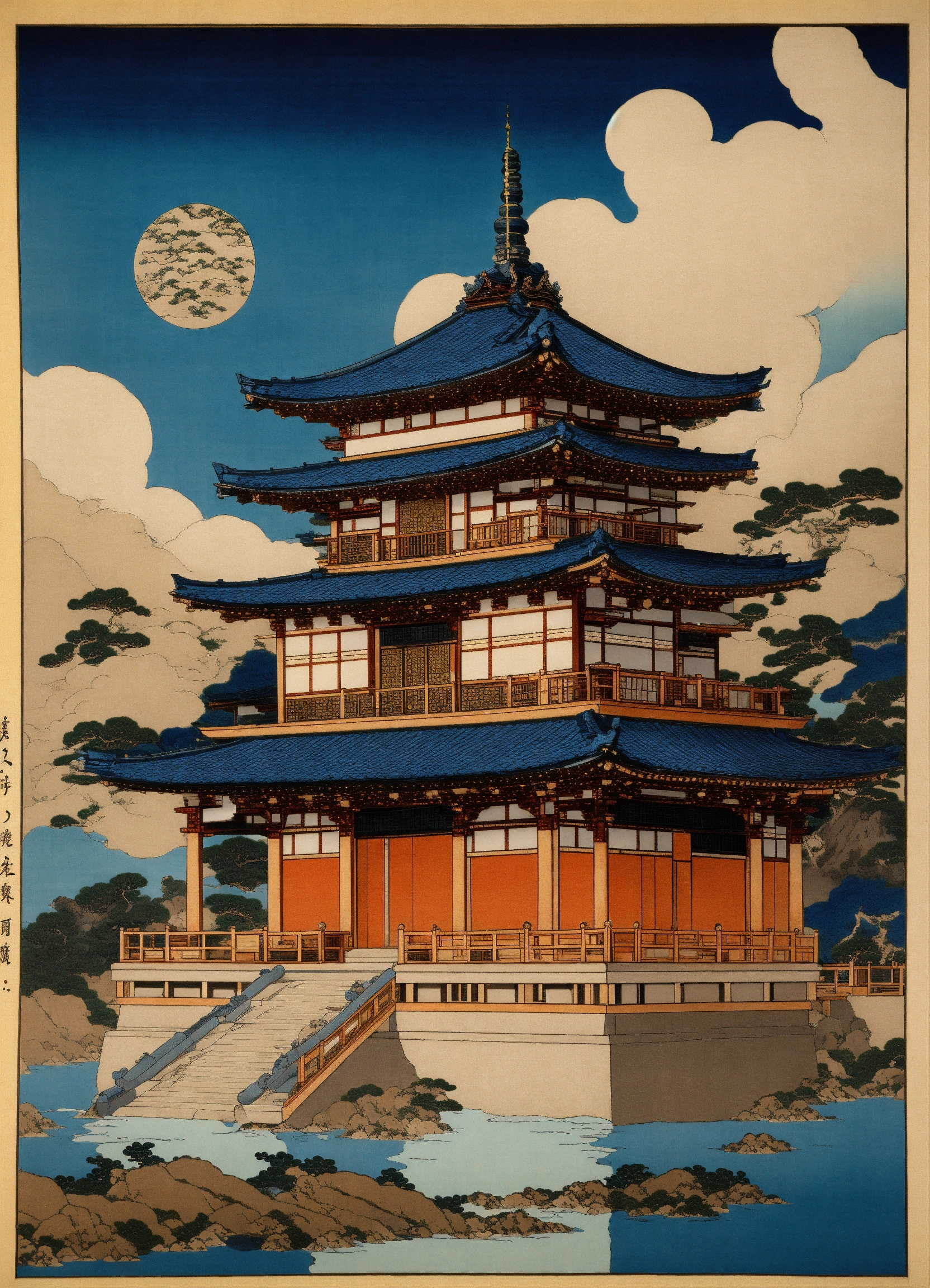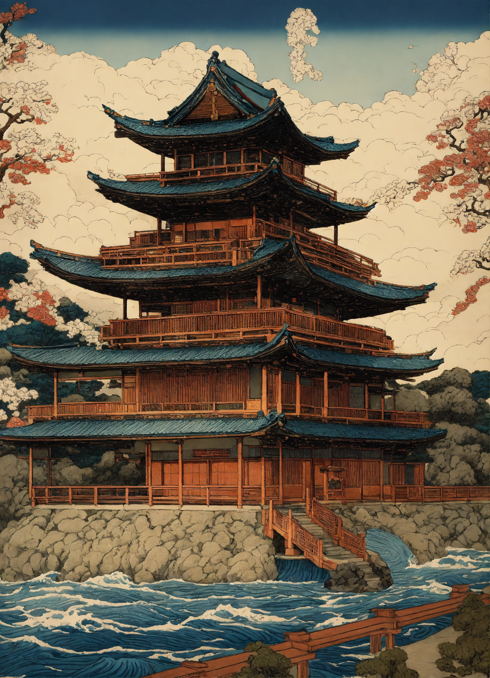 Fantastic byzantine style palace in the ukiyo-e style of hokusai