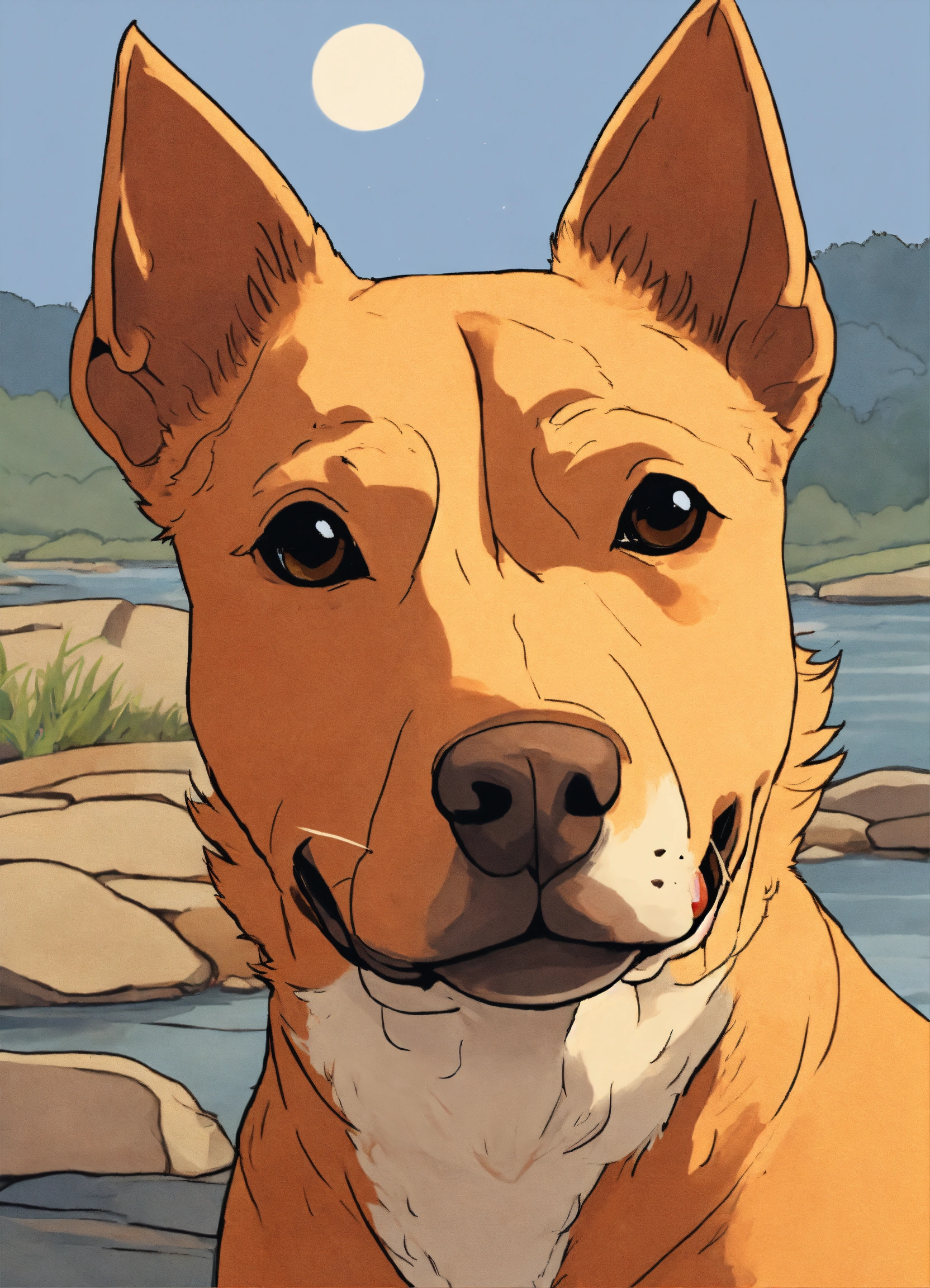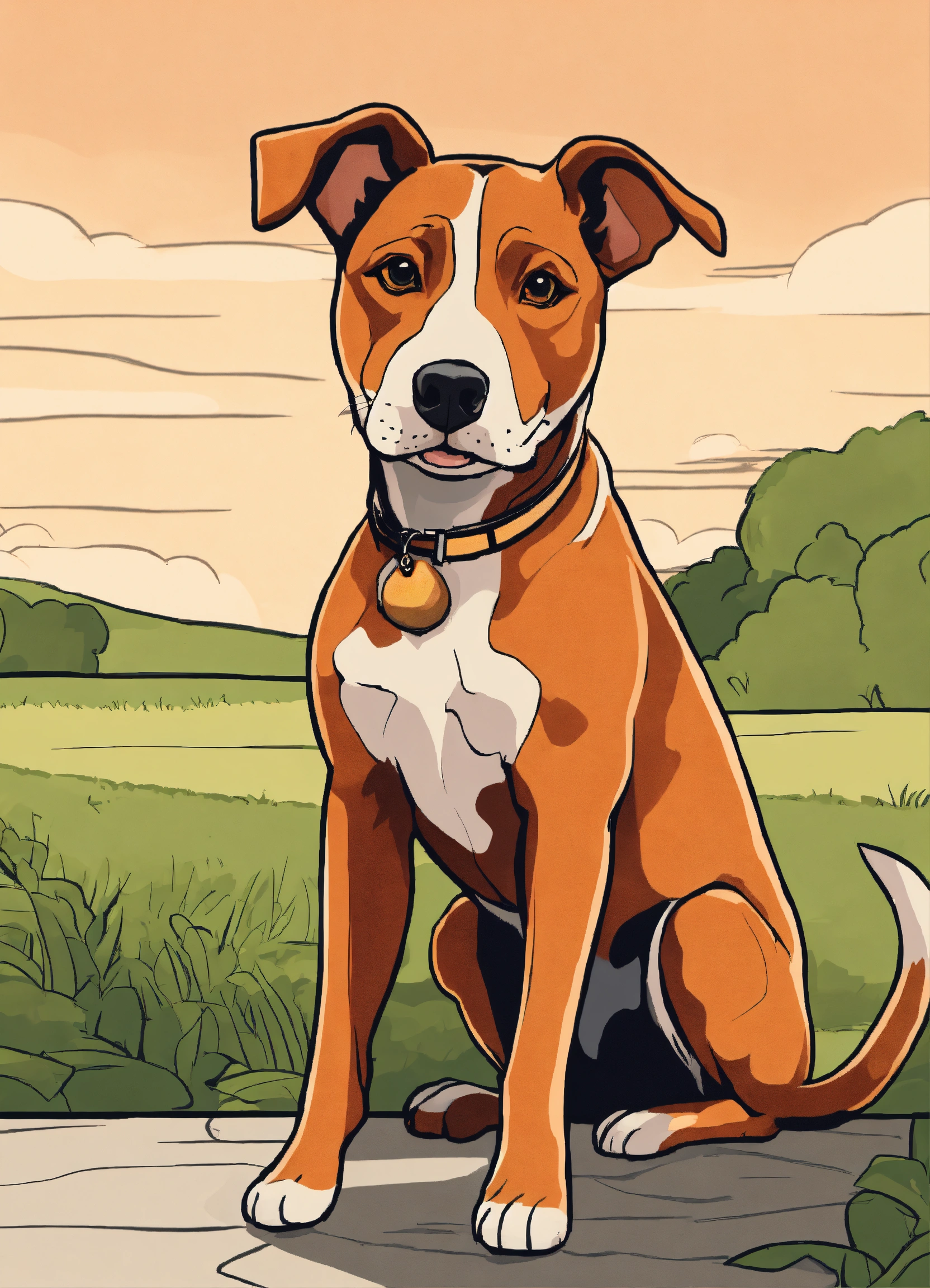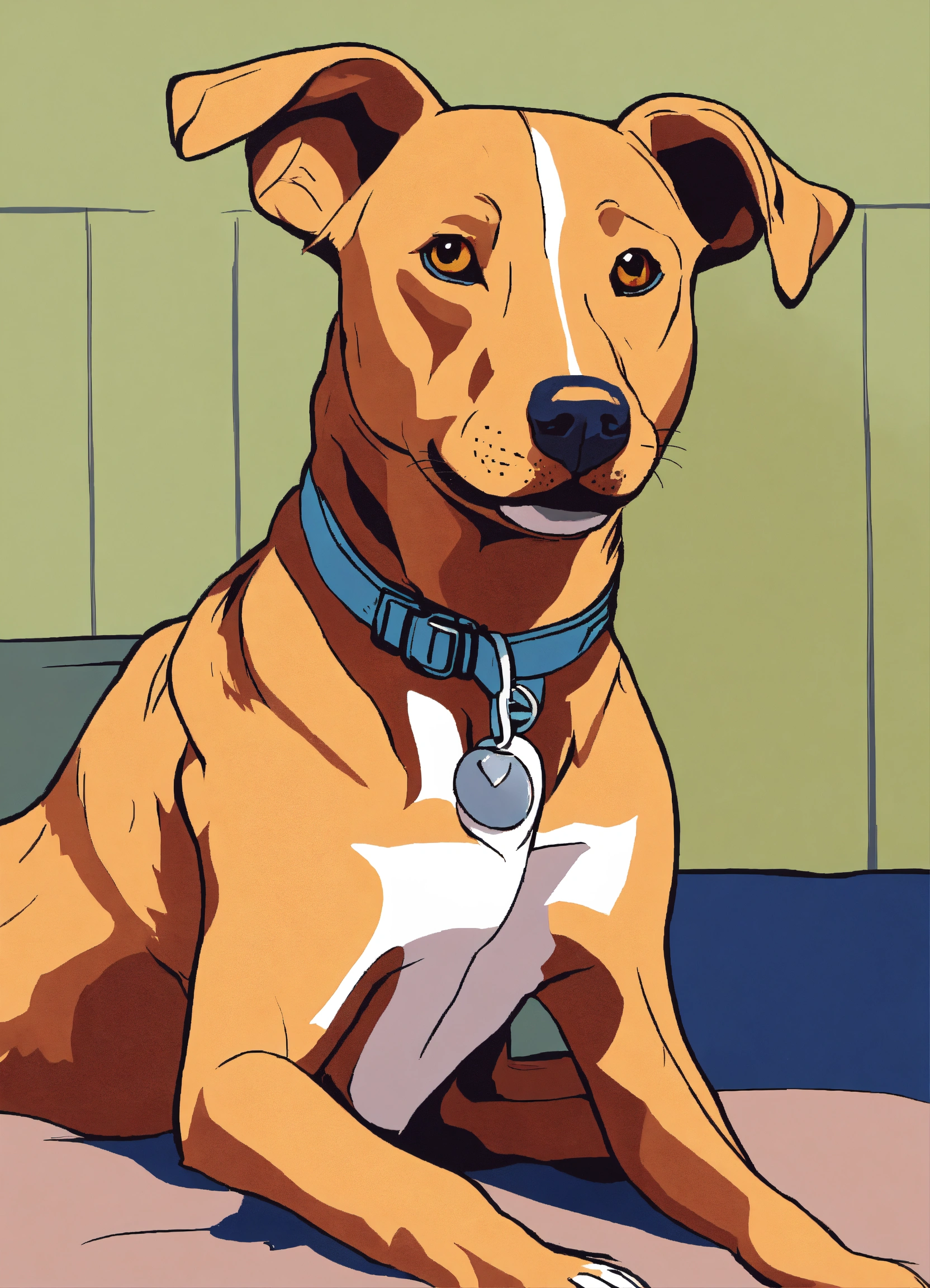 A cartoon of an apricot coloured dog