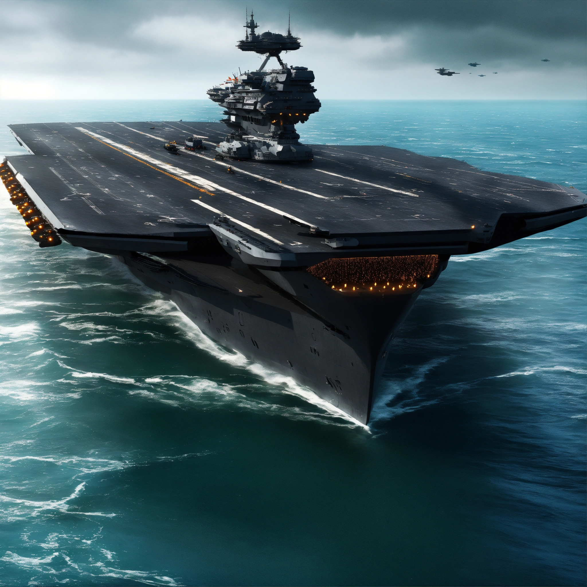 Super advanced hyper futuristic extraterrestrial aircraft carrier, in the ocean, loaded with advanced weapon systems, ominous, highly detailed and realistic, extremely creative and unique, amazing design, inspired by apollyon, black stealth influence