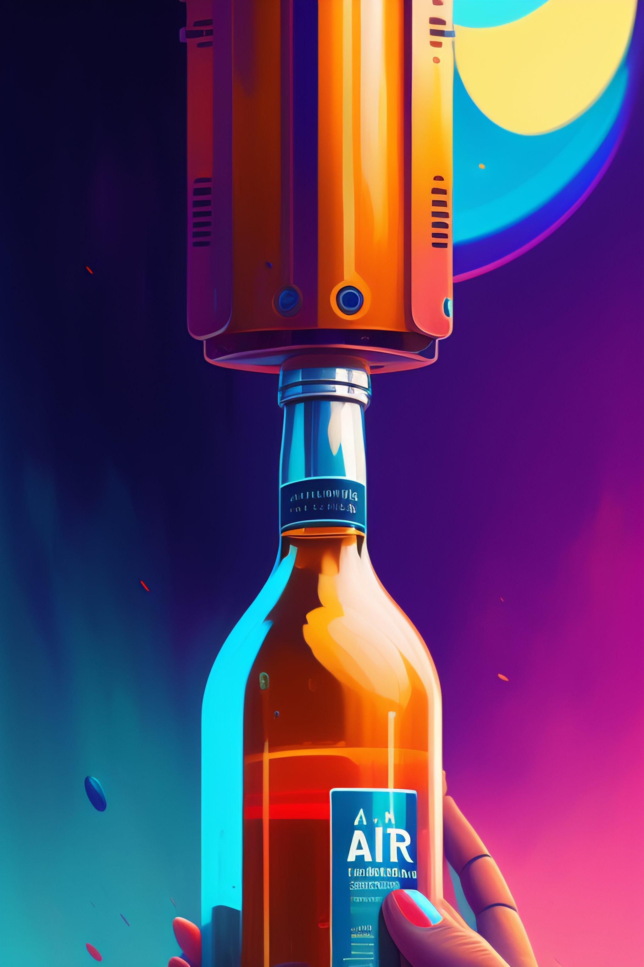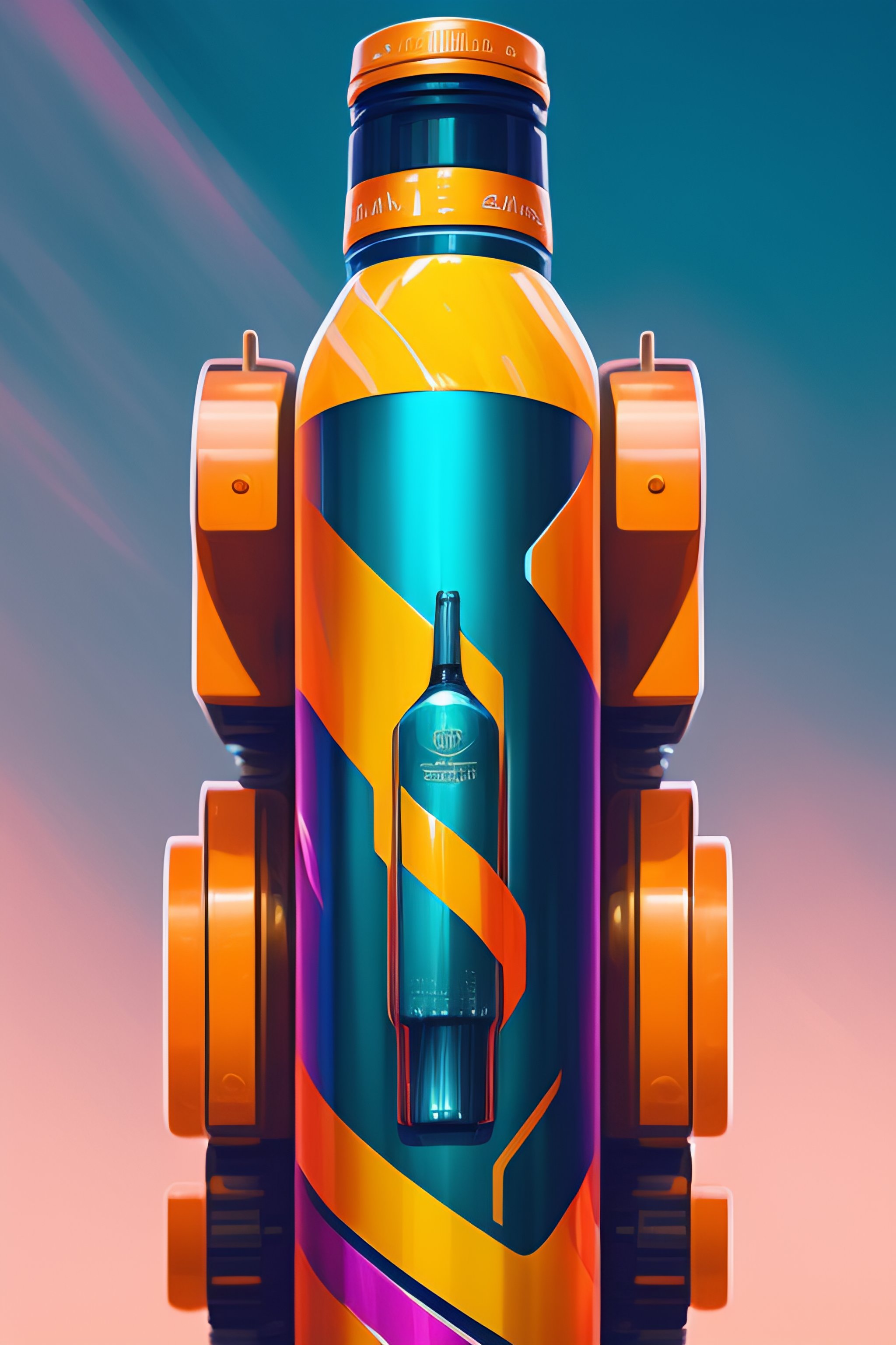 A robot arm holding a bottle style of hannah barbara, james gilleard, warner brothers, trending pixiv fanbox, acrylic palette knife, 8k, vibrant colors, devinart, trending on artstation, low details, smooth