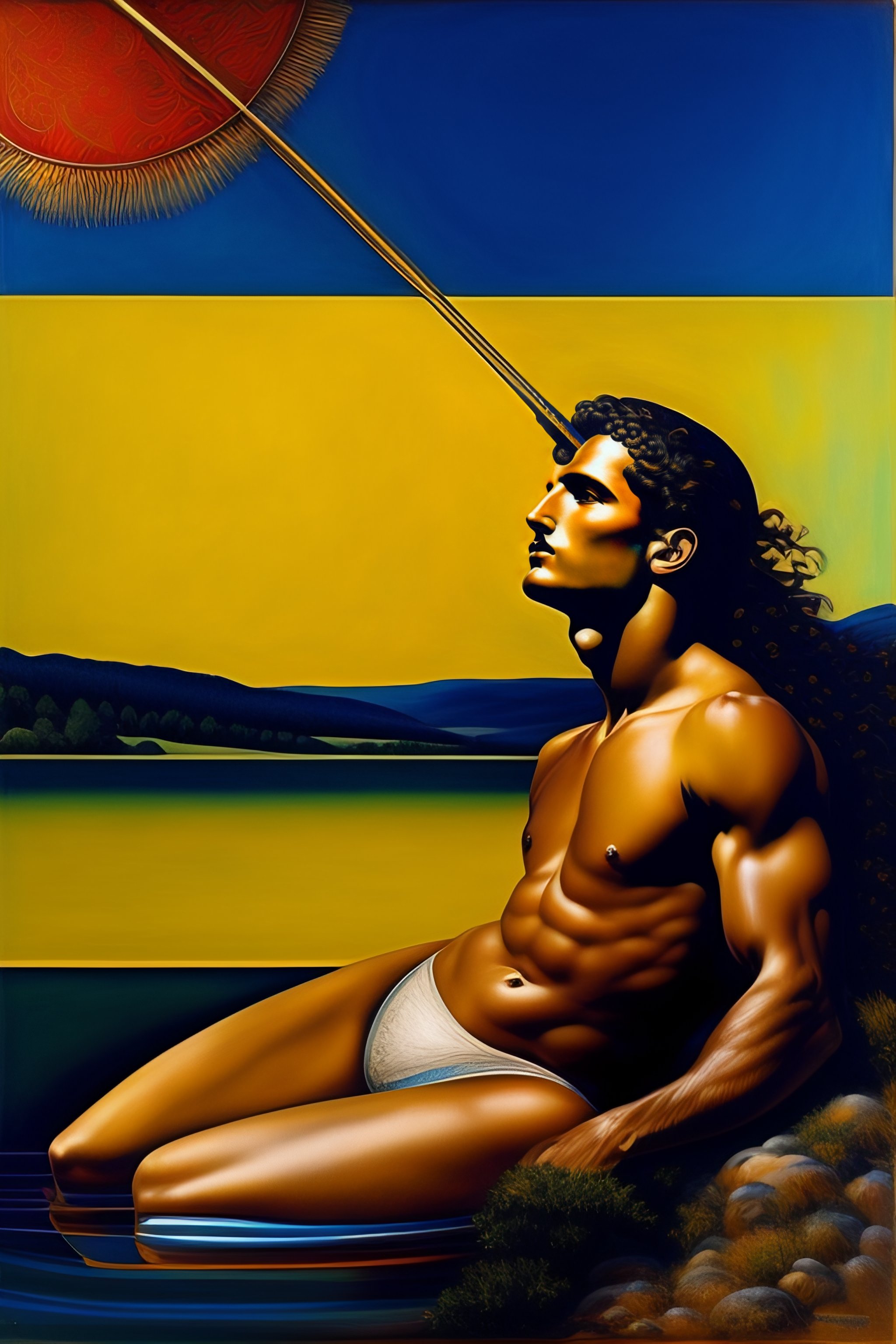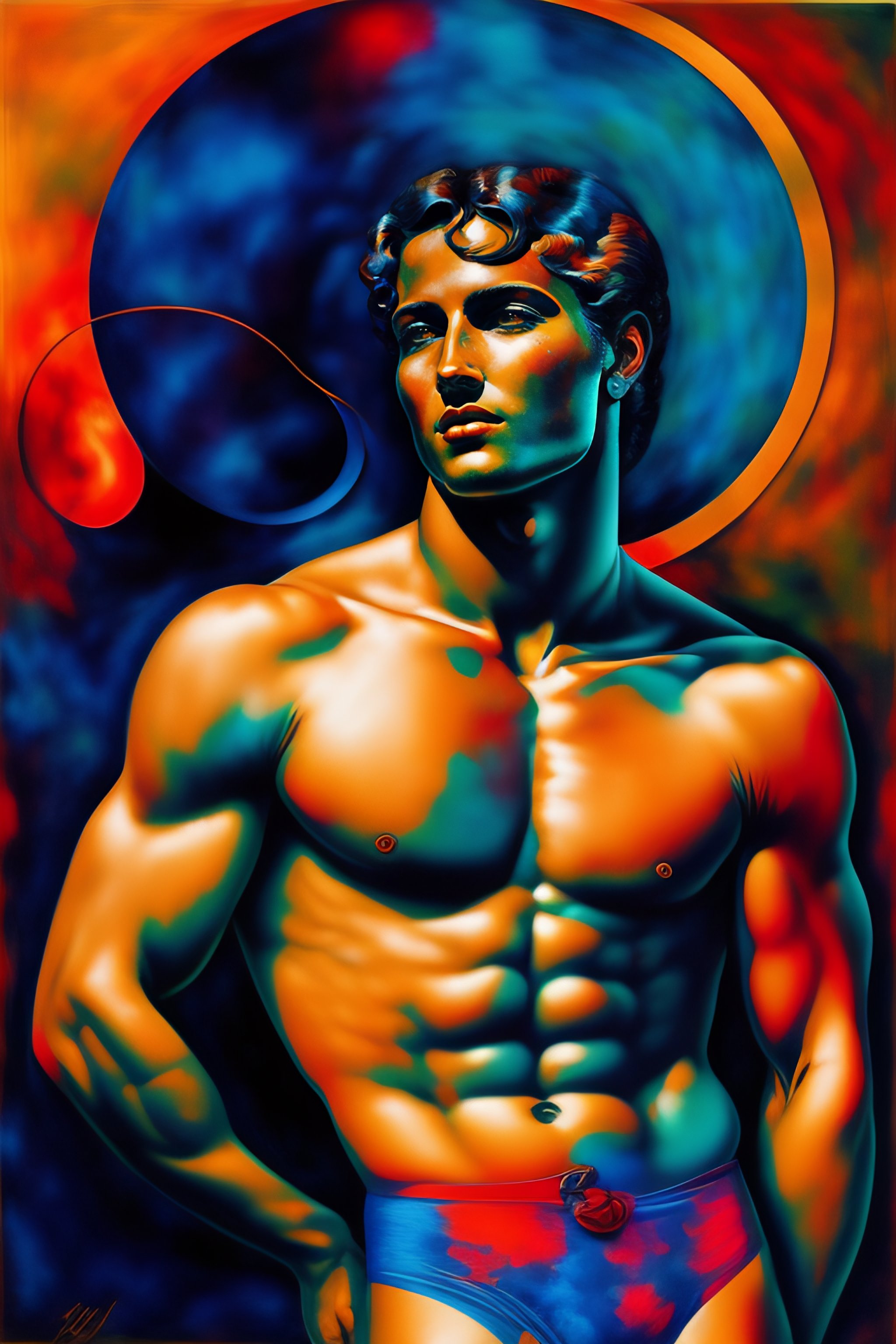 Delicate by hans erni, - the assemblage has a very expreesiv style, with trademark use of bold colors & brushstrokes. in the lake of zug, sportiv man in a circus