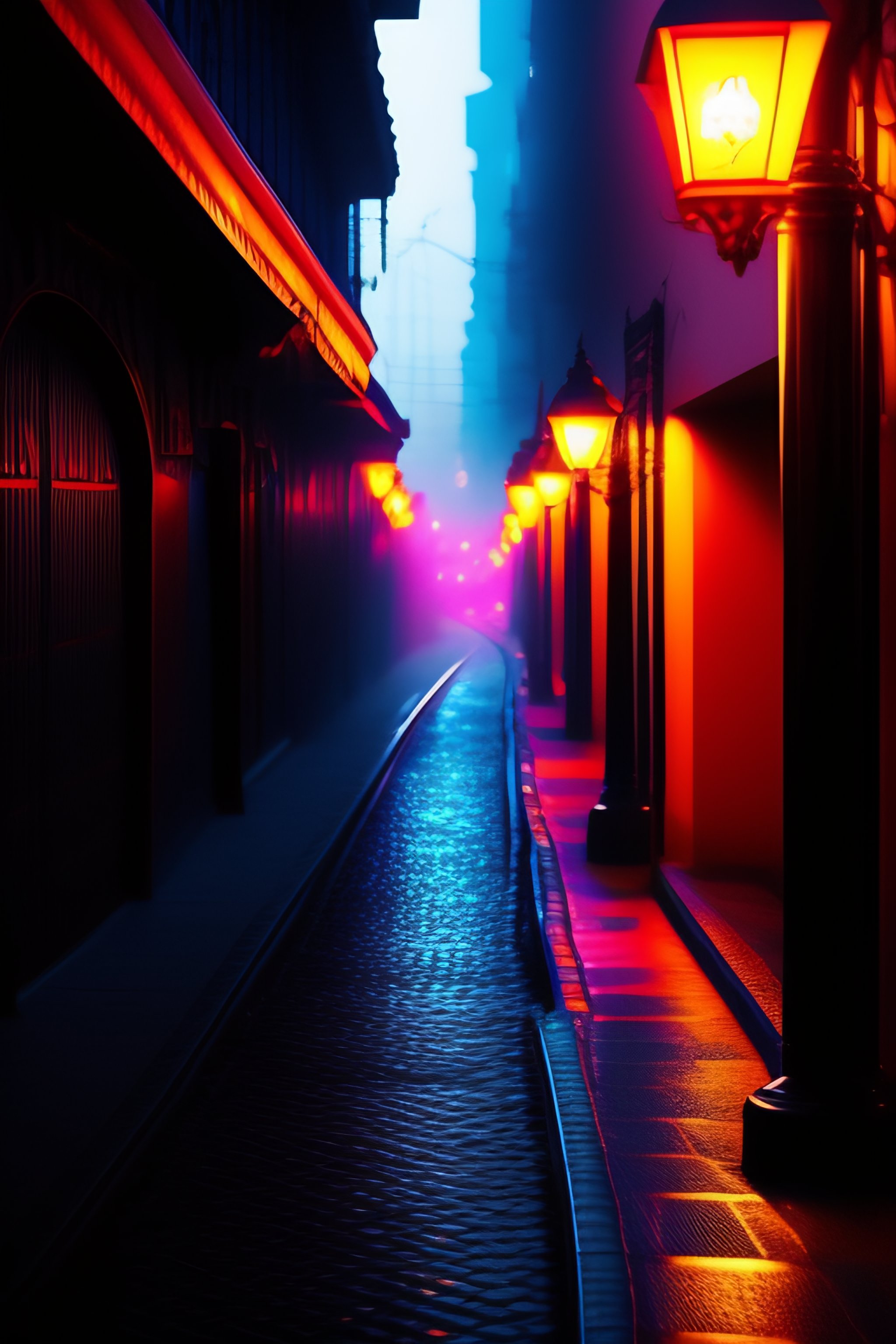 Zorro rojo humanoide, luces rojas, metrópolis, cyber punk, ciudad destruida, distópica, luna, luces de neón en blanco y negro, sombras, niebla, niebla, muy alto detalle, iluminación cinematográfica, cinemática, alto detalle, ultra detalle, iluminación de acento, muy buenos colores, realista, 8k, hdr