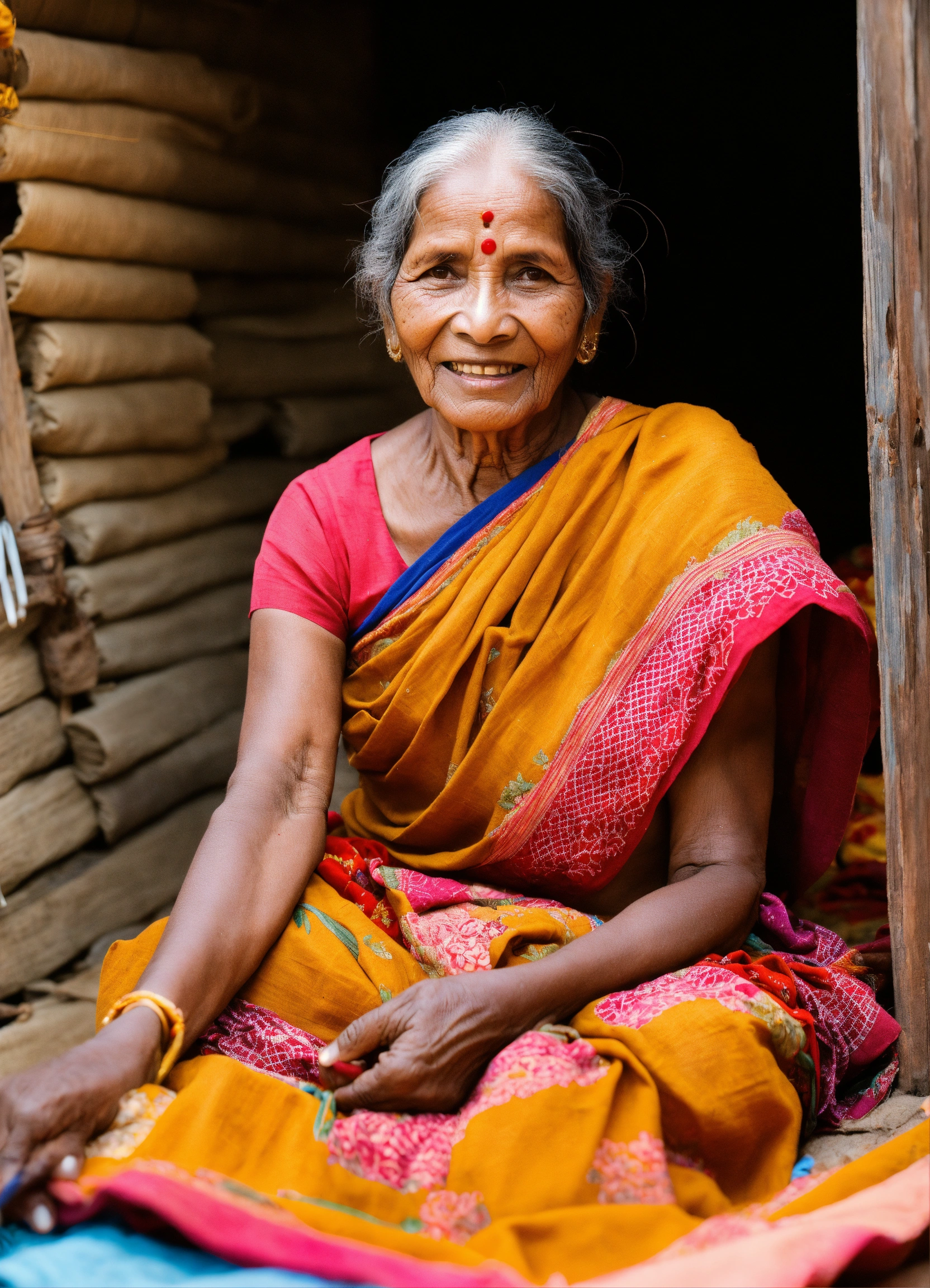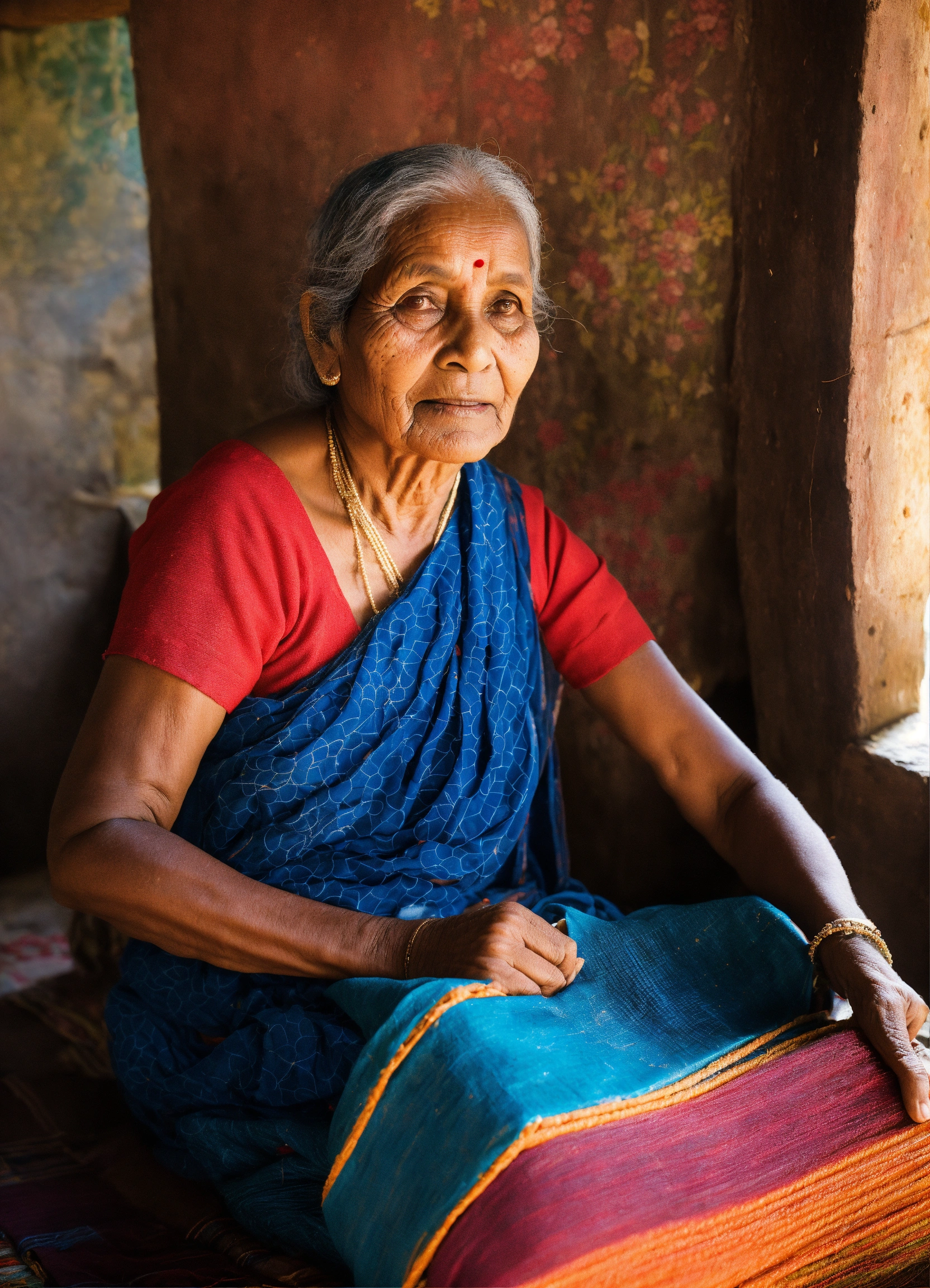 Sita, a widow who spent her later years alone. our home provides her with a loving community and an opportunity to contribute through weaving fabrics in neapl