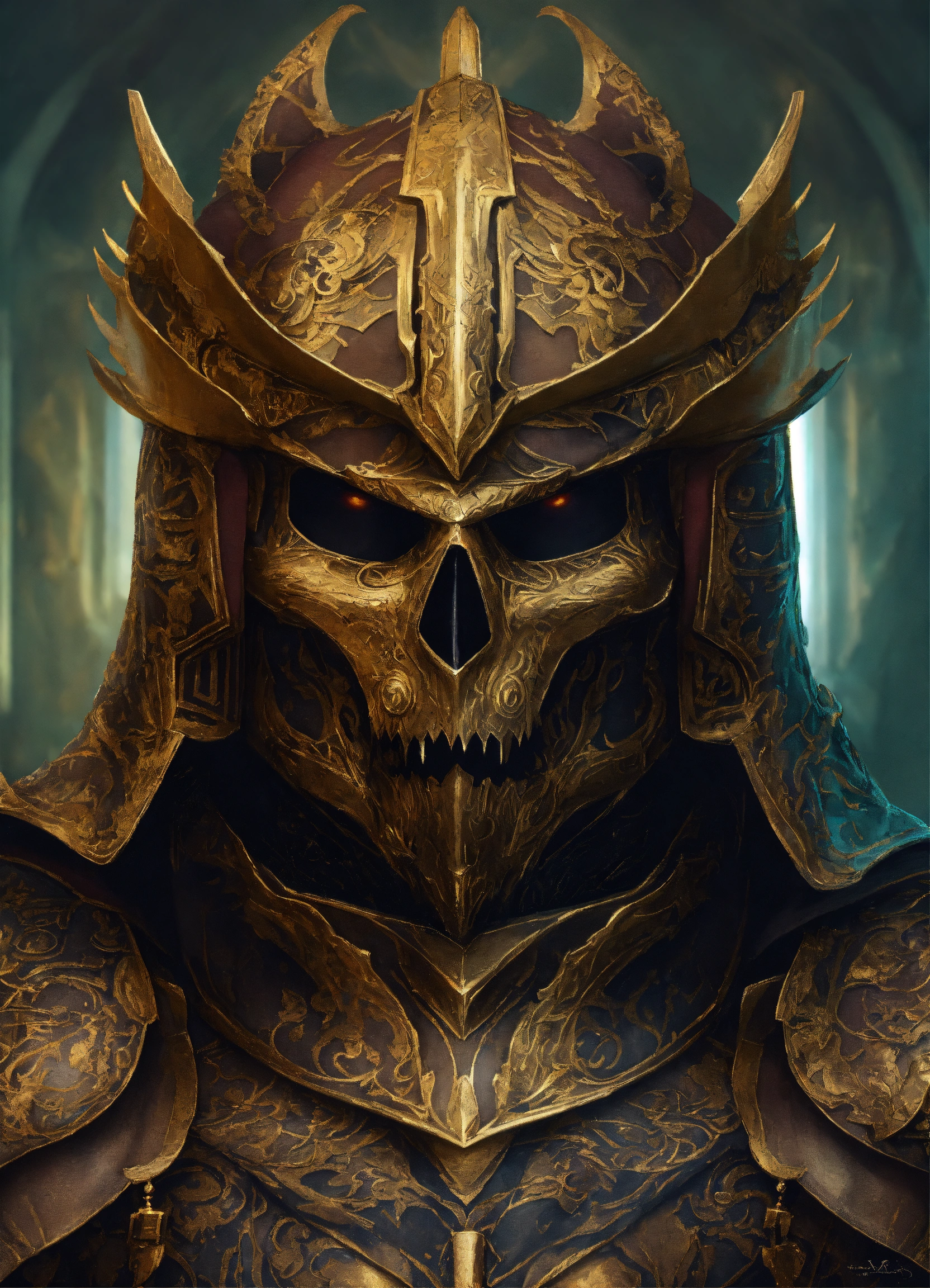 A close up of a mummy wearing a helmet, symmetrical fantasy, epic fantasy art, fantasy, epic fantasy rpg symmetrical portrait, in style of macabre, epic fantasy art, ornate dramatic bat wing helmet, detailed digital 2d fantasy, epic fantasy art, j.r.r. tolkien style, intricate armor, in the style of j.r.r. tolkien artwork, symmetric concept art, face of an armored villain