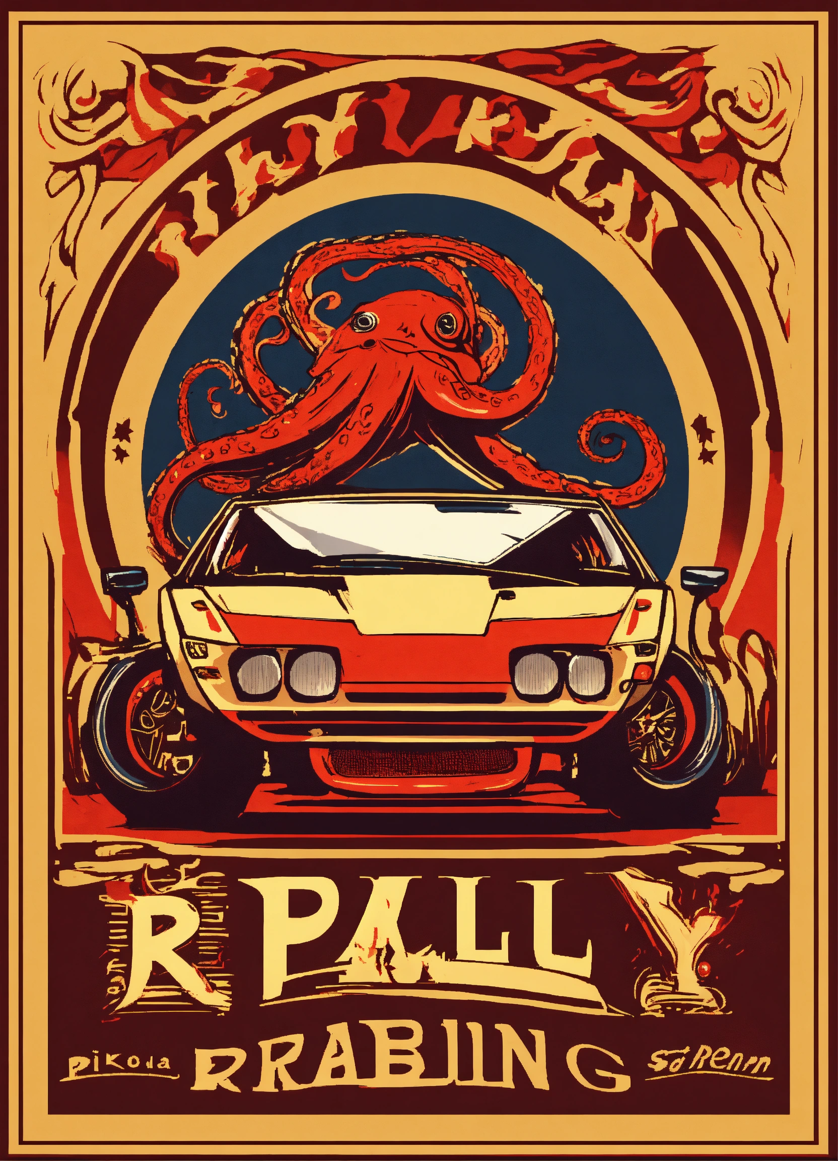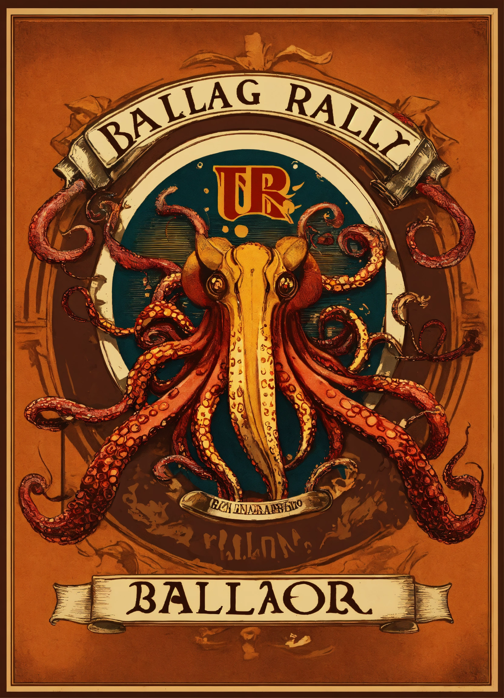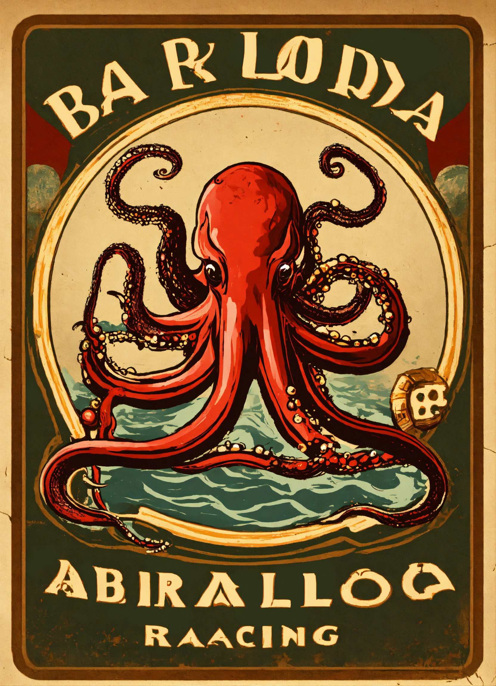 Un logotipo de un equipo de rally que contenga un pulpo y un texto que contenga "balboa racing"