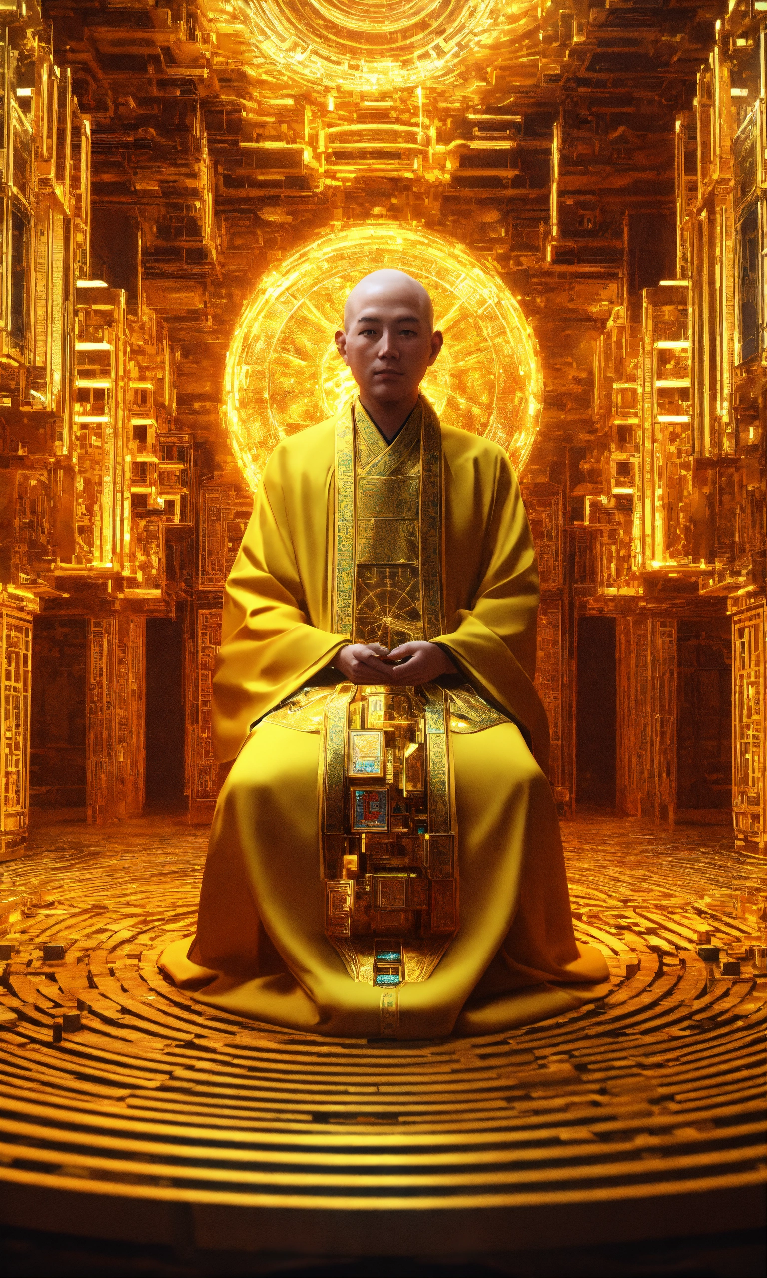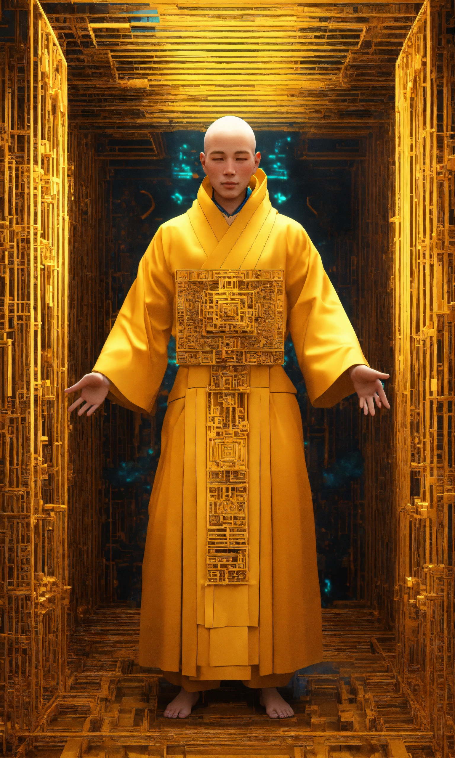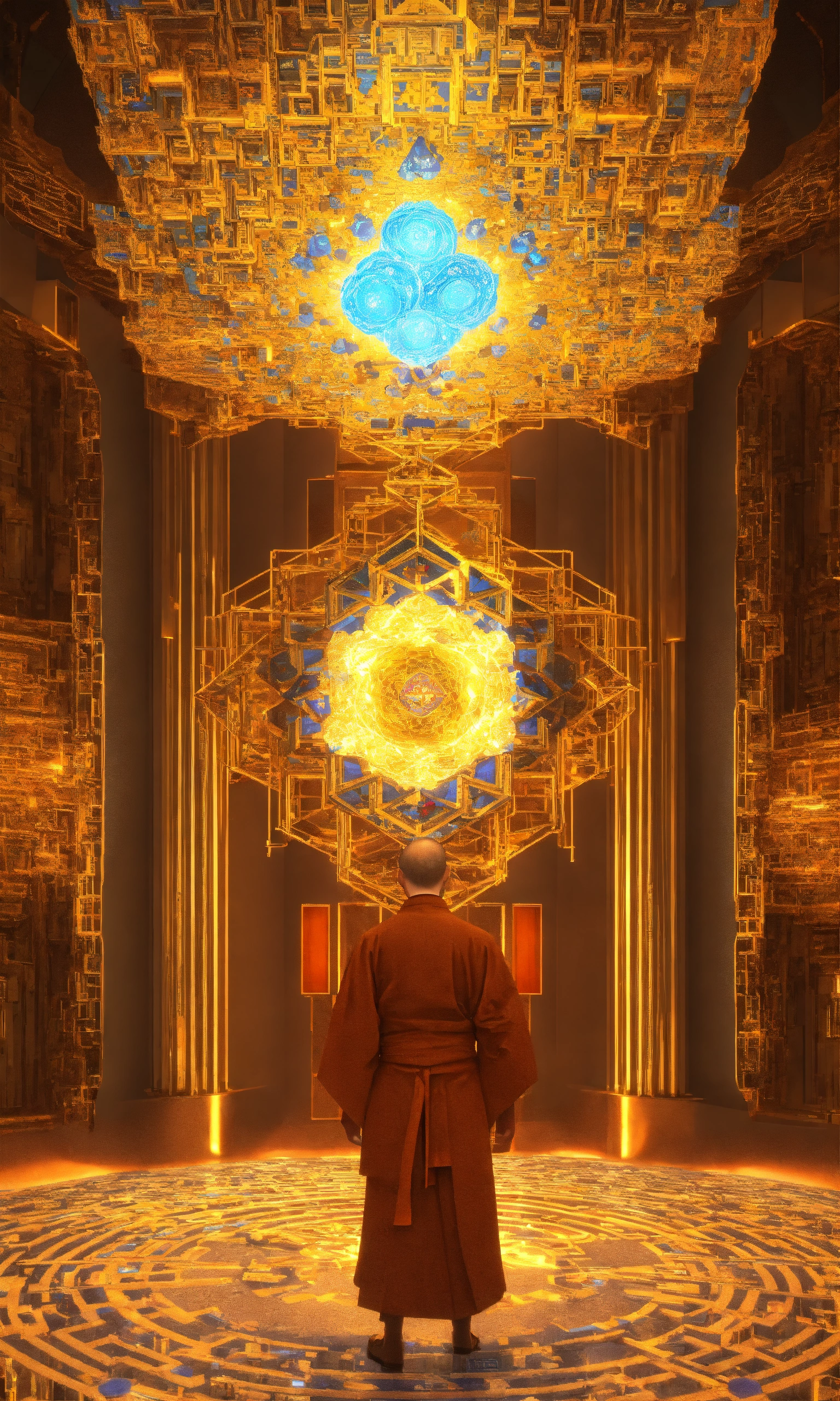 4th dimension complex fractal geometry tesseracts life daoist monk self-transforming machines 3d render