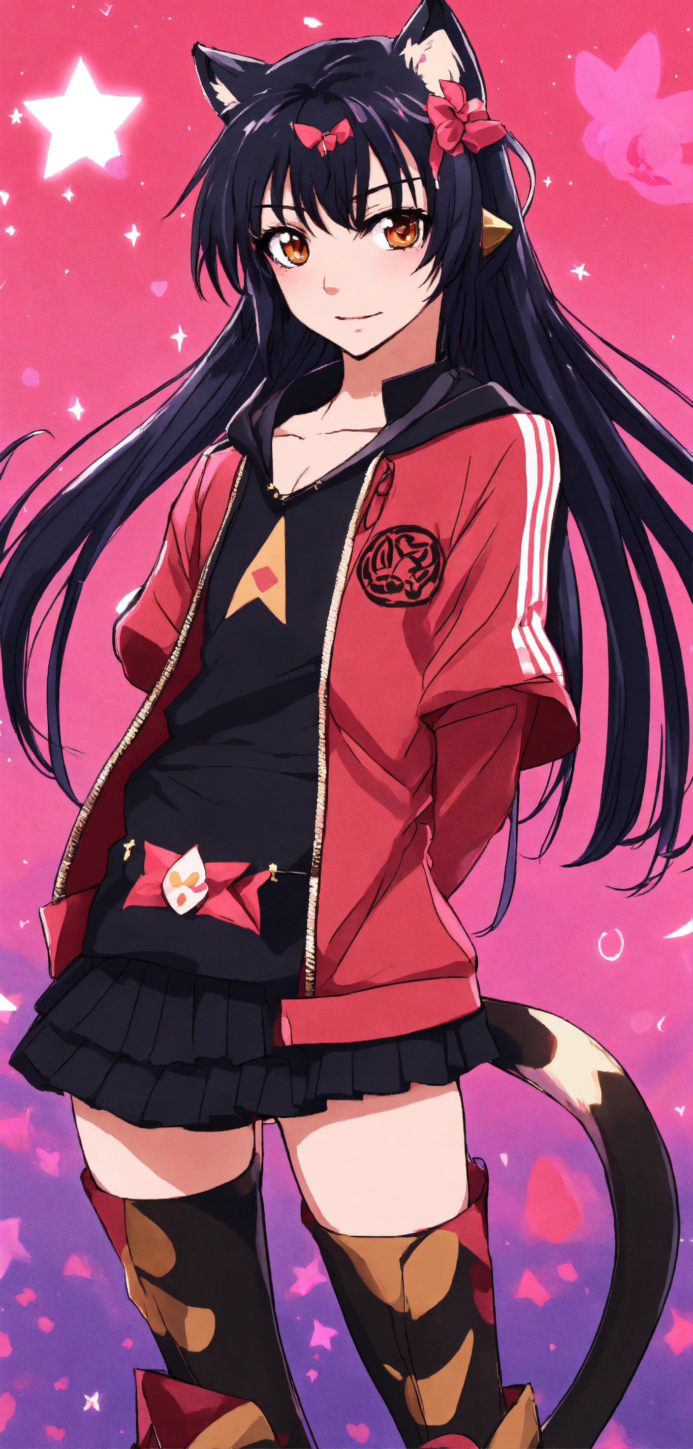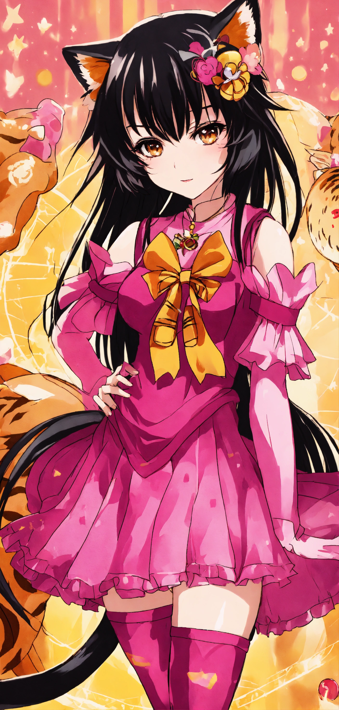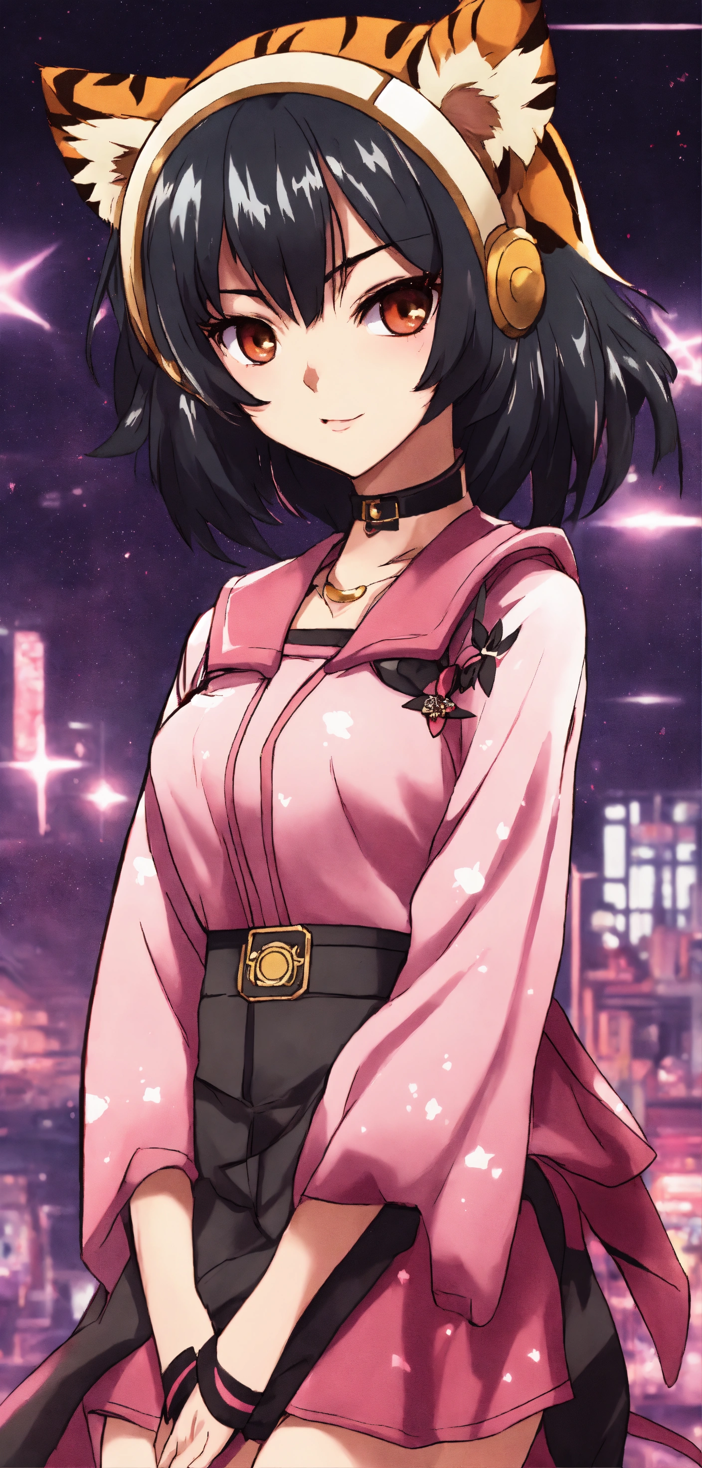 Tiger magical girl with black hair emo style and brown eyes in "tokyo mew mew" style, with transgender symbole