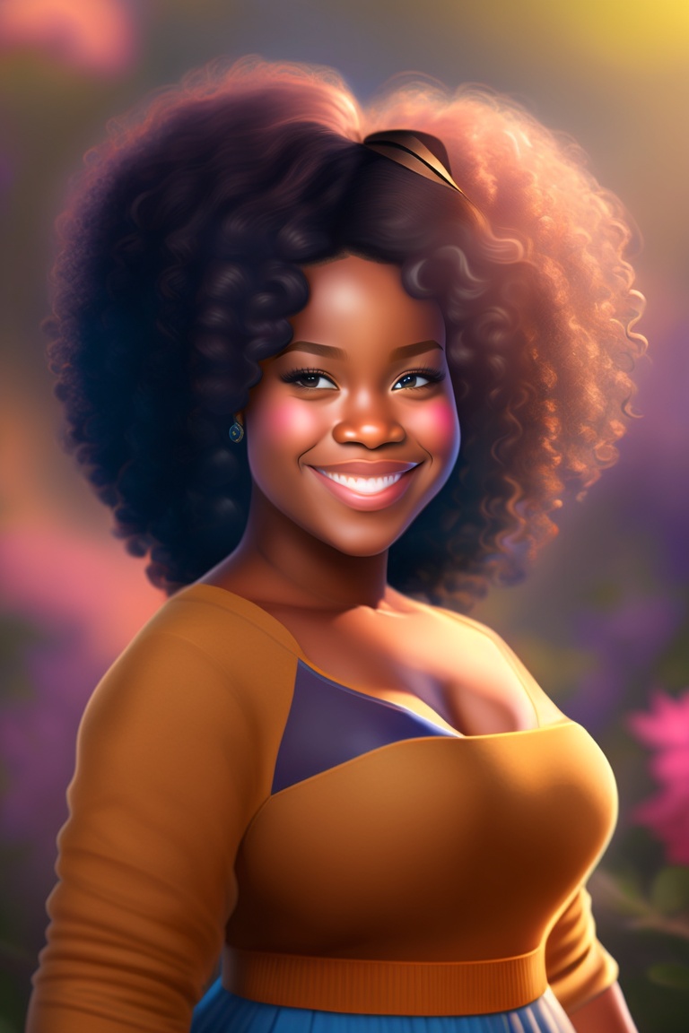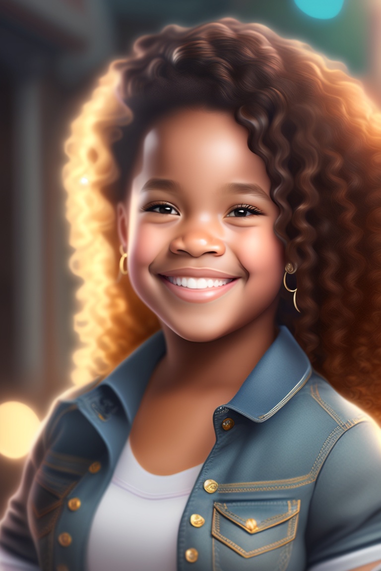 Chubby light skin girl with curly hair