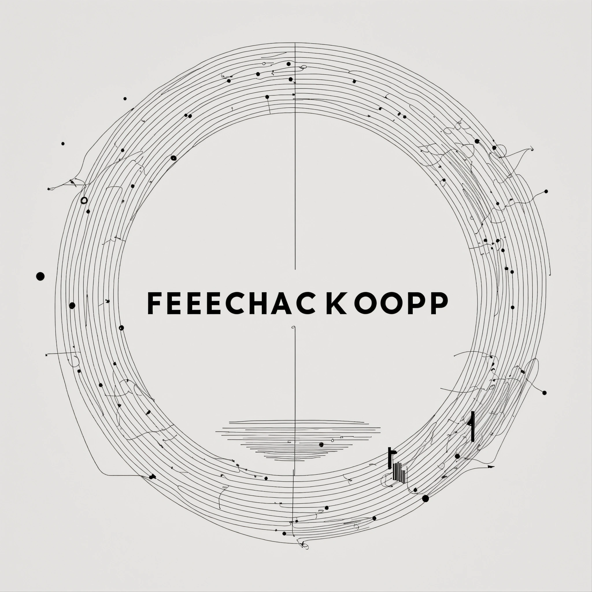 Very simple aesthetic logo showing a feedback loop, information goes in transforms and goes out, single line, black and white