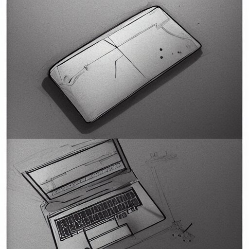 Early macbook designs concept art by leonardo da vinci, sketch, by wlop, by ilyu kuvshinov, super detailed, unreal engine 5