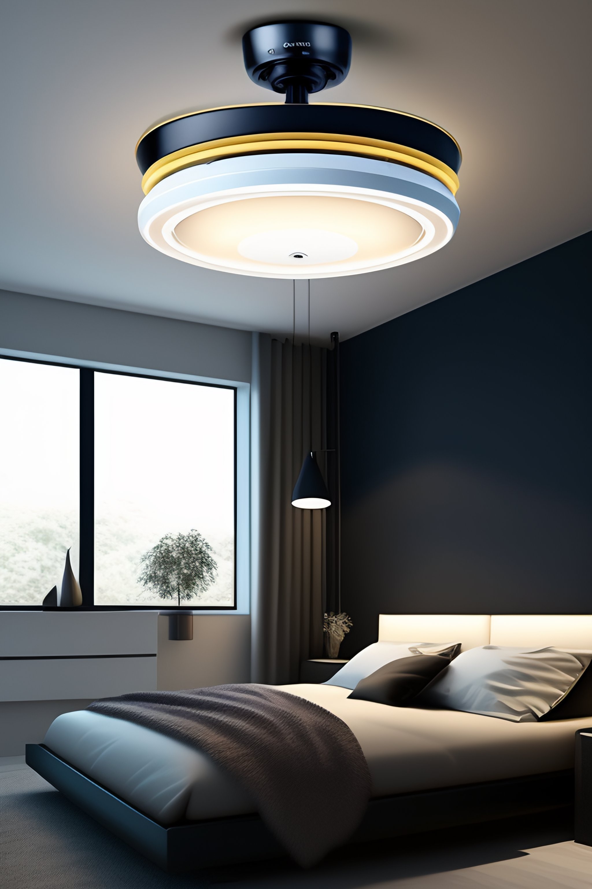 Modern bladeless ceiling fan in the style of dyson