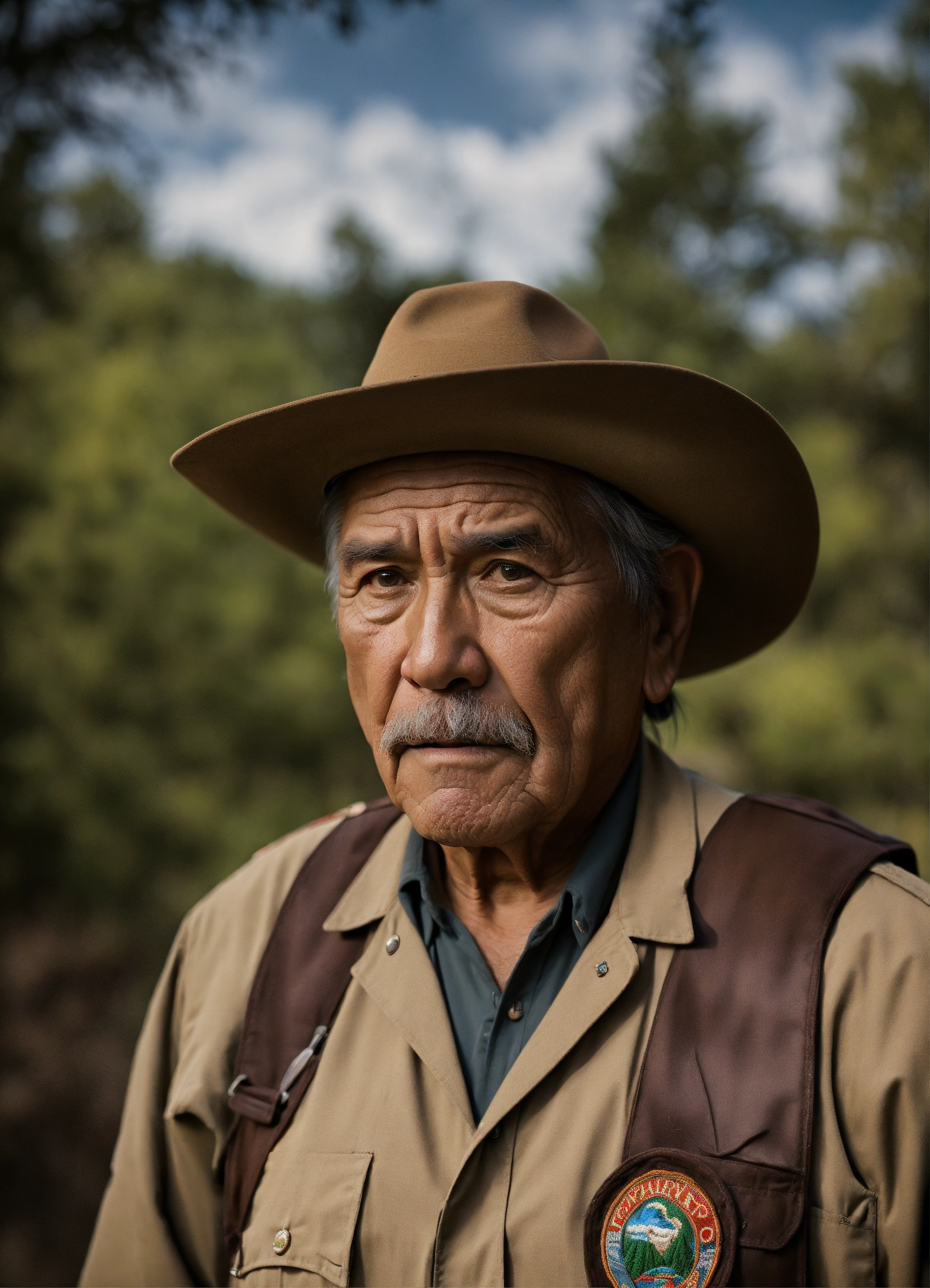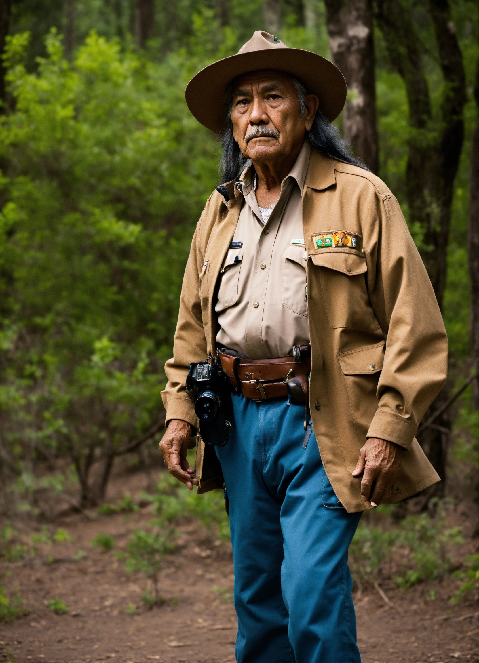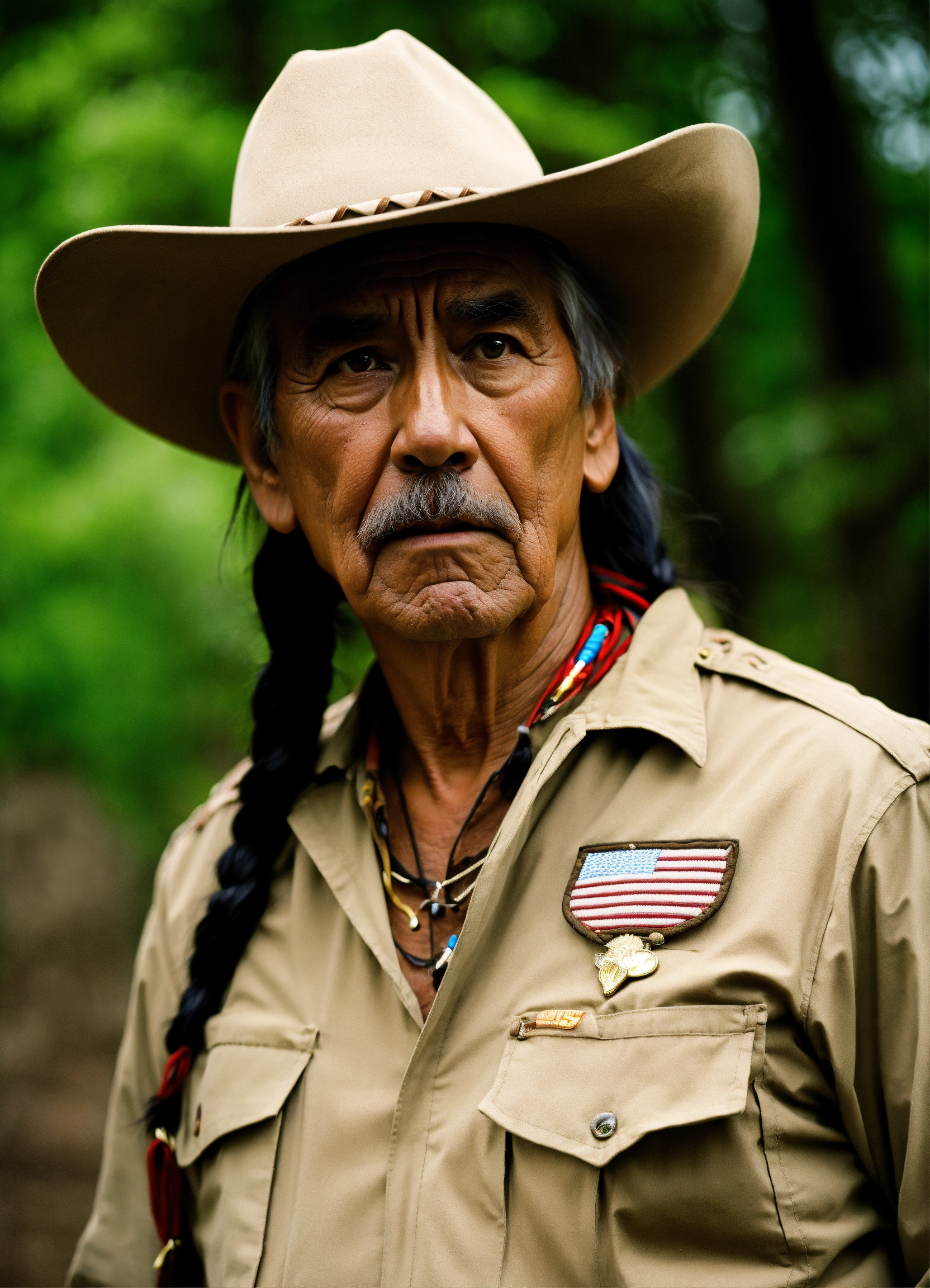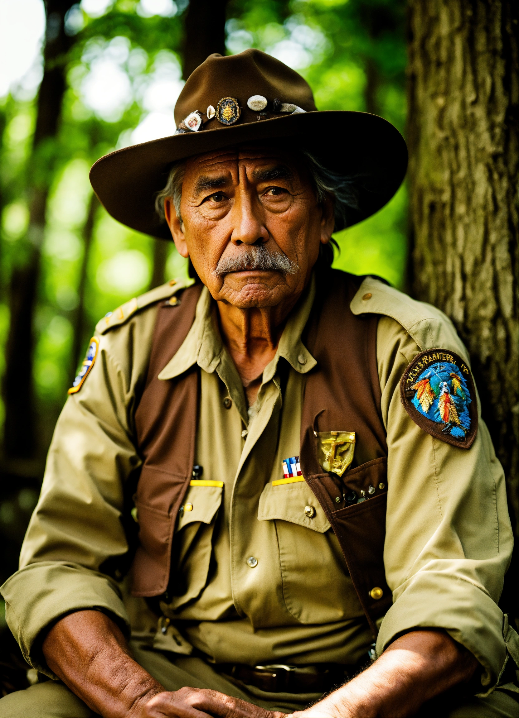 Scared unique expressive old park ranger cherokee native american man casually dressed casual dressed