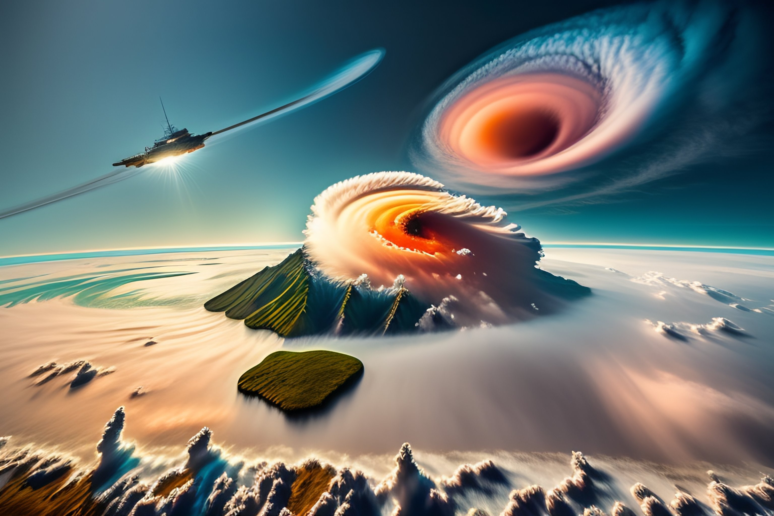 Hurricane from space, satellite view, super typhoon over the ocean, the eye of the hurricane, view from outer space