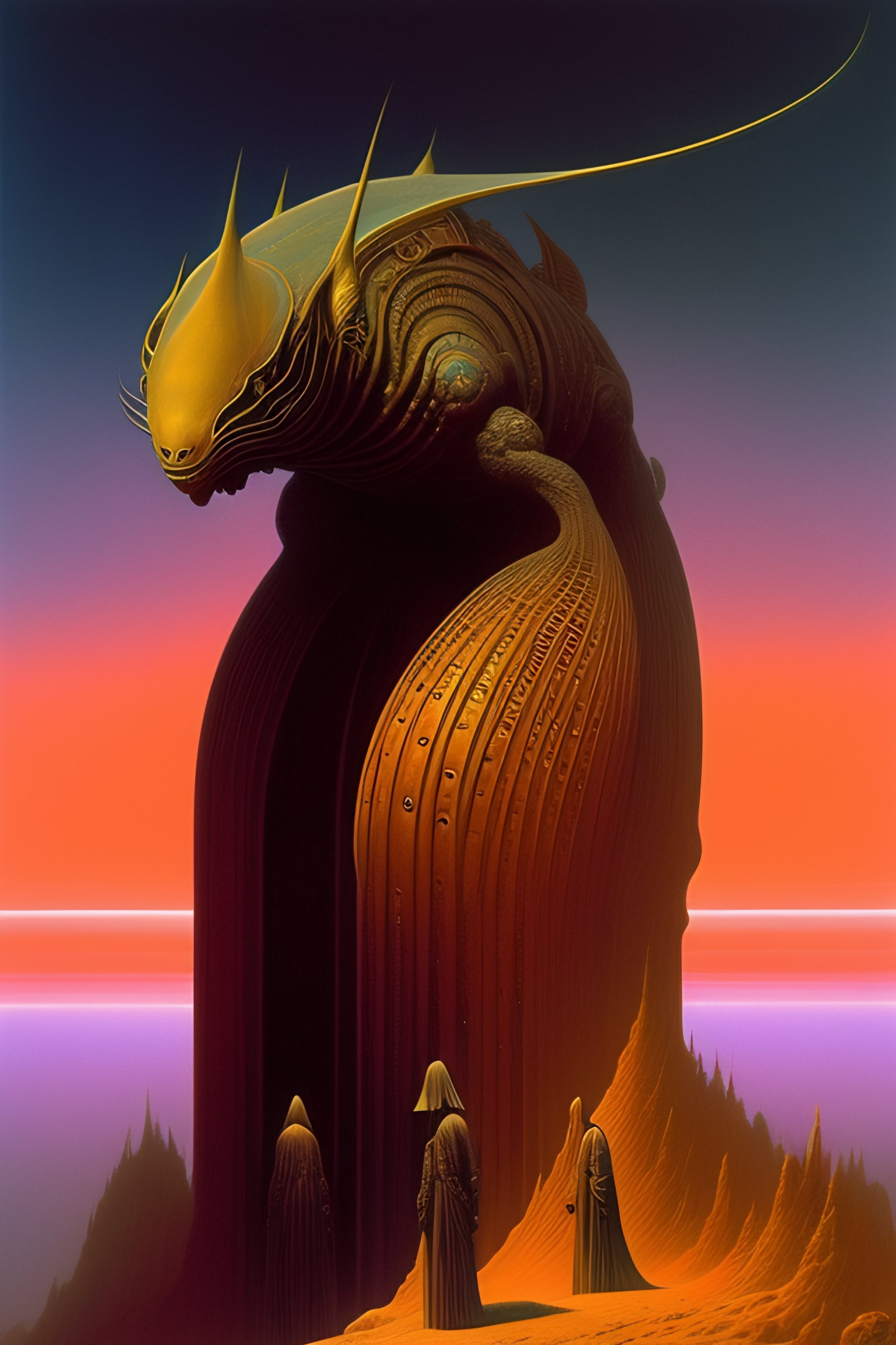 Aliens from the second edition of barlowe's guide to extraterrestrials, highly detailed, photorealistic, artstation, artwork by beksinski and moebius