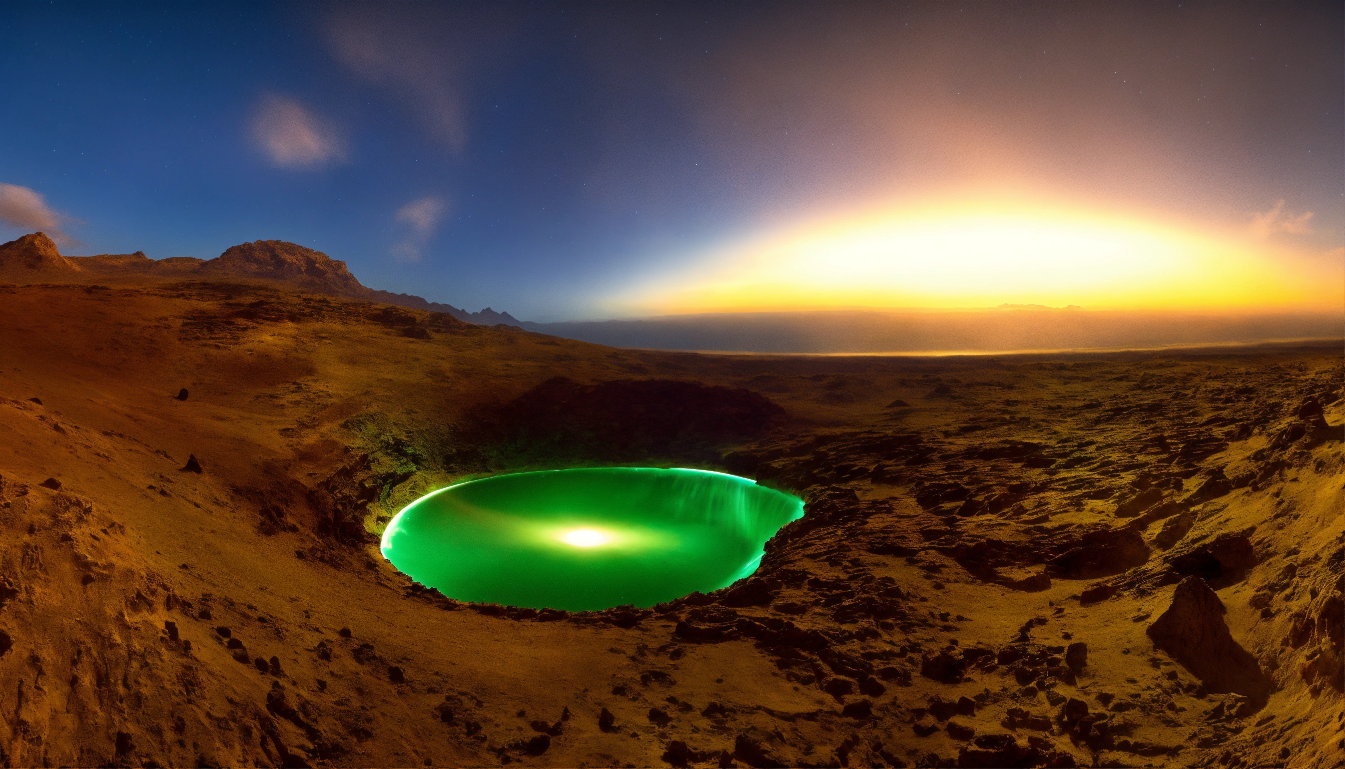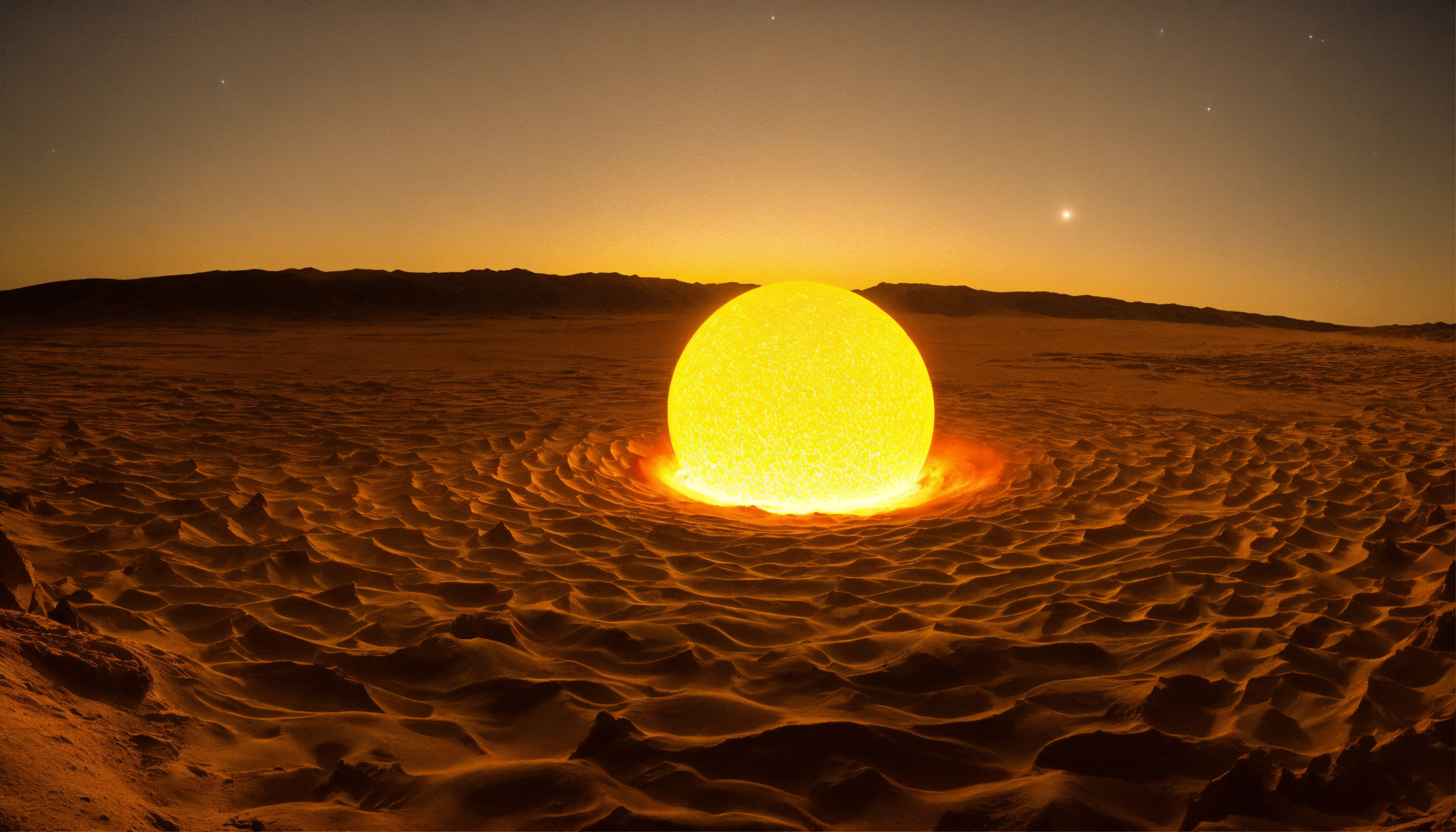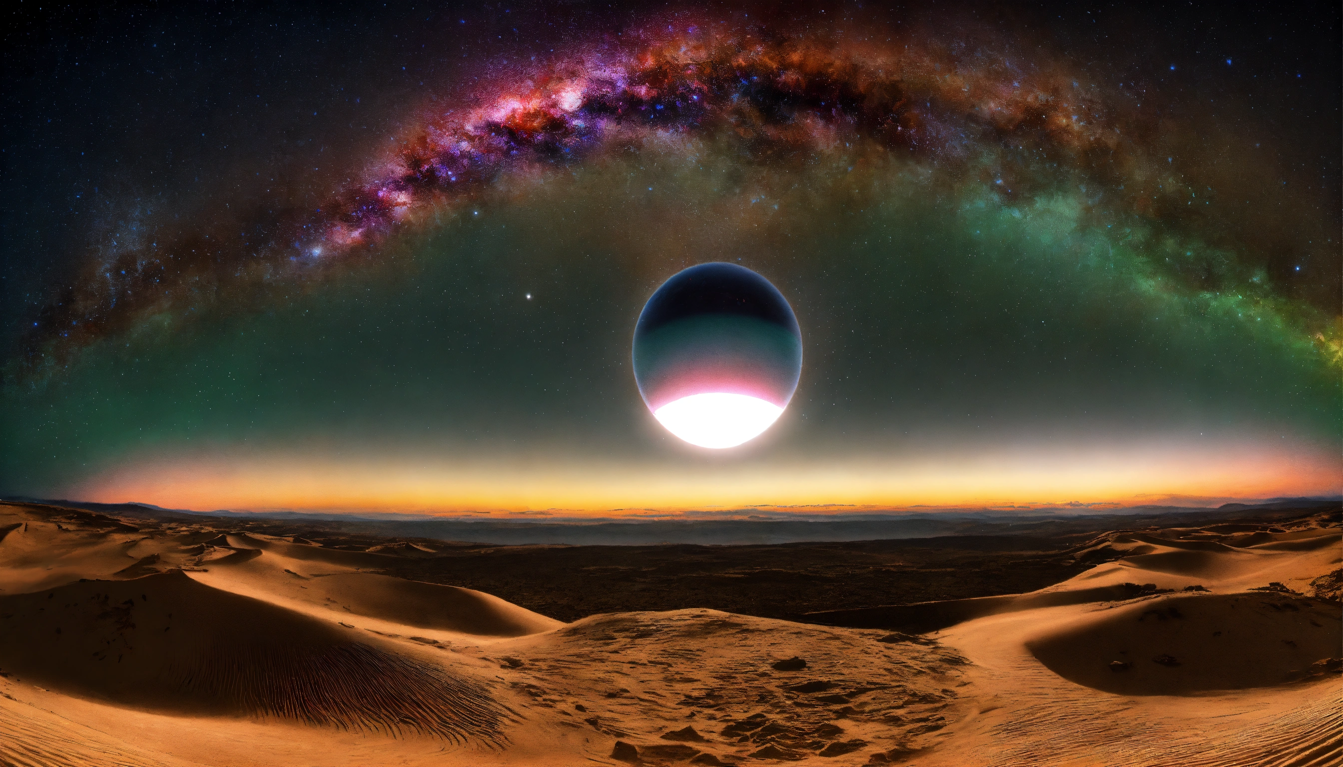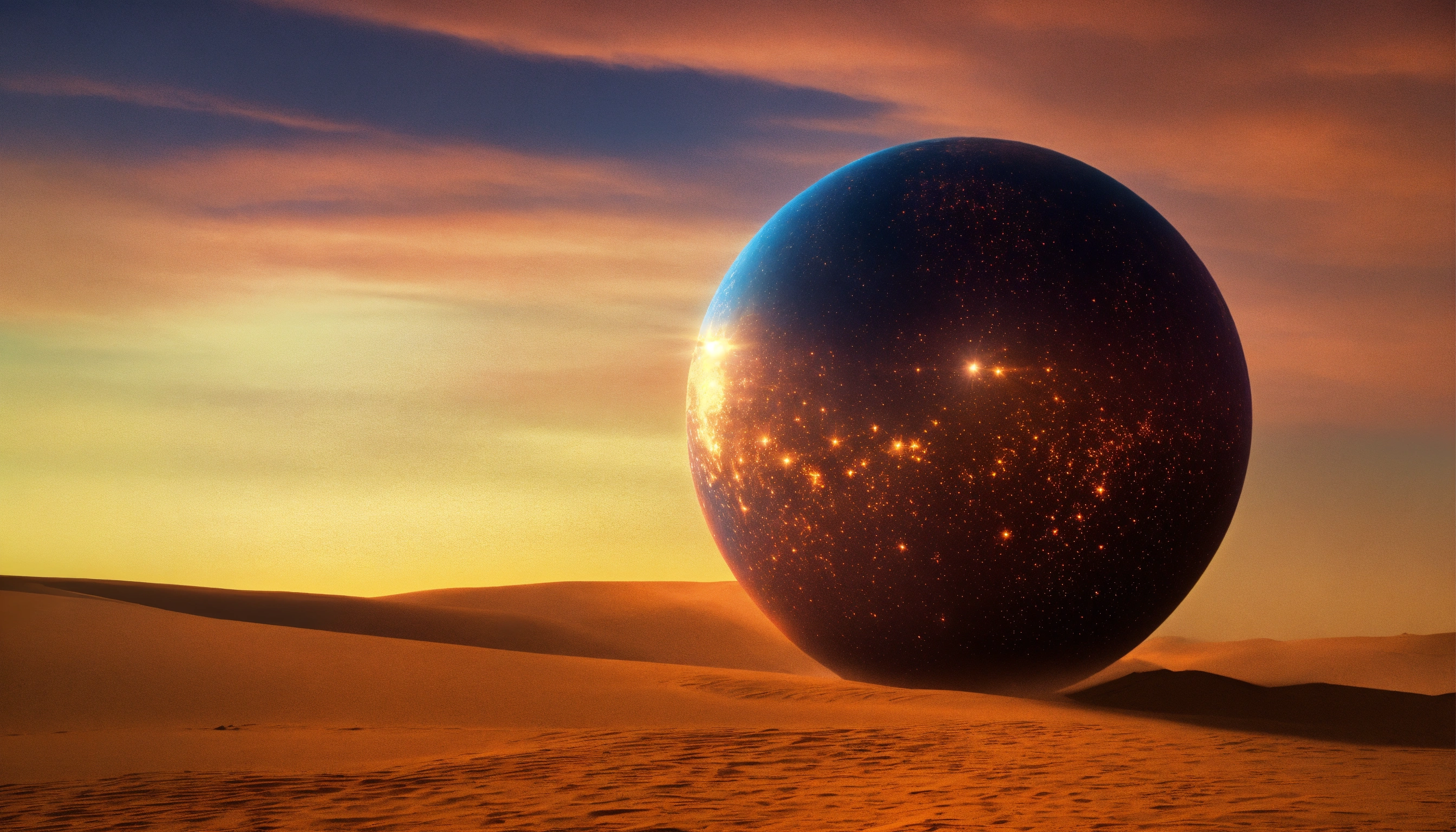 Genera una imagen de una esfera de luz hipnótica que sirve como portal hacia el oasis psicodélico