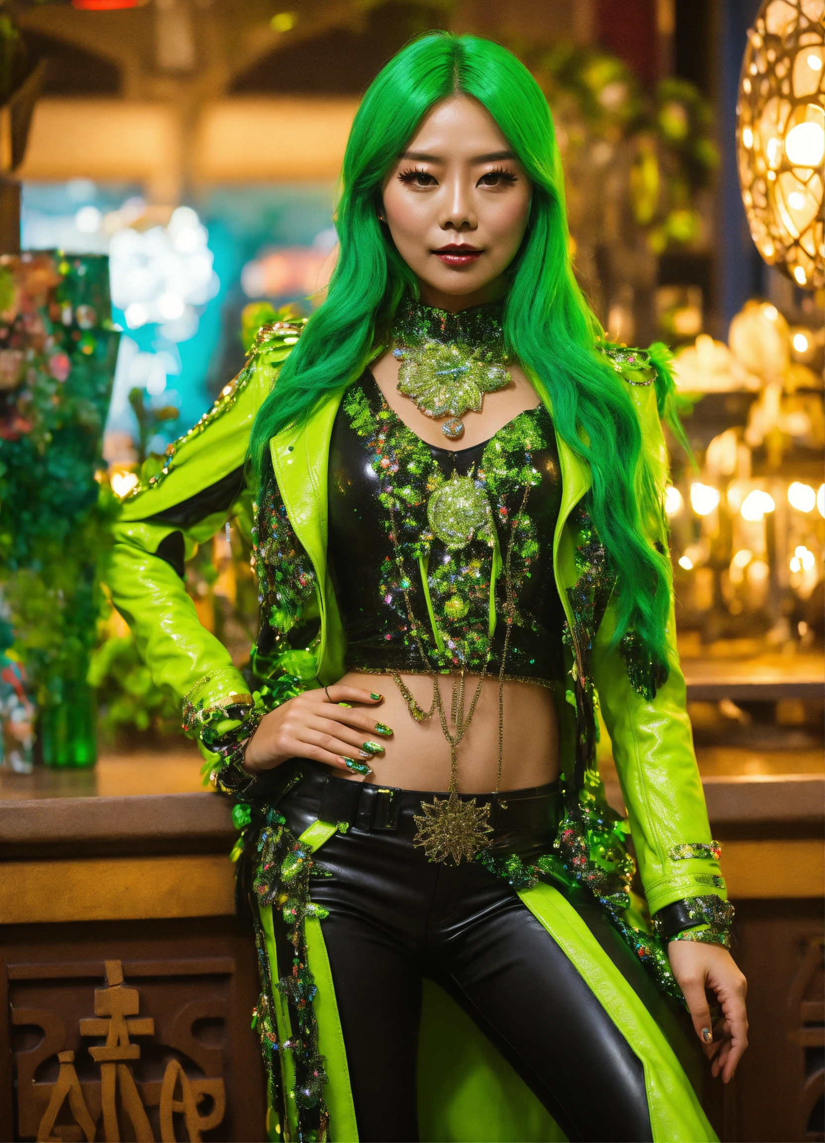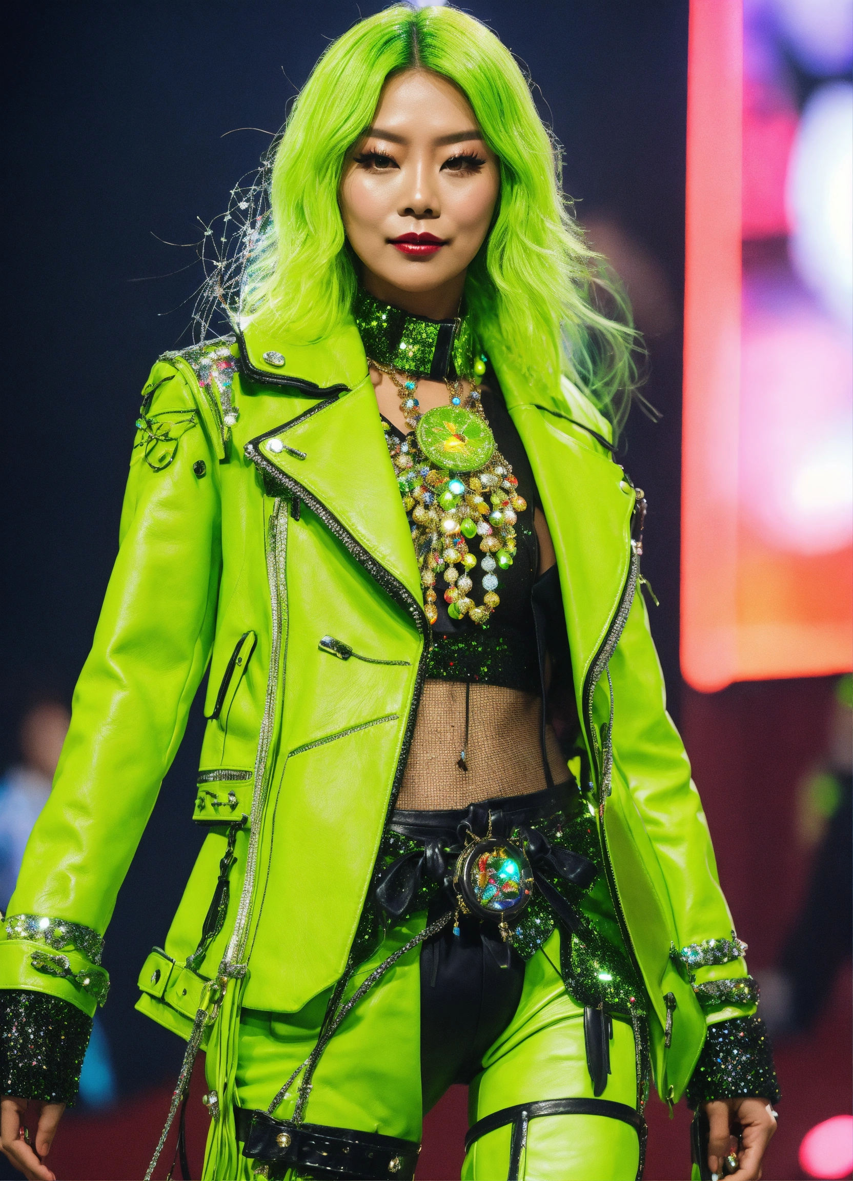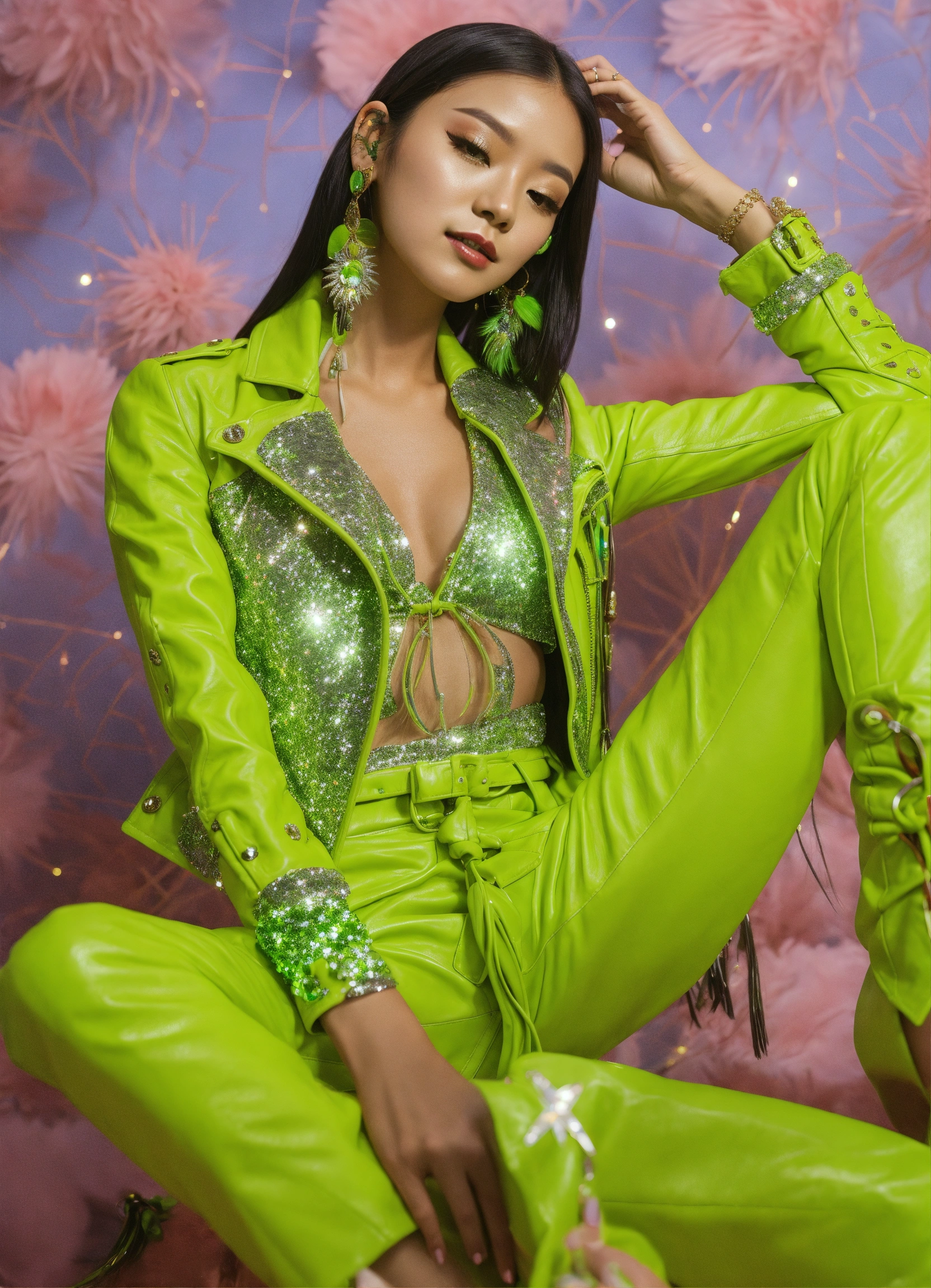 Dreamcatcher jiu glamorous sparkly lime leather full outfit