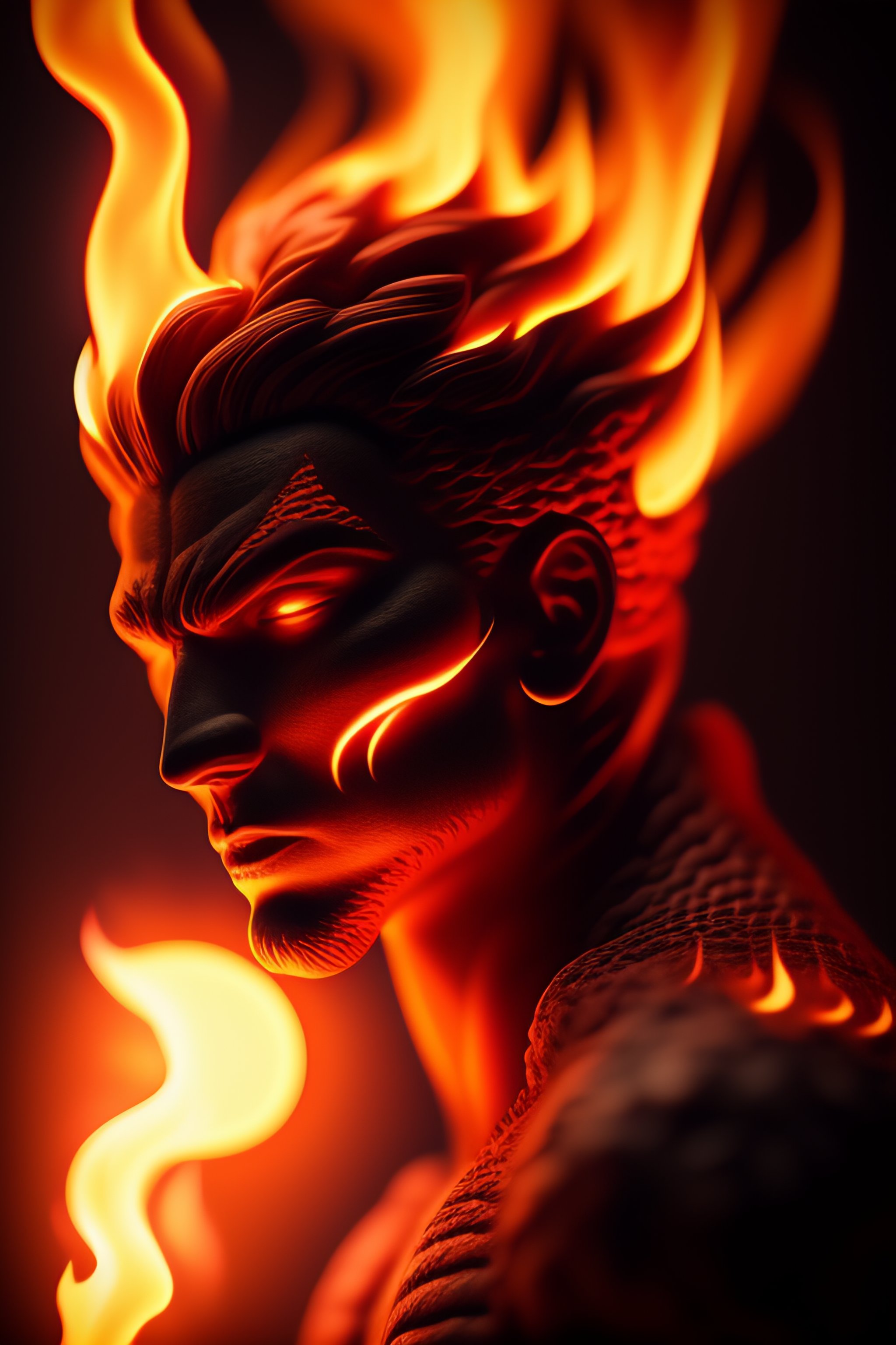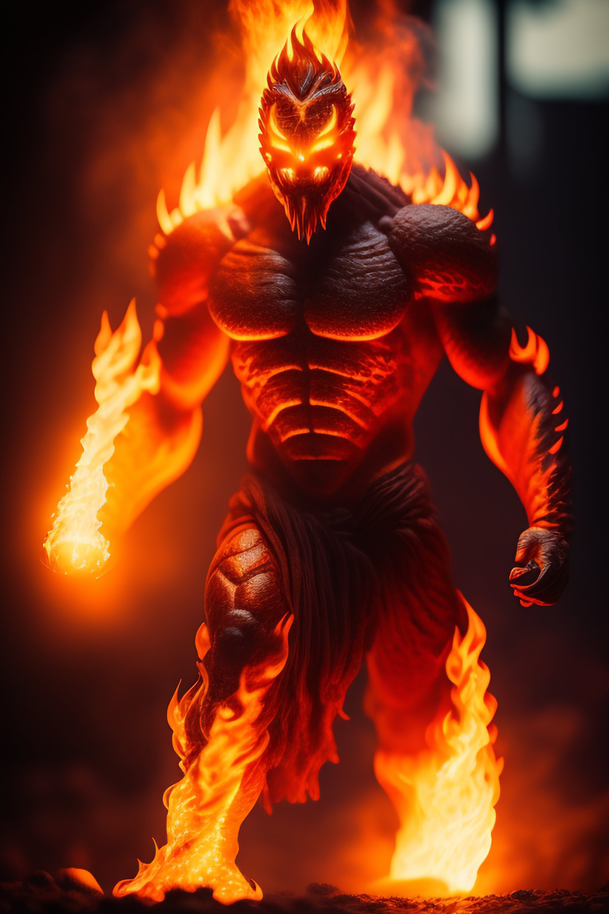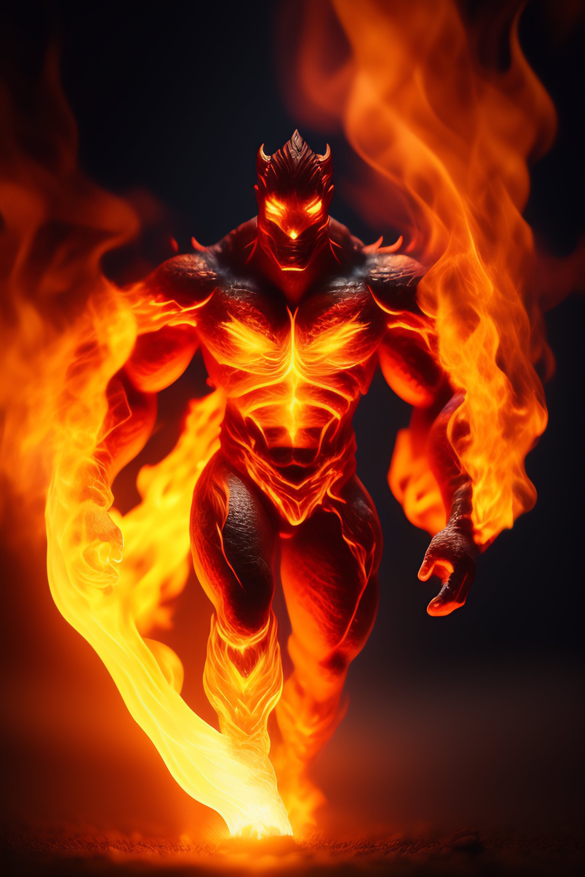 Flame human monster made of fire