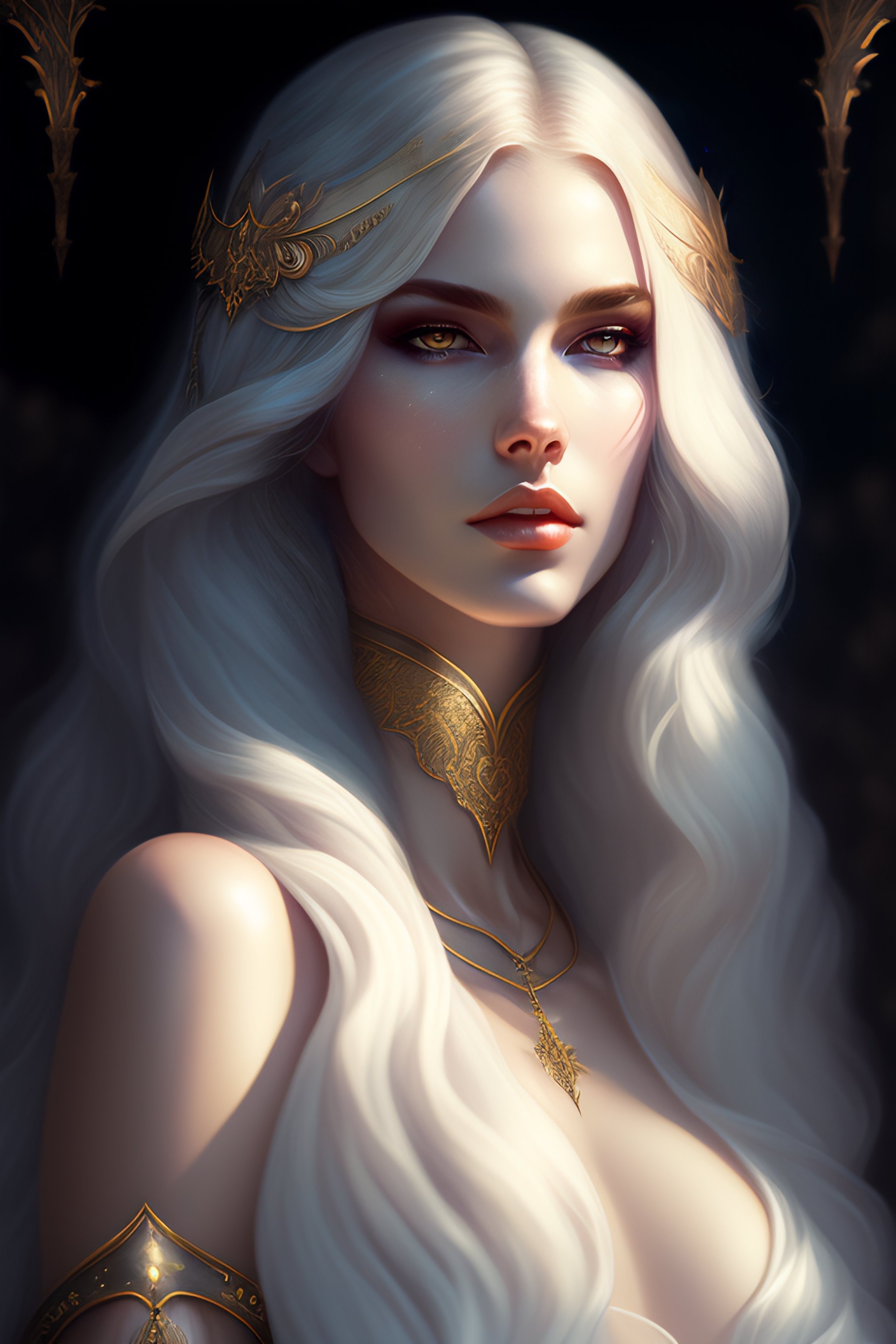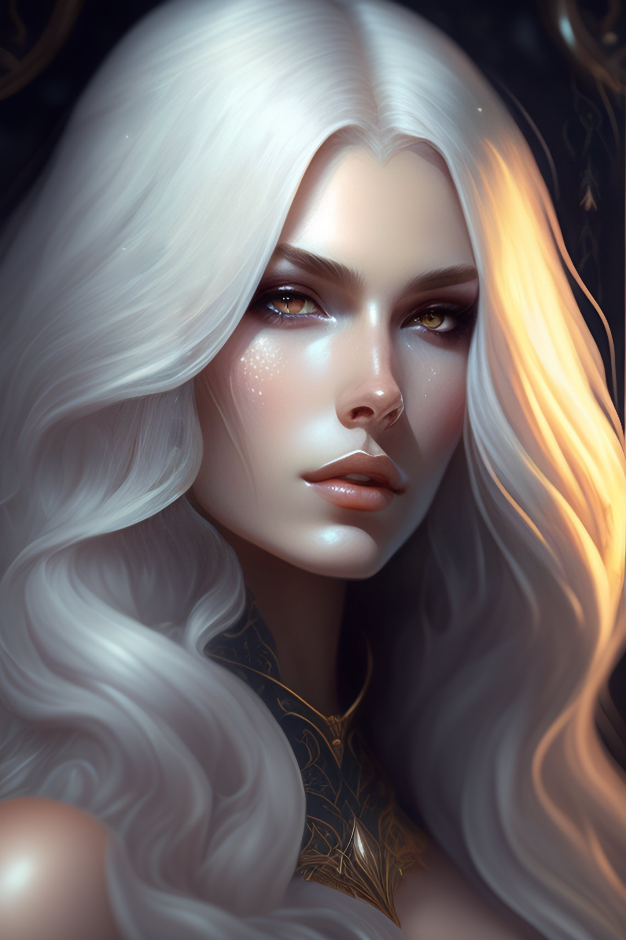 White long hair vampire glare, fantasy magic, dark pin-up style hair, dark light night, intricate, elegant, sharp focus, illustration, highly detailed, digital painting, concept art, matte, art by wlop and artgerm and greg rutkowski and alphonse mucha, masterpiece