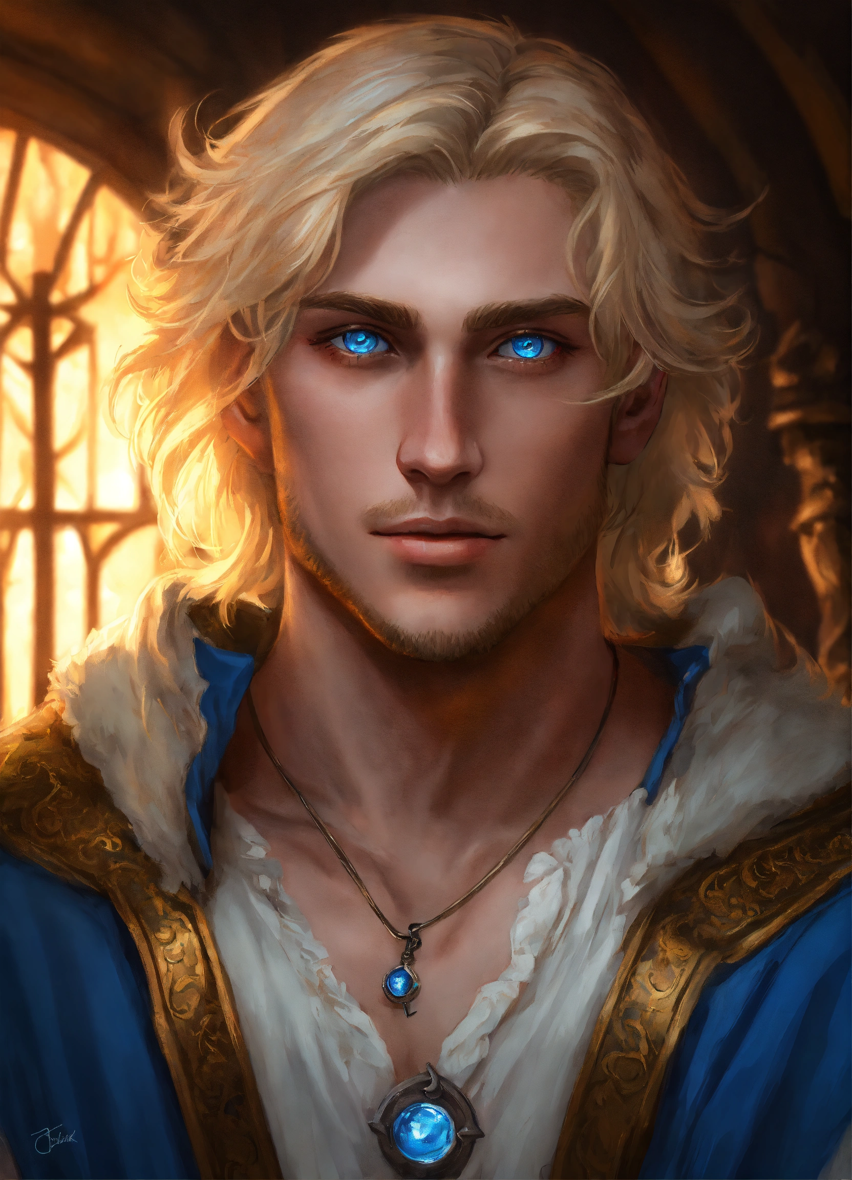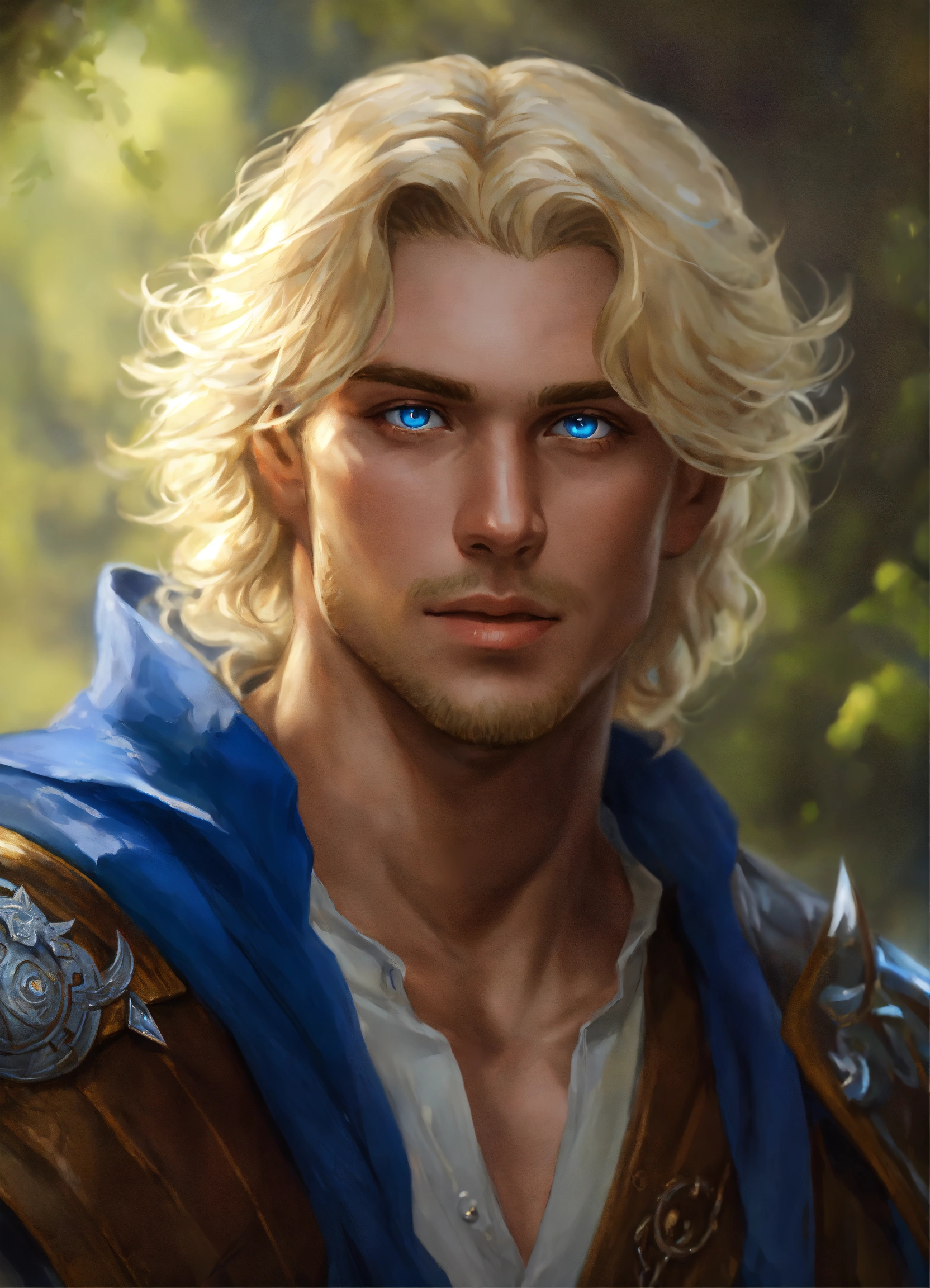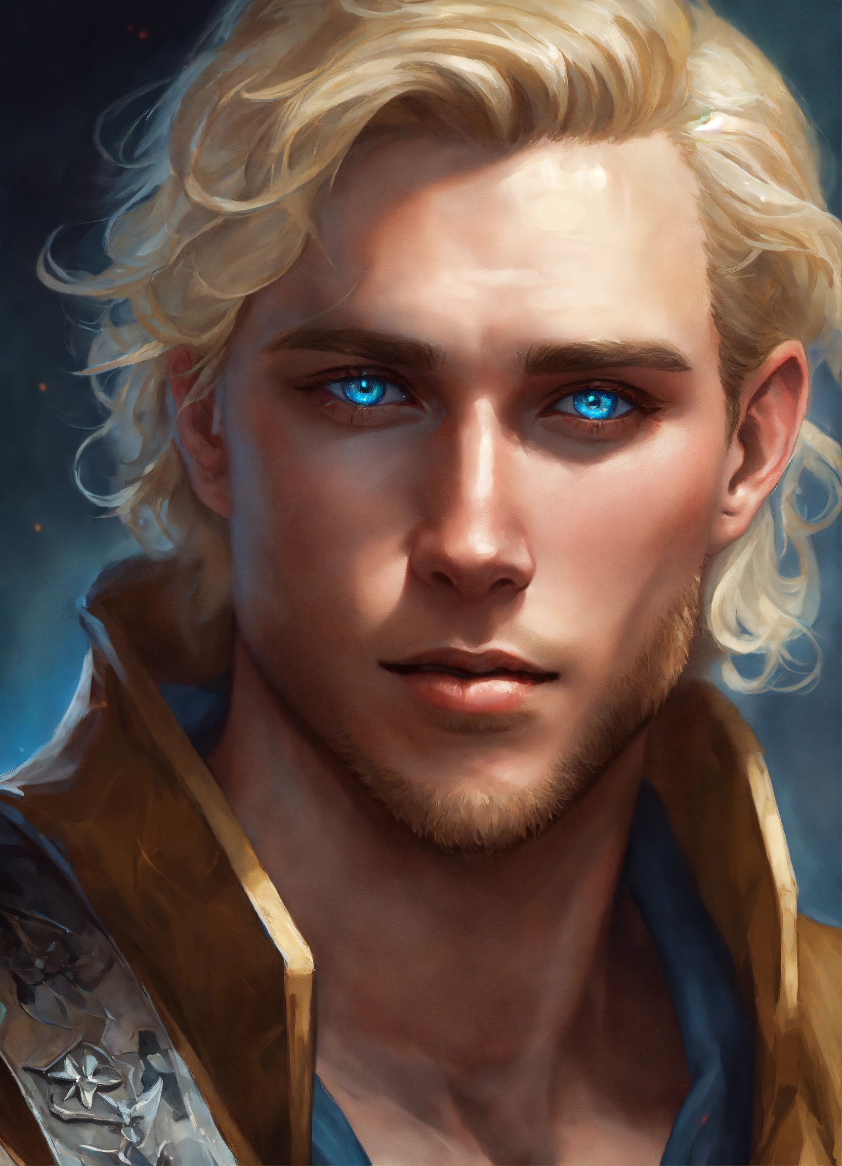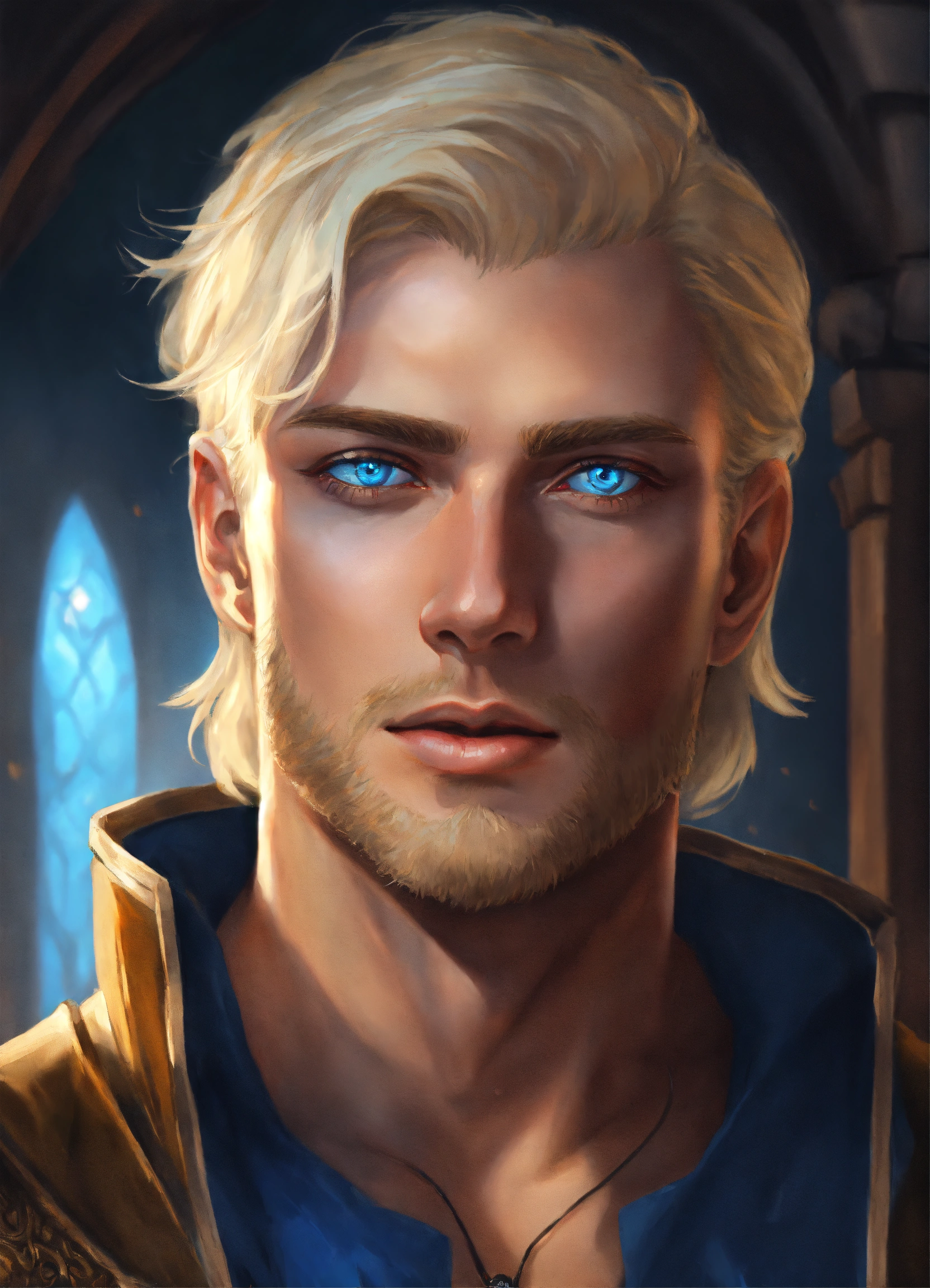 Cocky blonde man with blue eyes realistic art fantasy dungeons and dragons