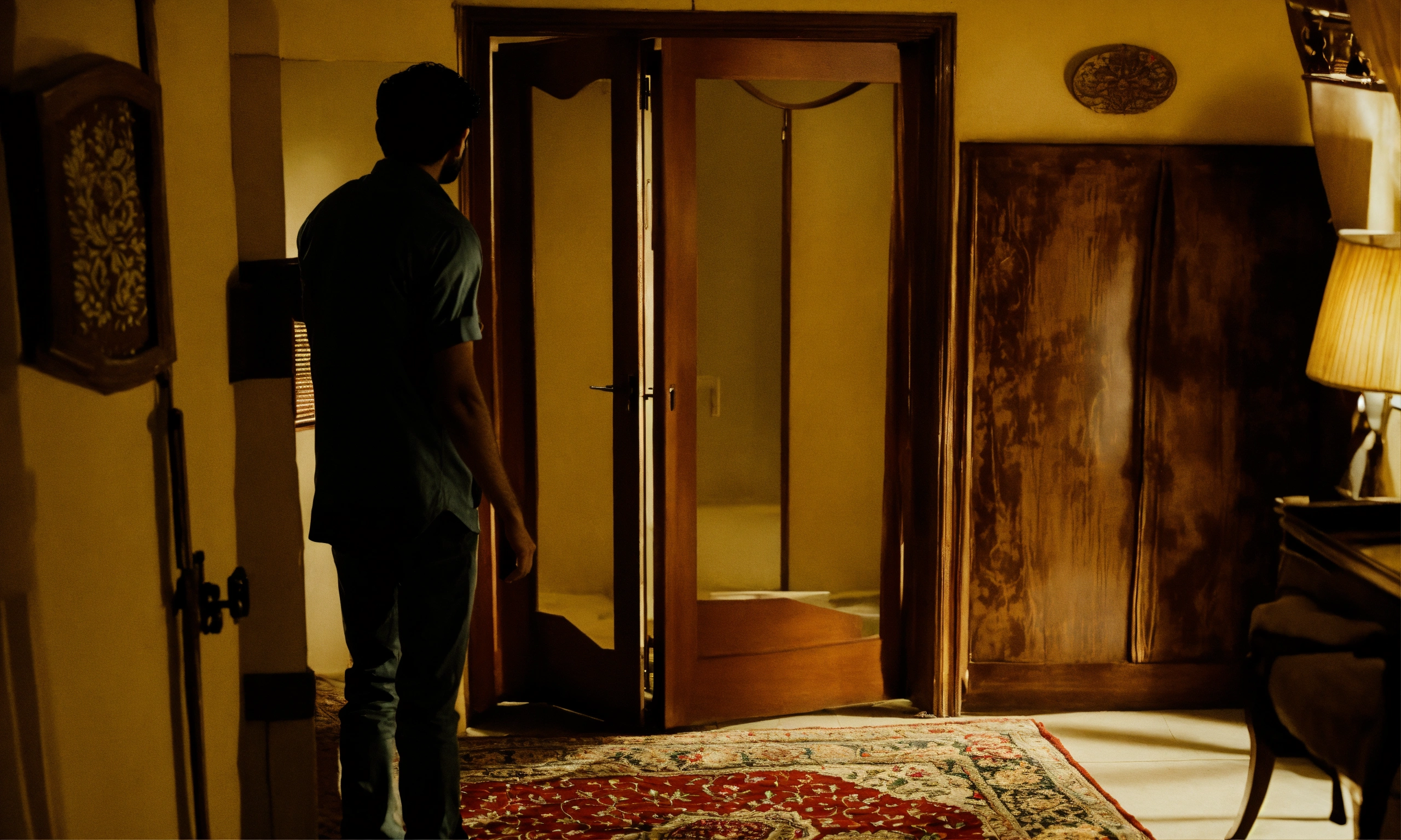 Hasan secretly entered his room. opened the door and when he was satisfied that all the family members were asleep and no one was watching him, he stepped out of the house.