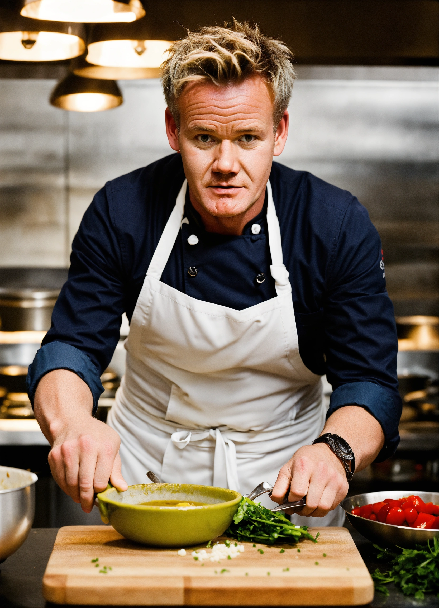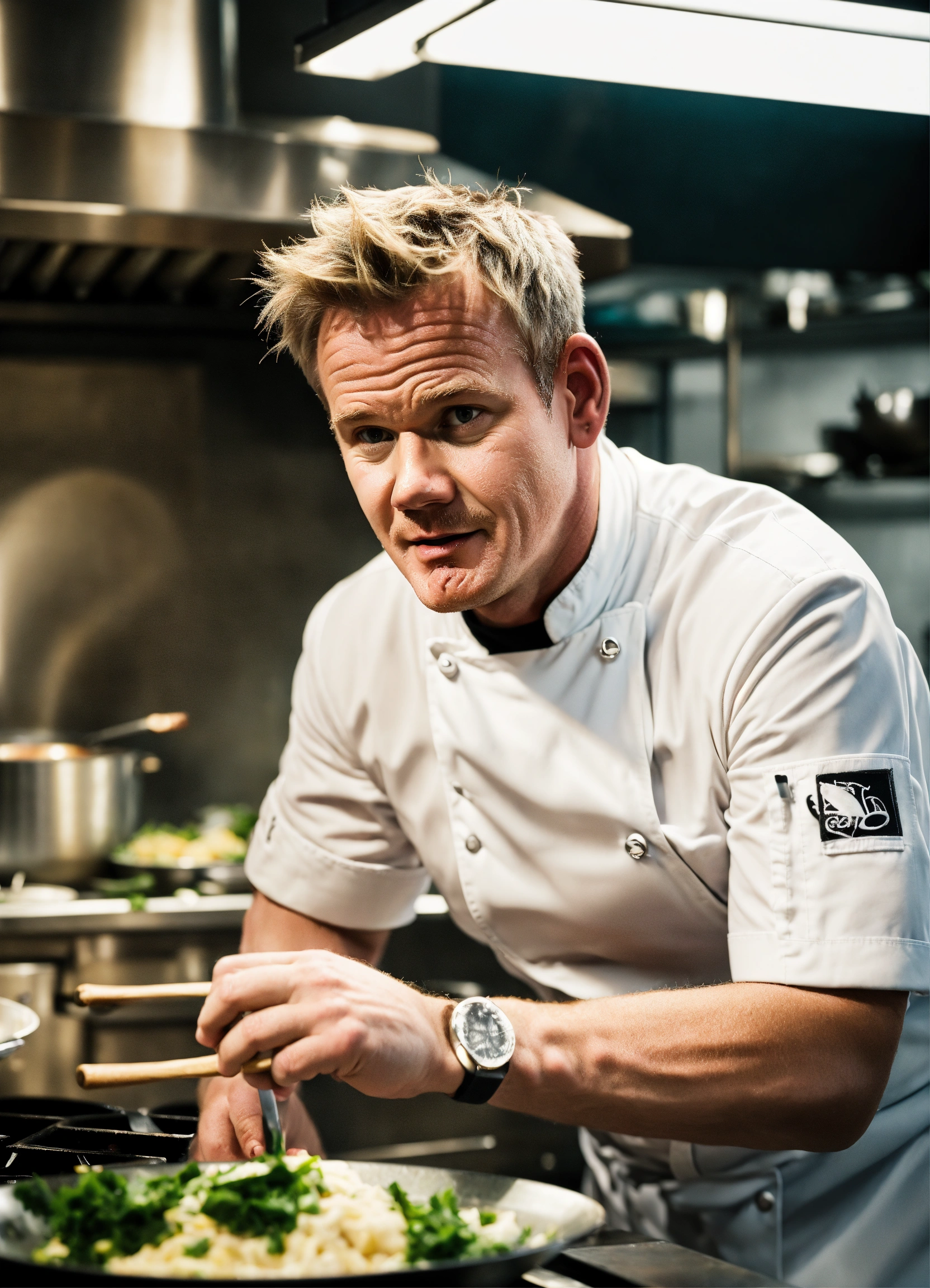 Gordon ramsey cooking looking at the camera