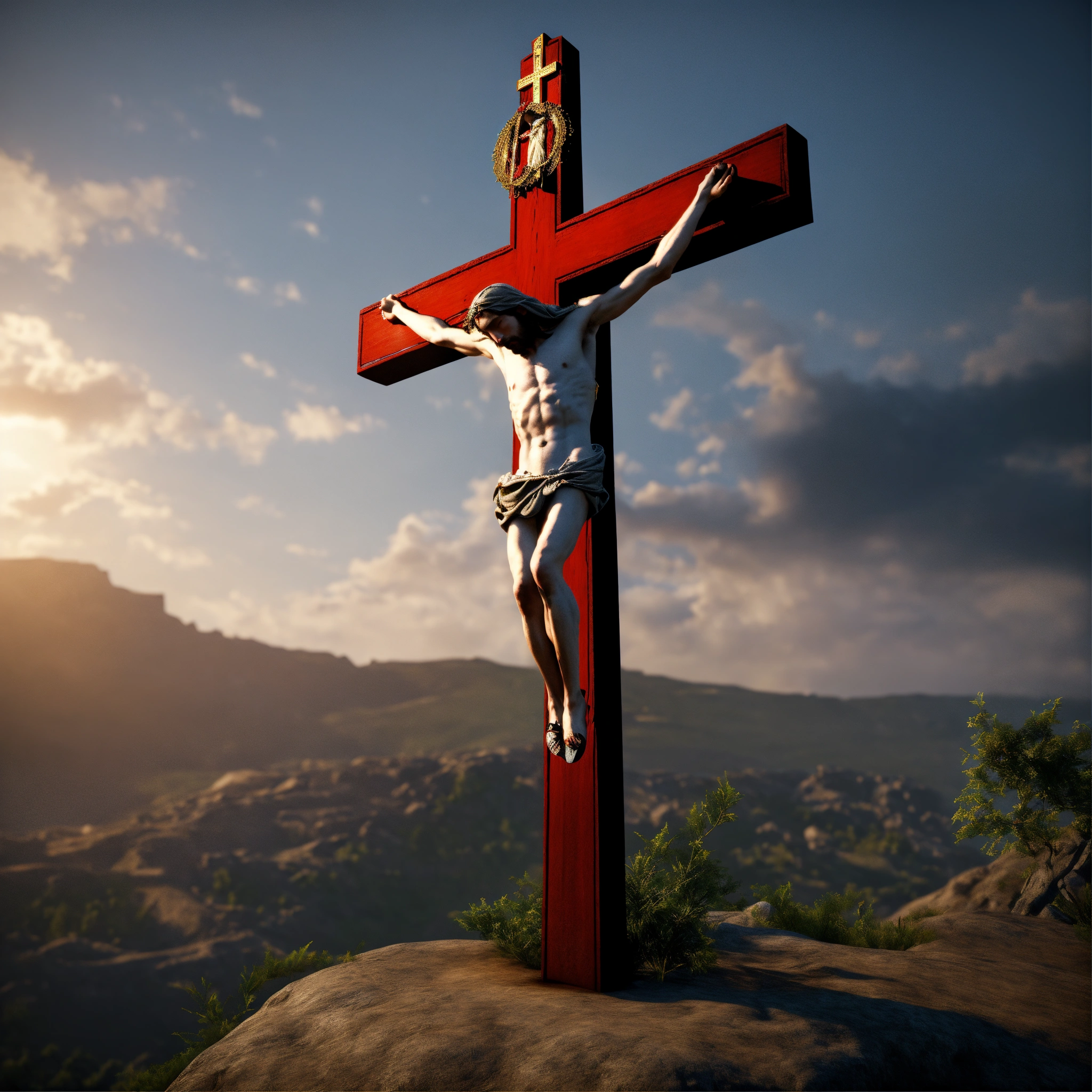 Unreal engine catholic portrait of jesus christ on the cross