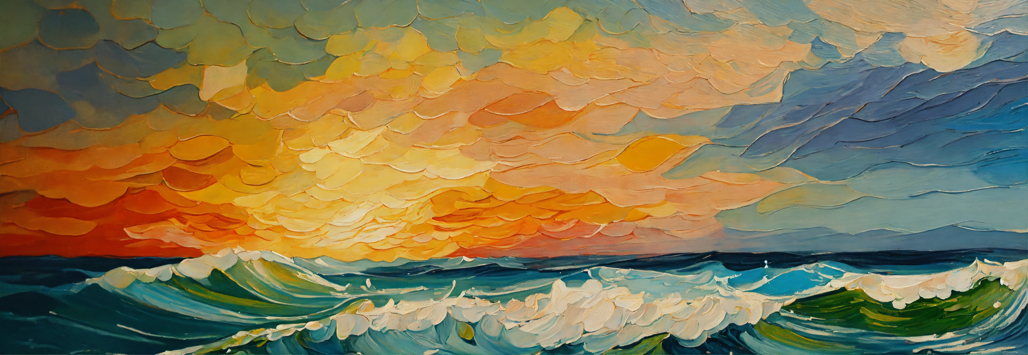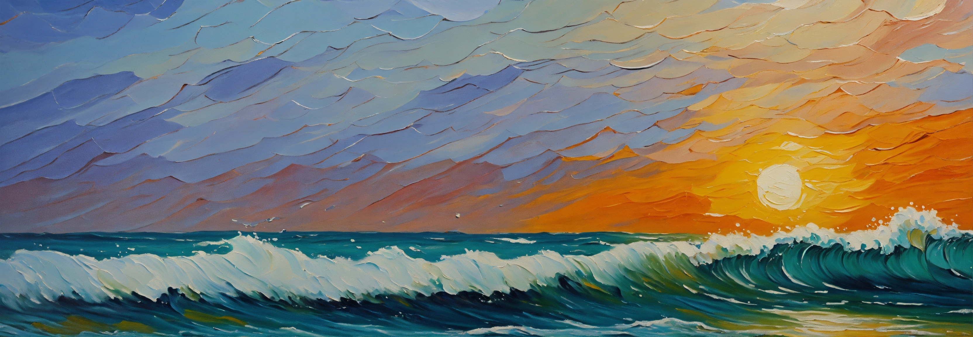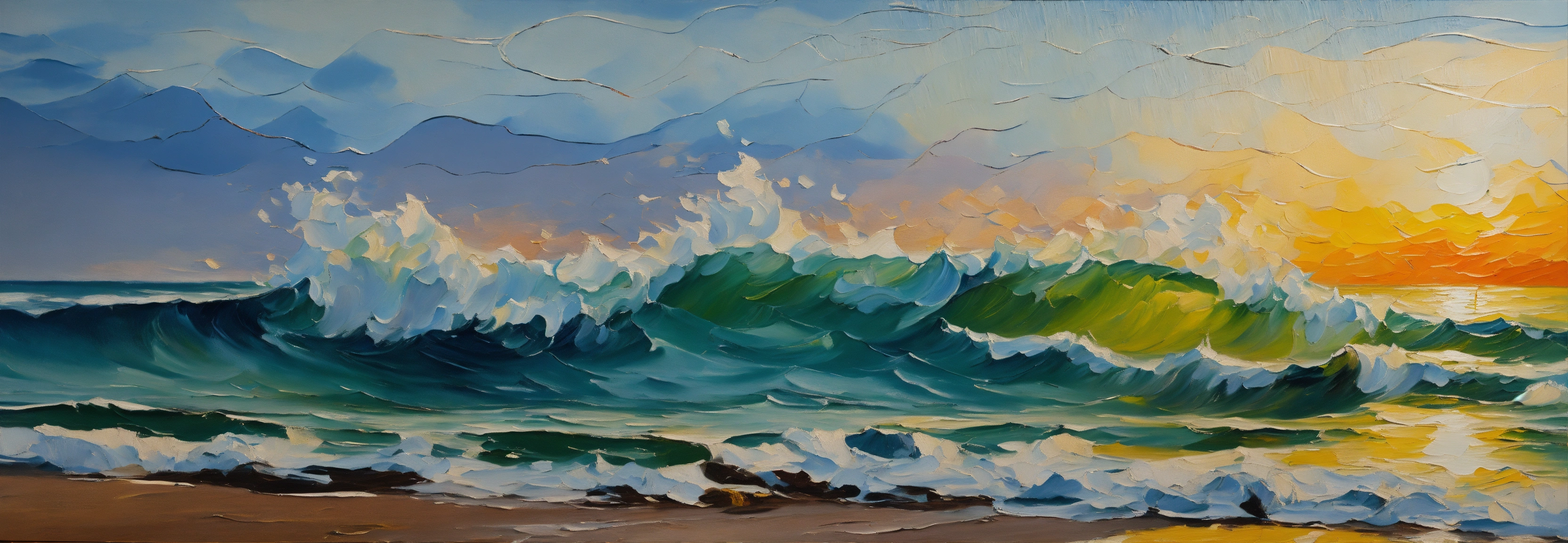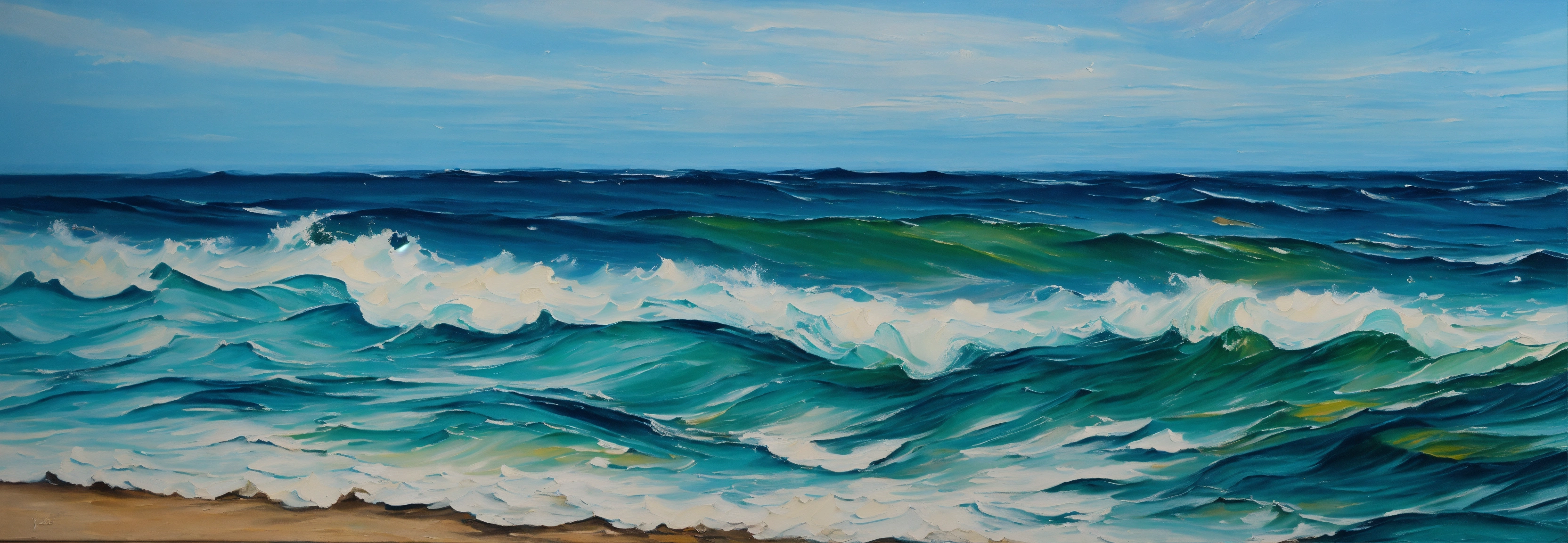 Sea waves close-up frontal oil painting fine art palete knife
