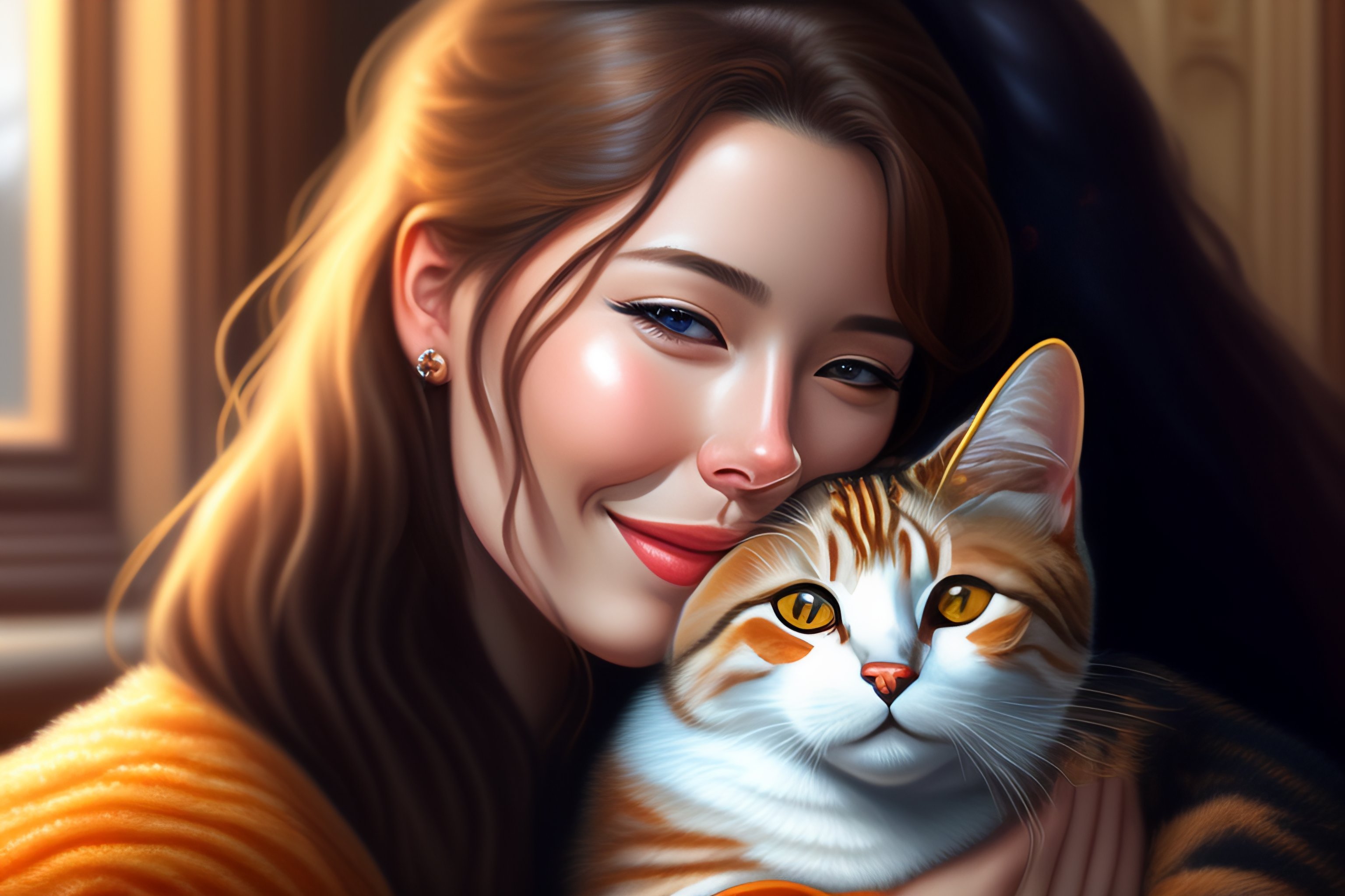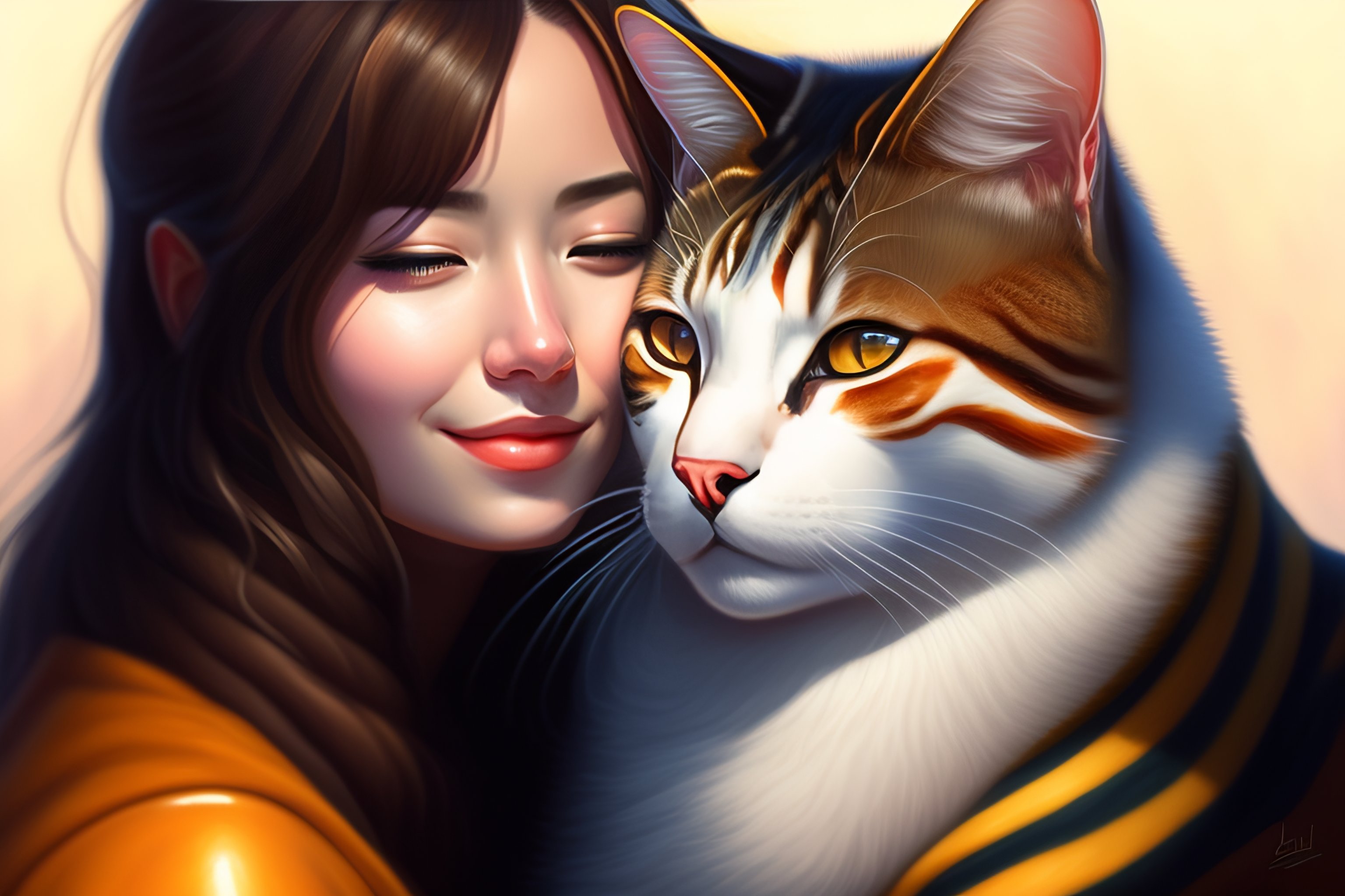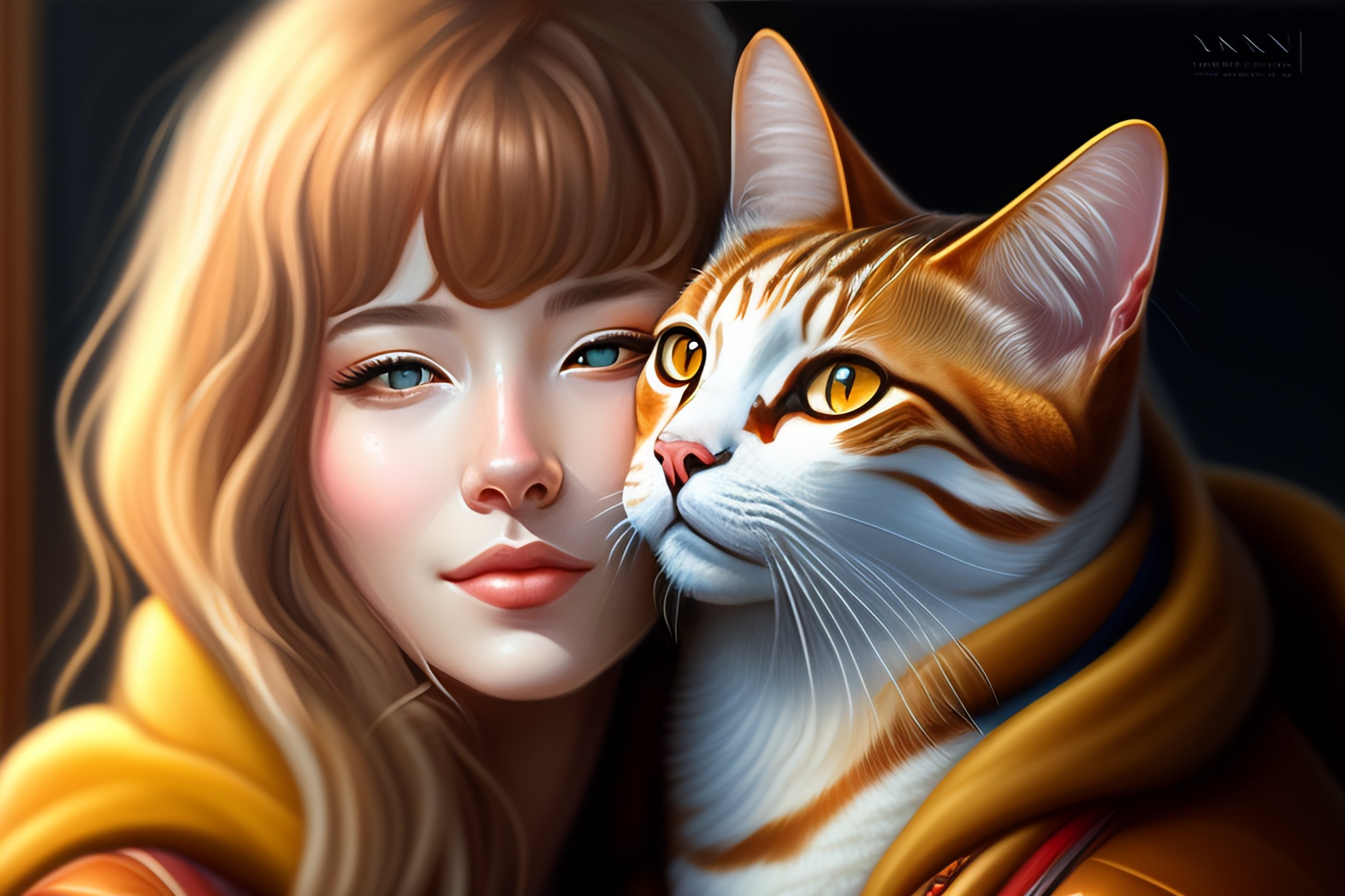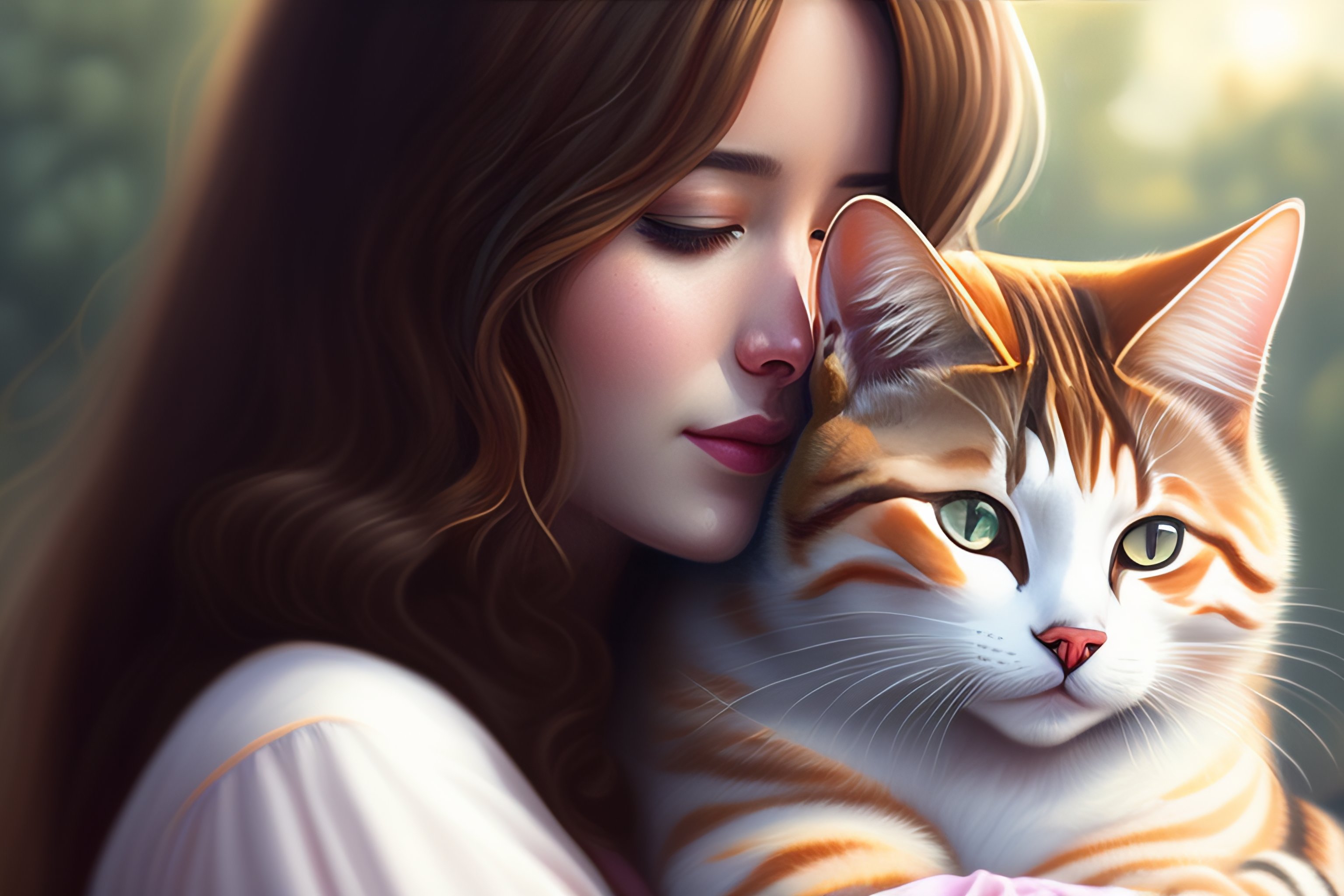 A detailed portrait of nancy jewel mcdonie hugging a tabby cat illustrator, digital art, realistic painting, dnd, character design, trending on artstation