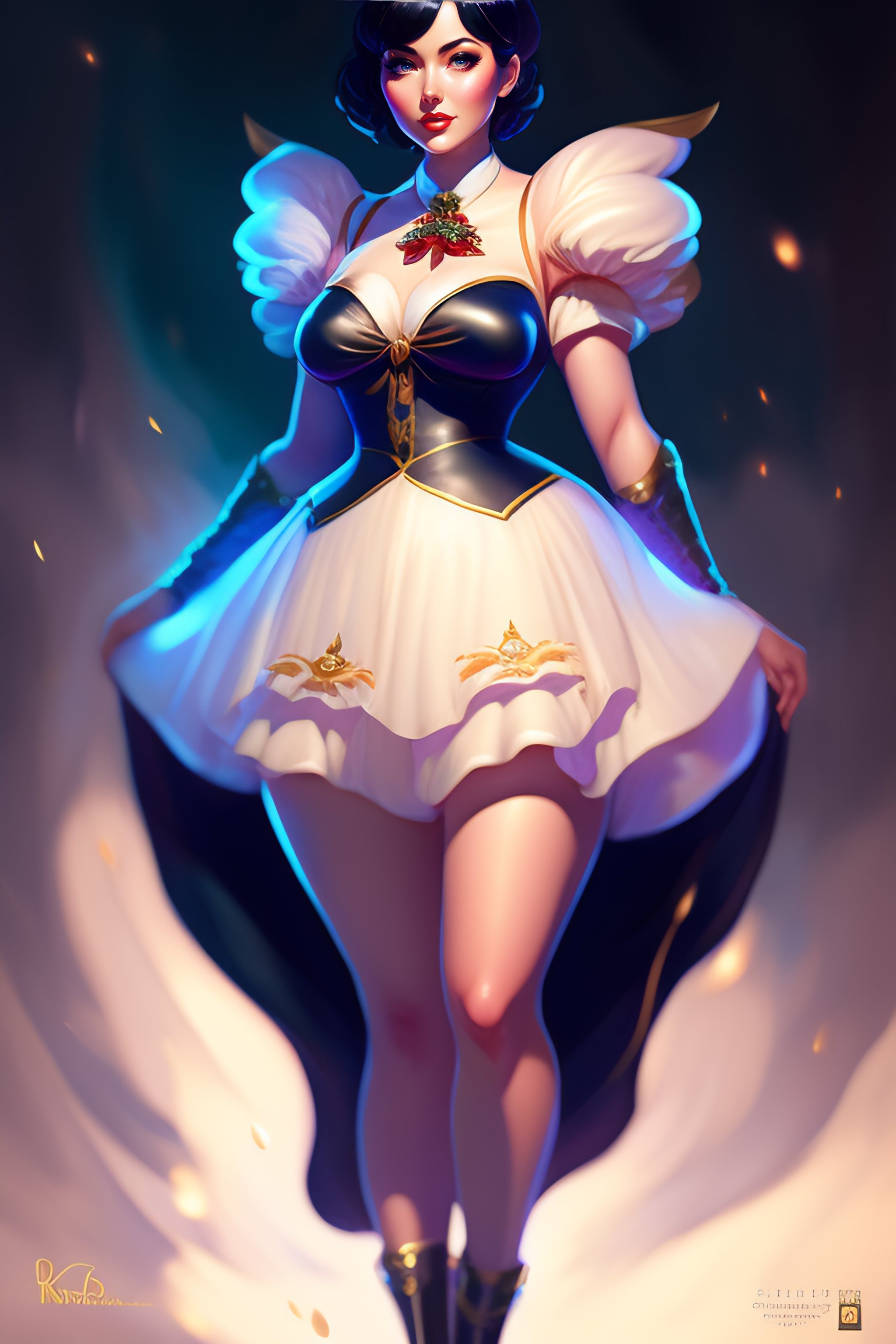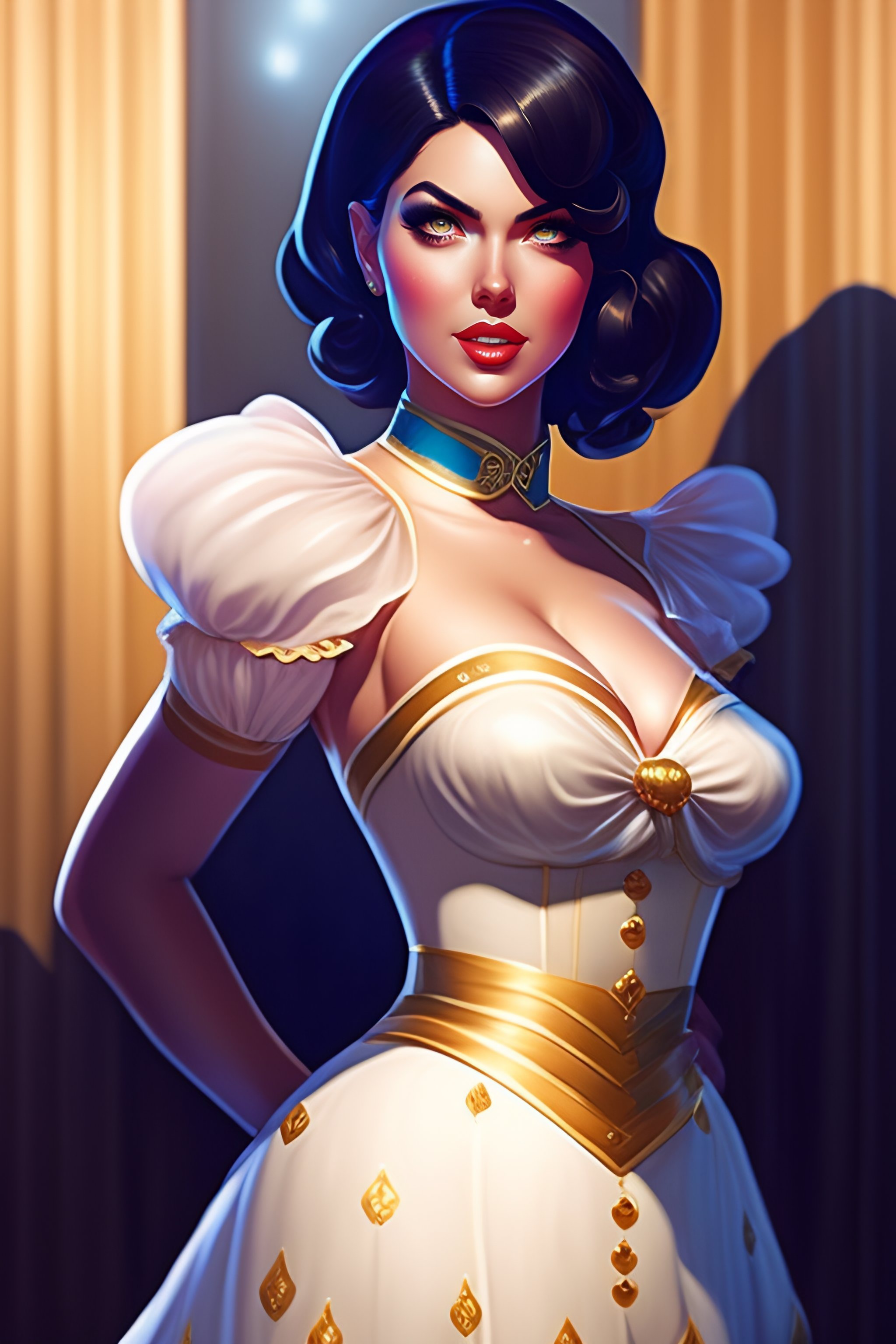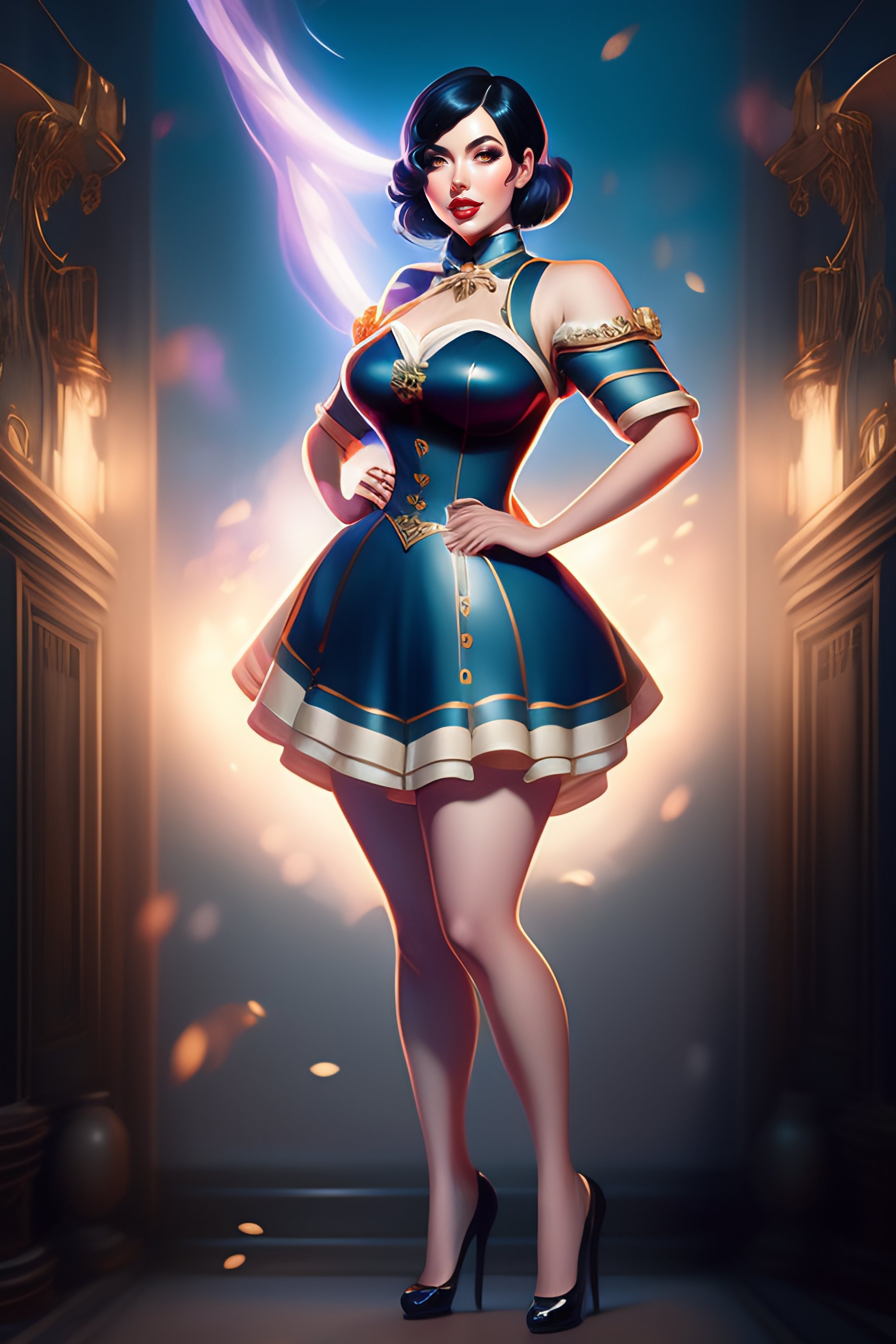 Full body, kate upton as elizabeth from bioshock infinite, burlesque dress, dynamic pose, black hair, doe eyes, by shinkai makoto studio ghibli studio key hideaki anno sakimichan stanley artgerm lau rossdraws james jean marc simonetti elegant highly detailed digital painting artstation pixiv