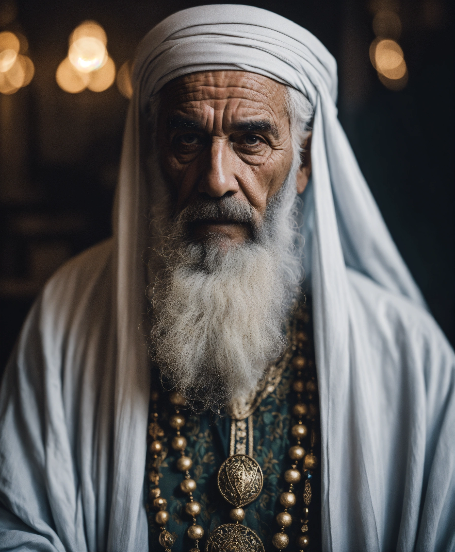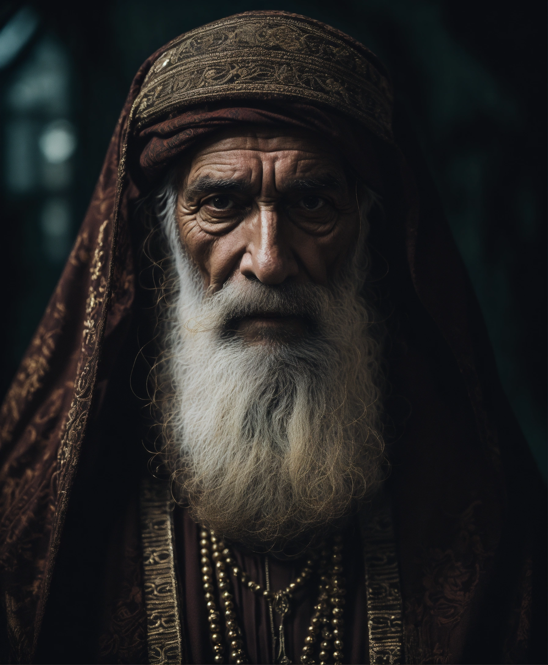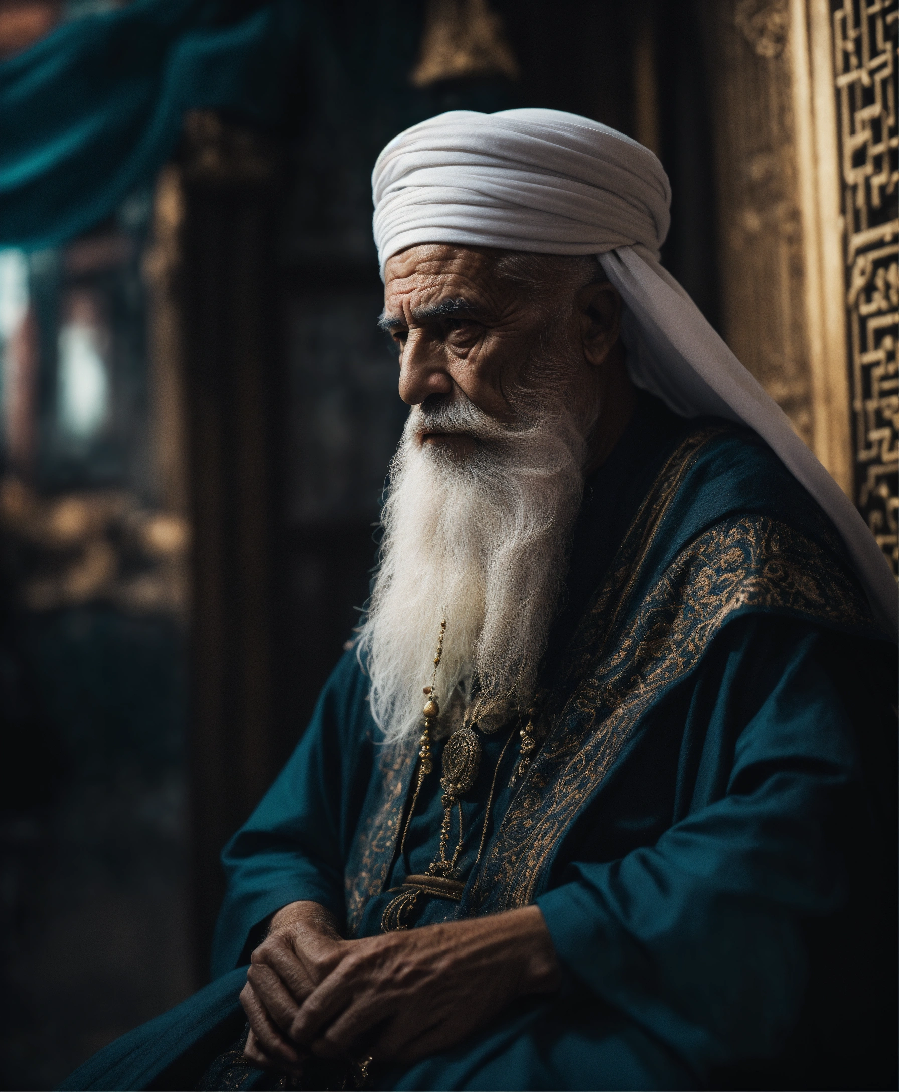 Dark moody aesthetic, wise old arab with a long white beard, intricate, sharp focus, fantasy, surreal 8k photo