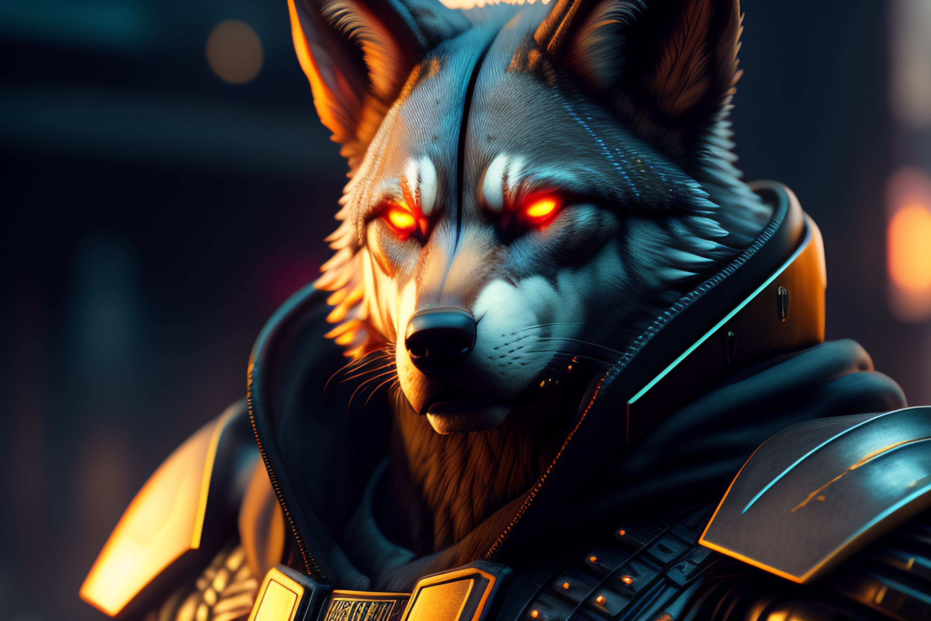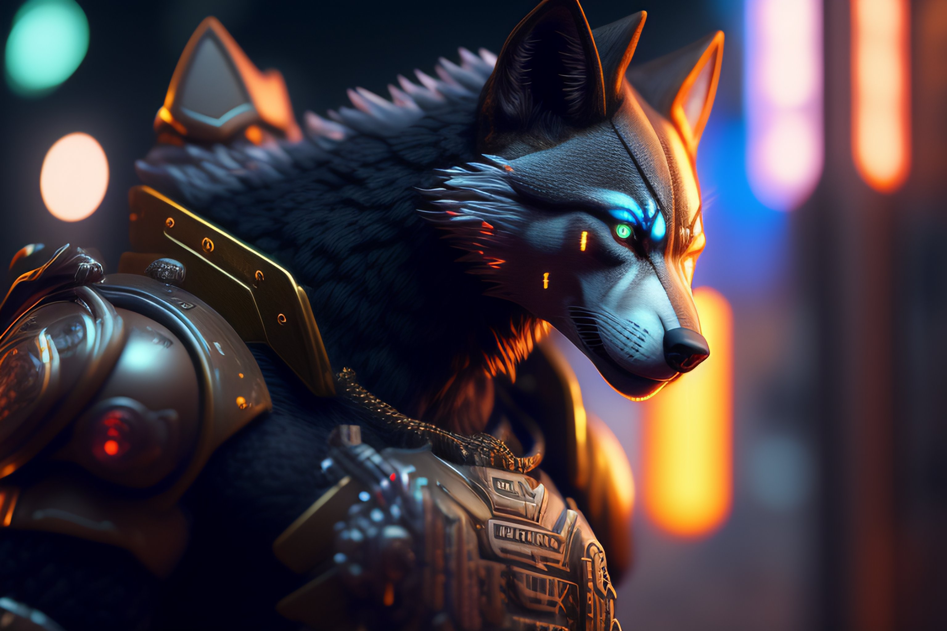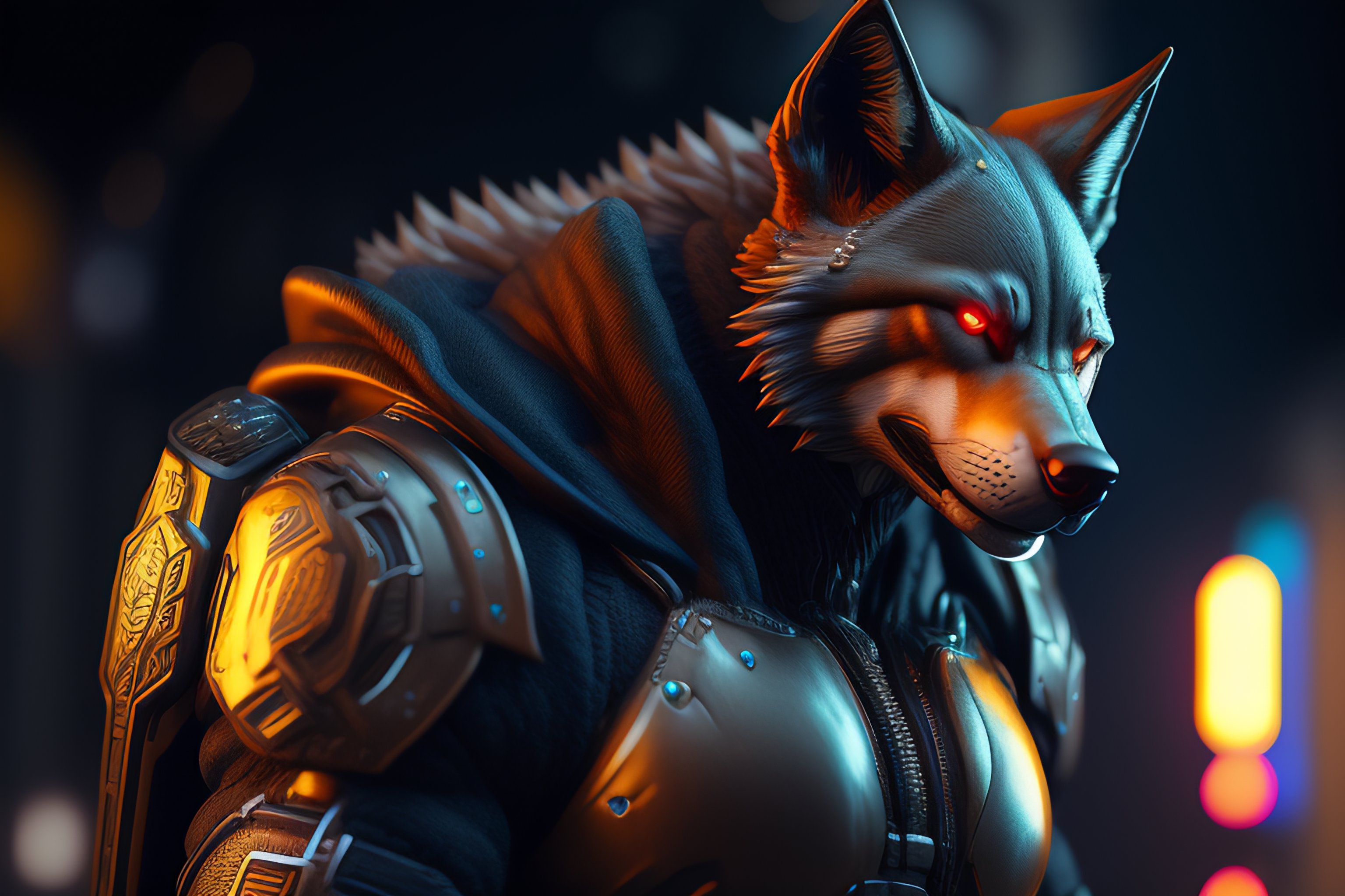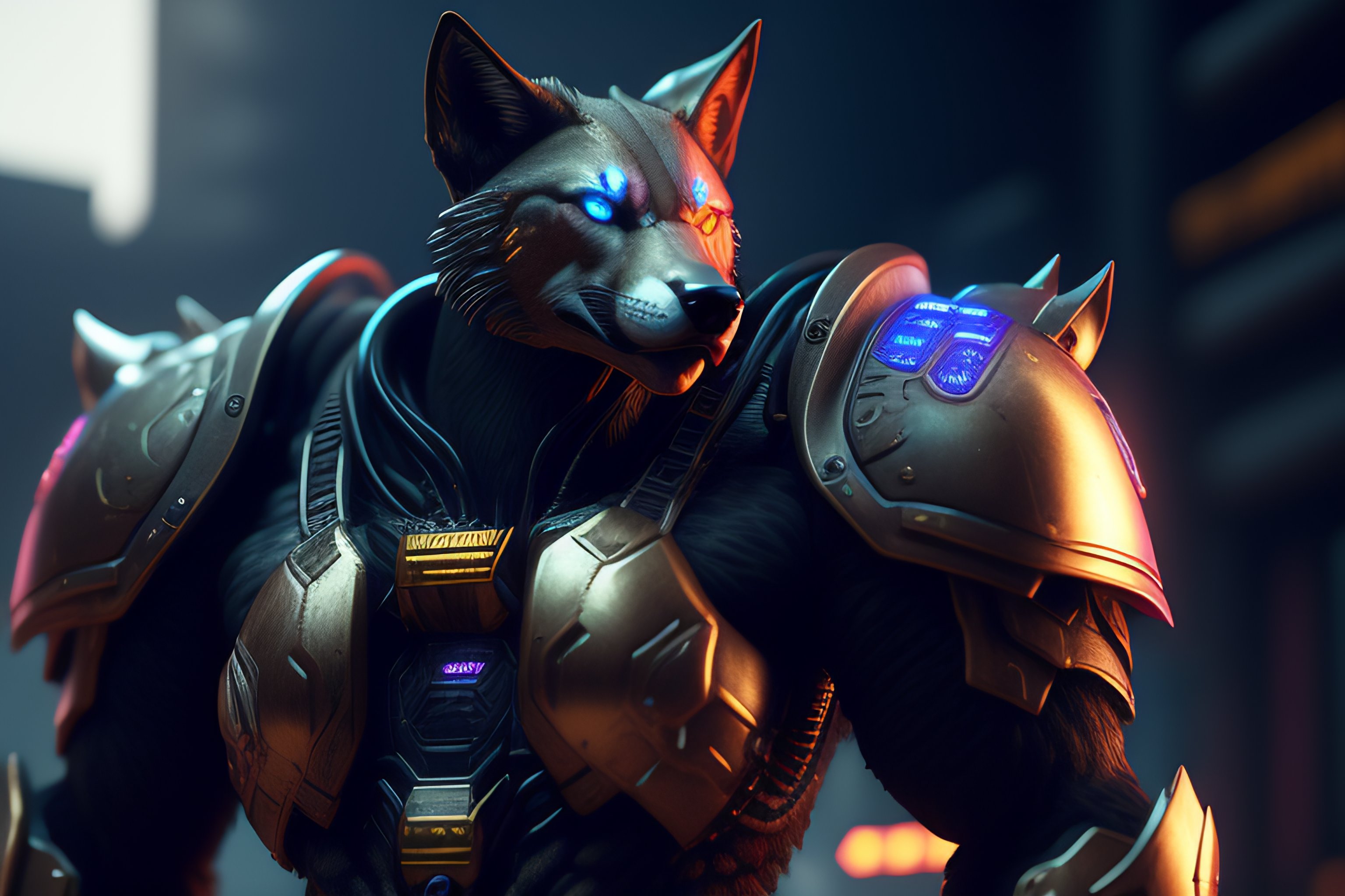 Cyberpunk of a cybernetic toys werewolf with power armor, ultra realistic, concept art, intricate details, eerie, highly detailed, photorealistic, octane render, 8 k, unreal engine. art.