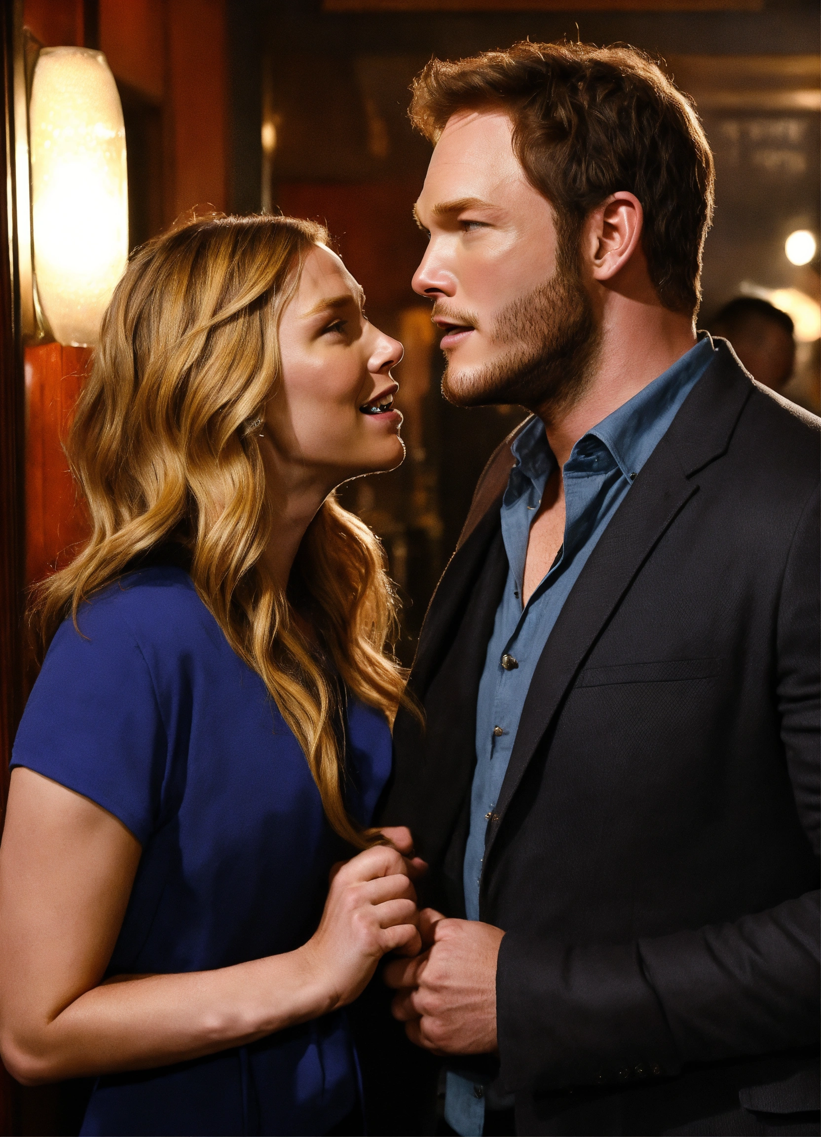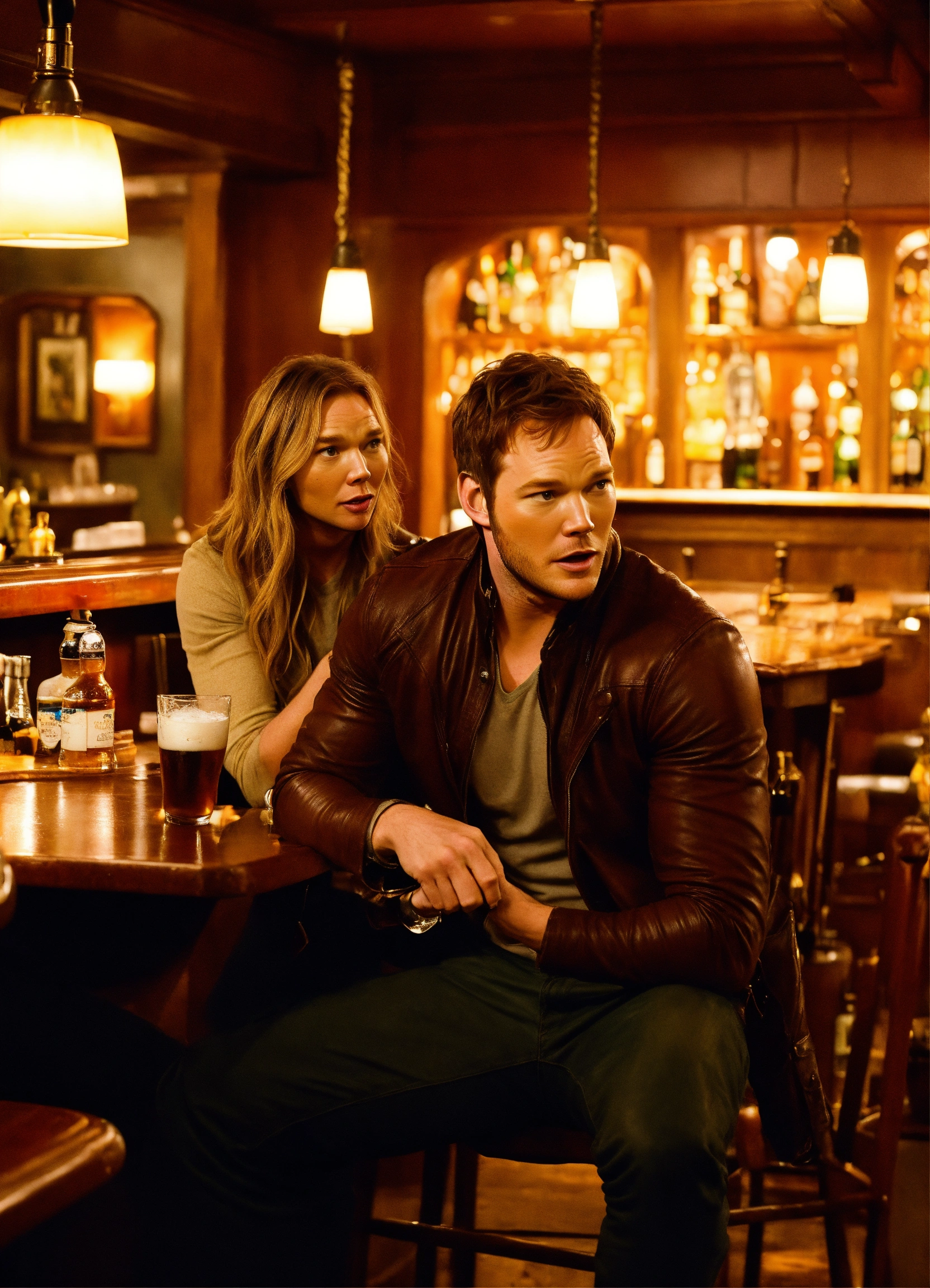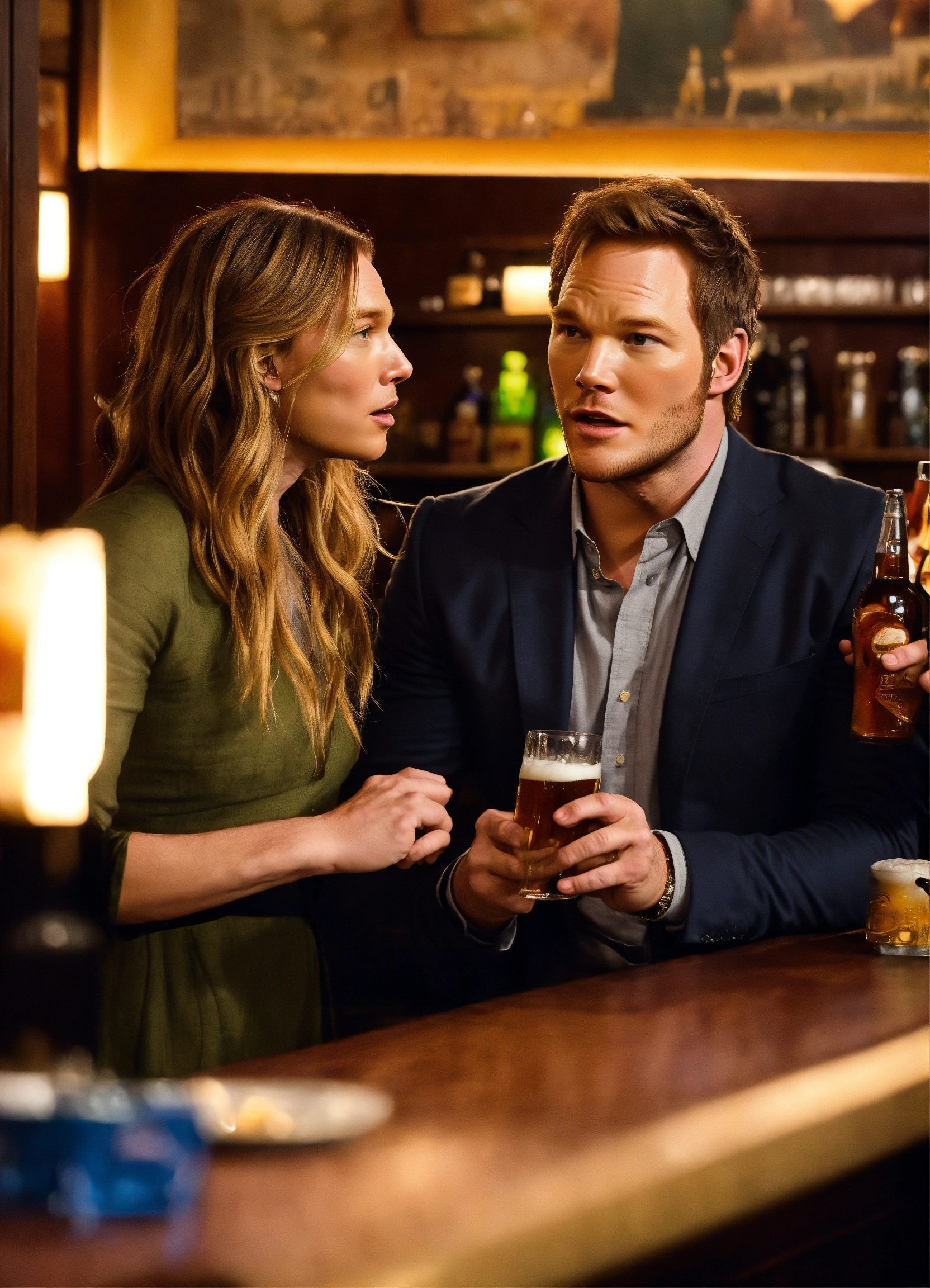 Chris pratt and elizabeth olsen are fighting in the pub's restroom