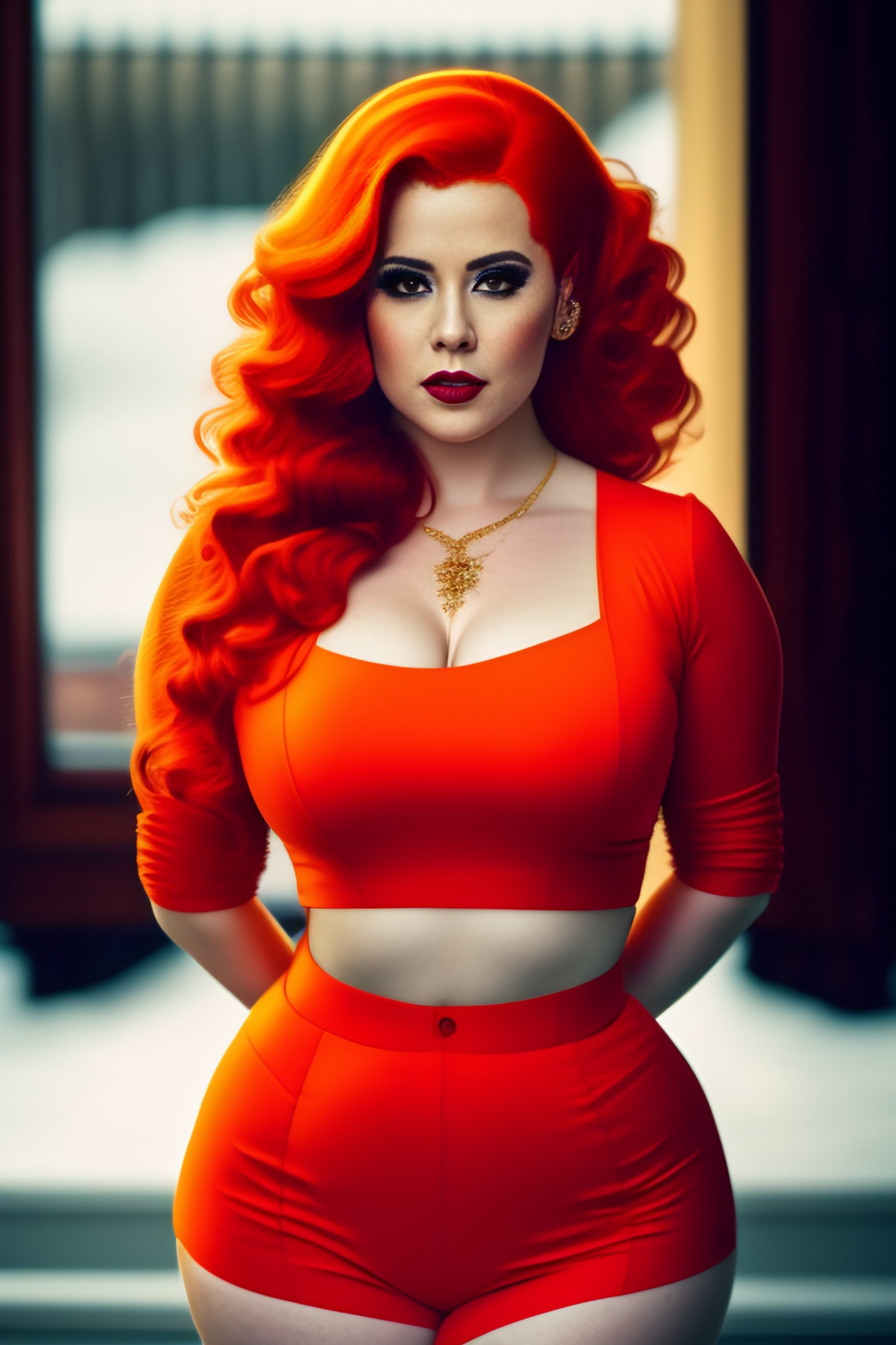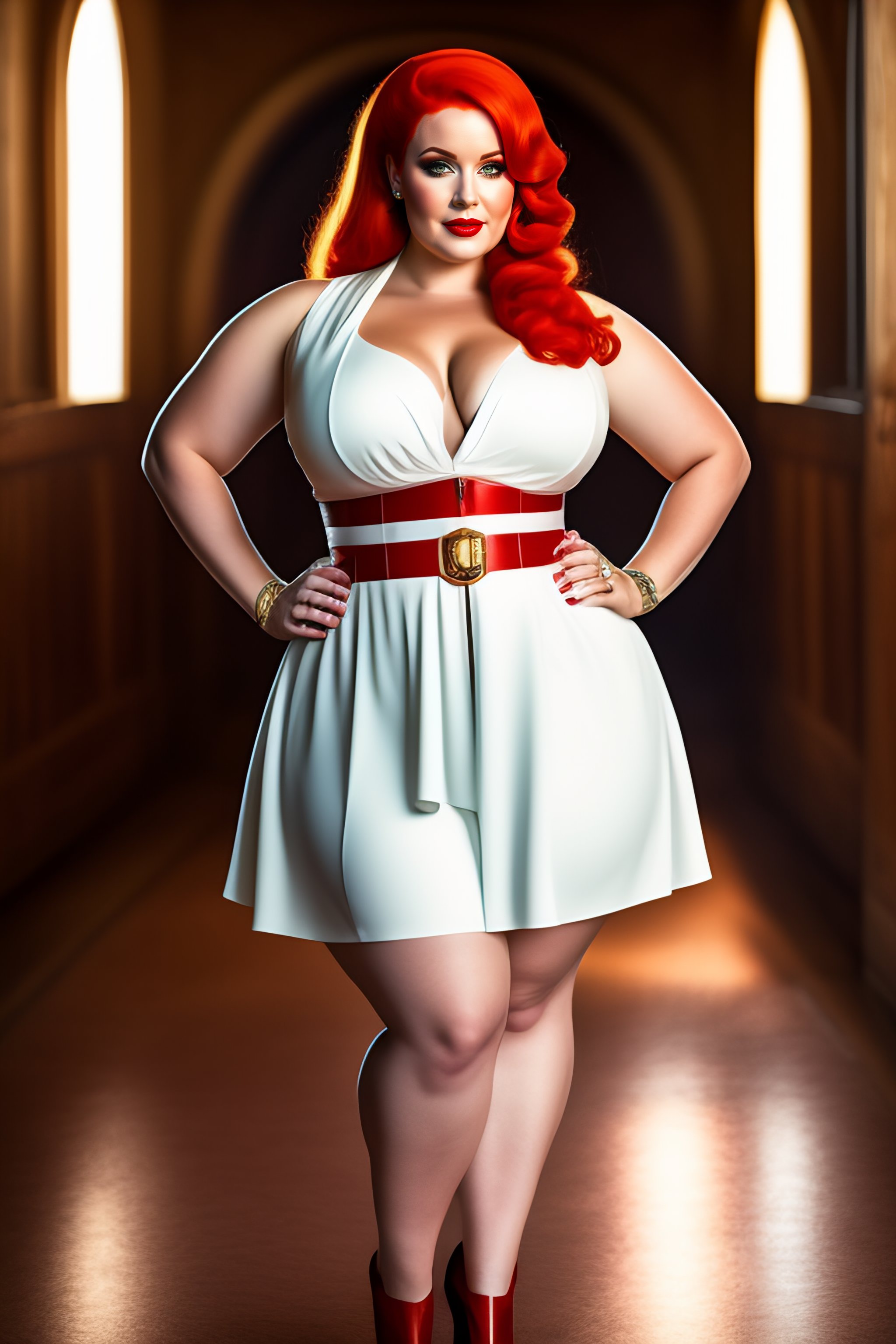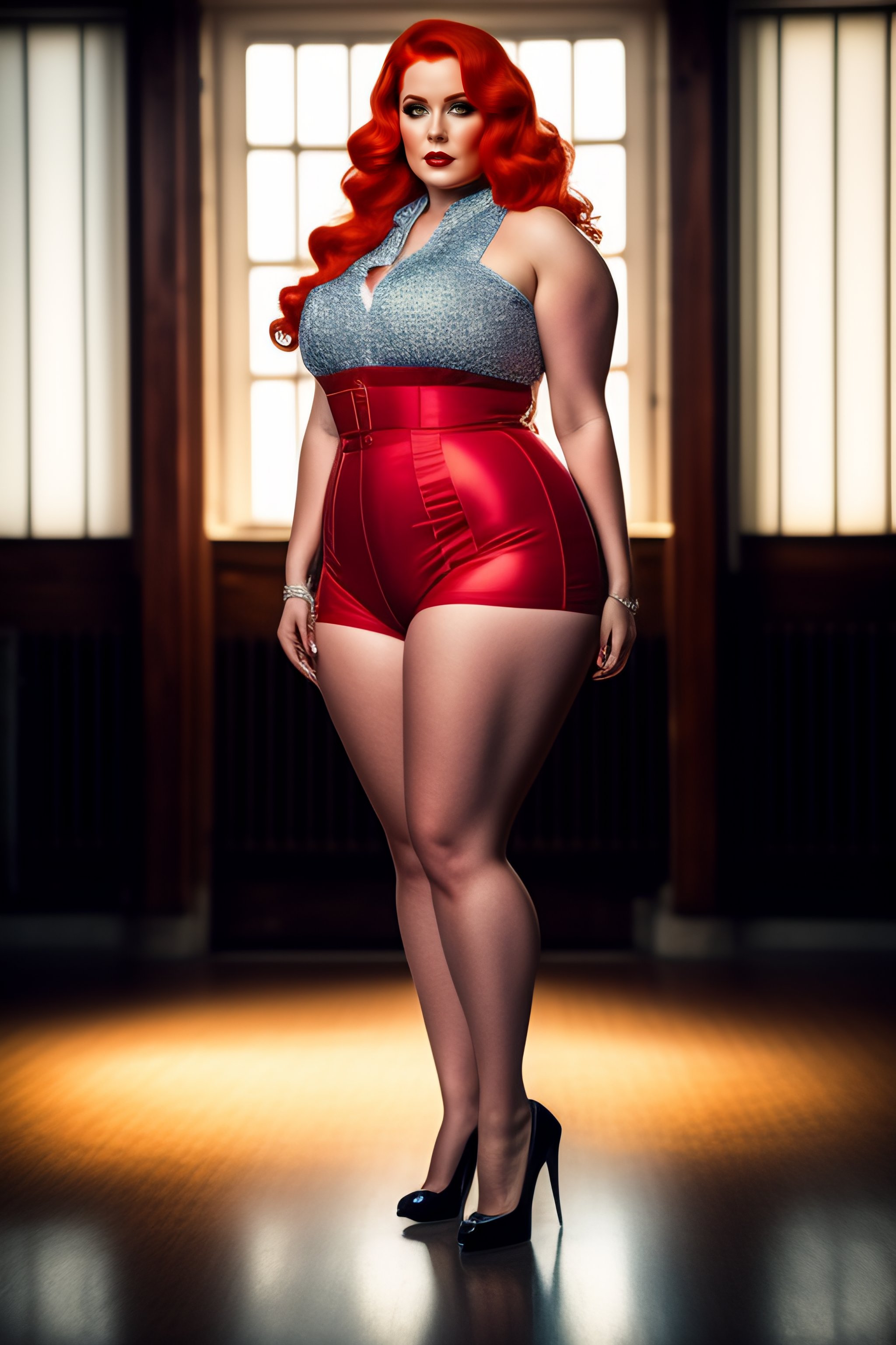 Redhead thick standing symmetrical pinup