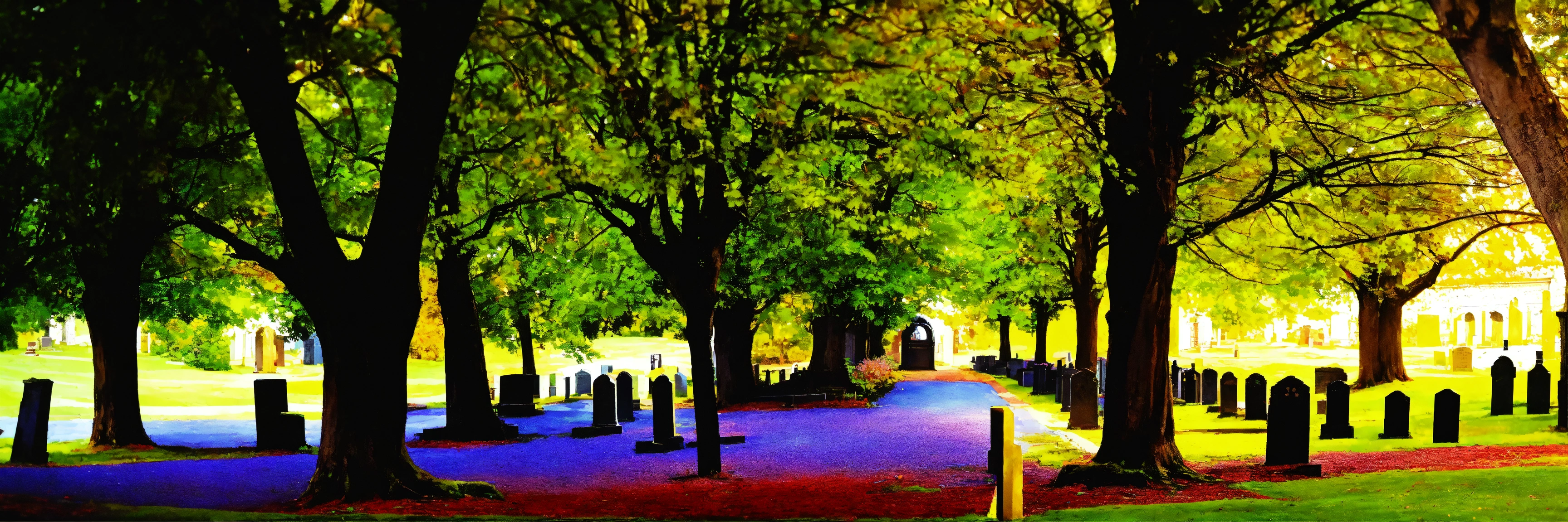 Passionate, thoughtful tour of goth / post-punk music & bands in manchester! of manchester music tours. manchester macclesfield cemetery, old trees in a row near the sidewalks.