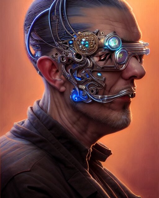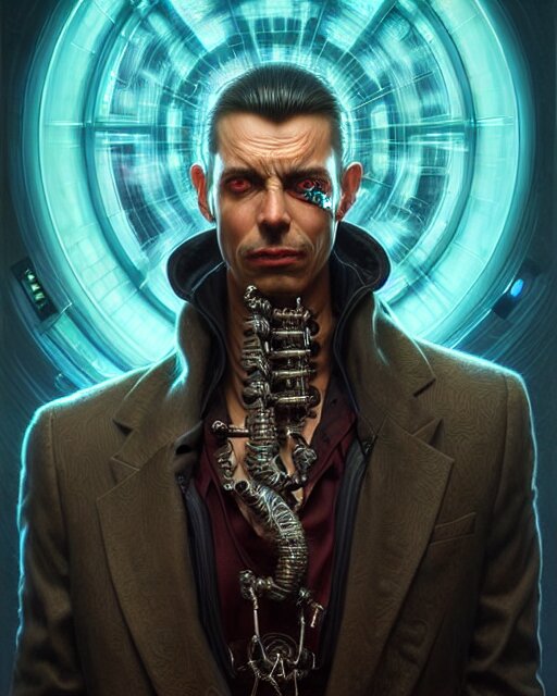 Front shot of a cyberpunk criminal mastermind character, intricate, elegant, highly detailed, centered, digital painting, artstation, concept art, smooth, sharp focus, illustration, artgerm, tomasz alen kopera, peter mohrbacher, donato giancola, joseph christian leyendecker, wlop, boris vallejo, mugshot!!!!!, ugly!!!!!!