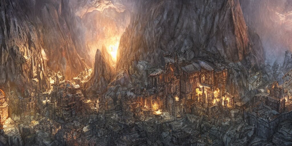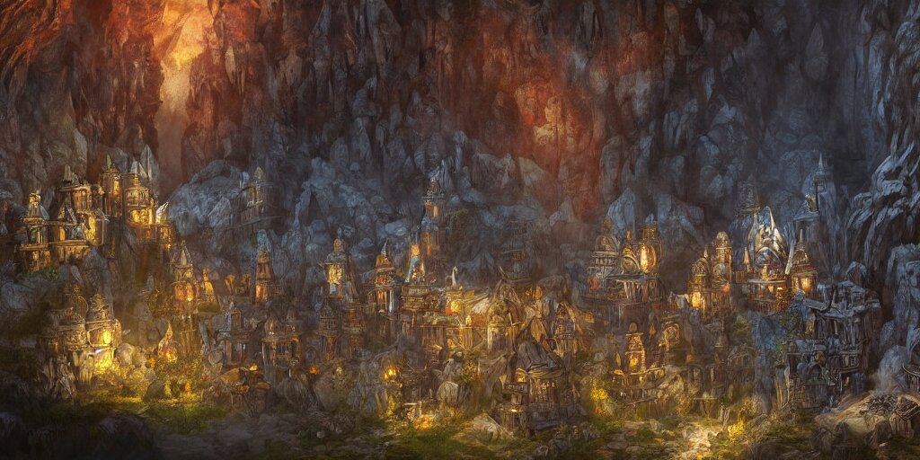 An underground dwarven city as far cry 4 concept art, cavern, beautiful, dwarven architecture, concept art by viktor vasnetsov, concept art, lord of the rings moria, dark lighting, soft pastel by ivan shishkin, dimitri desiron and antonio lopez garcia, hyperborea, high resolution, trending on artstation