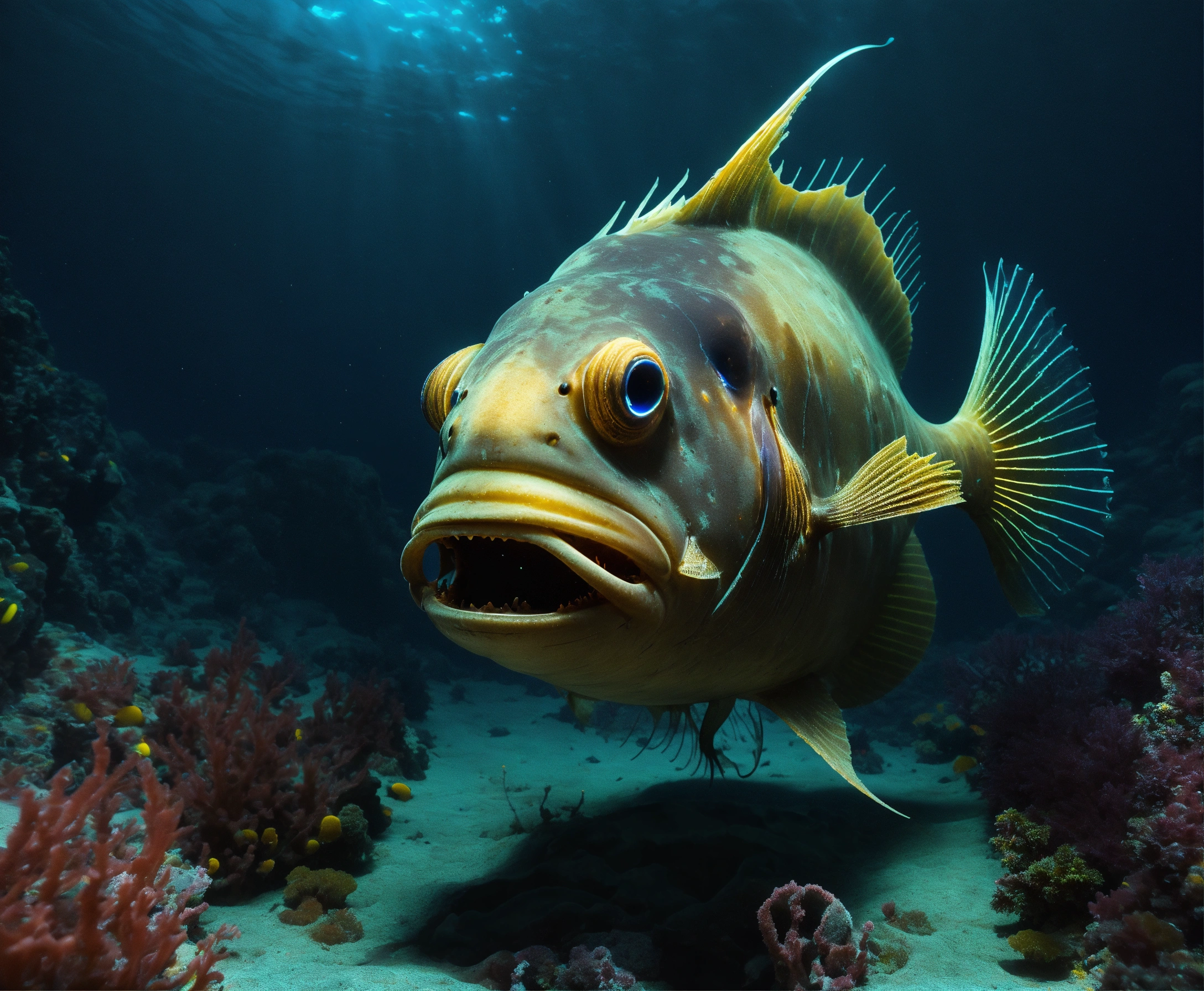 Abyssal anglerfish this deep-sea dweller, in 8k ultra 3d, showcases bioluminescent features that light up the dark ocean depths, creating an eerie and captivating aura.