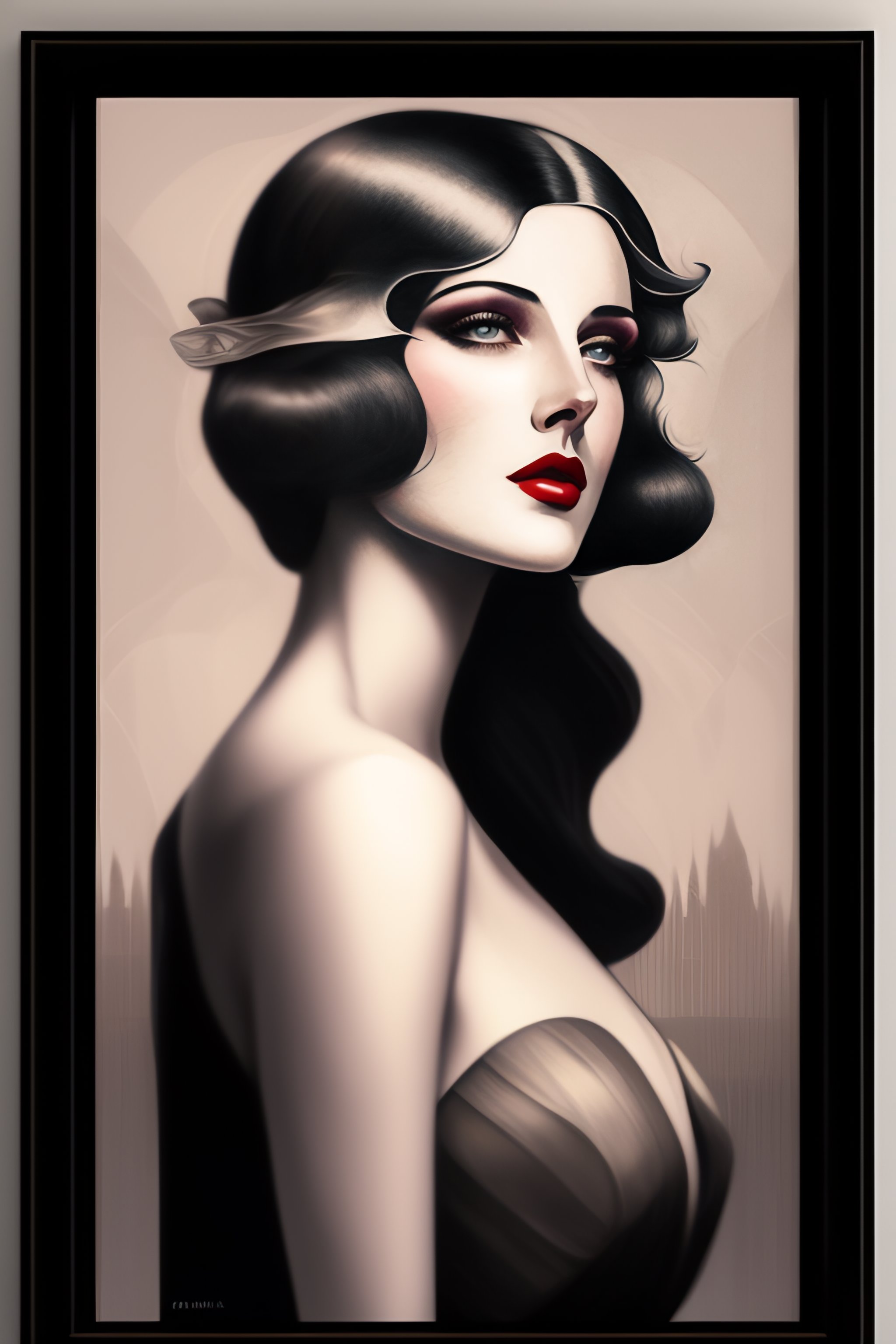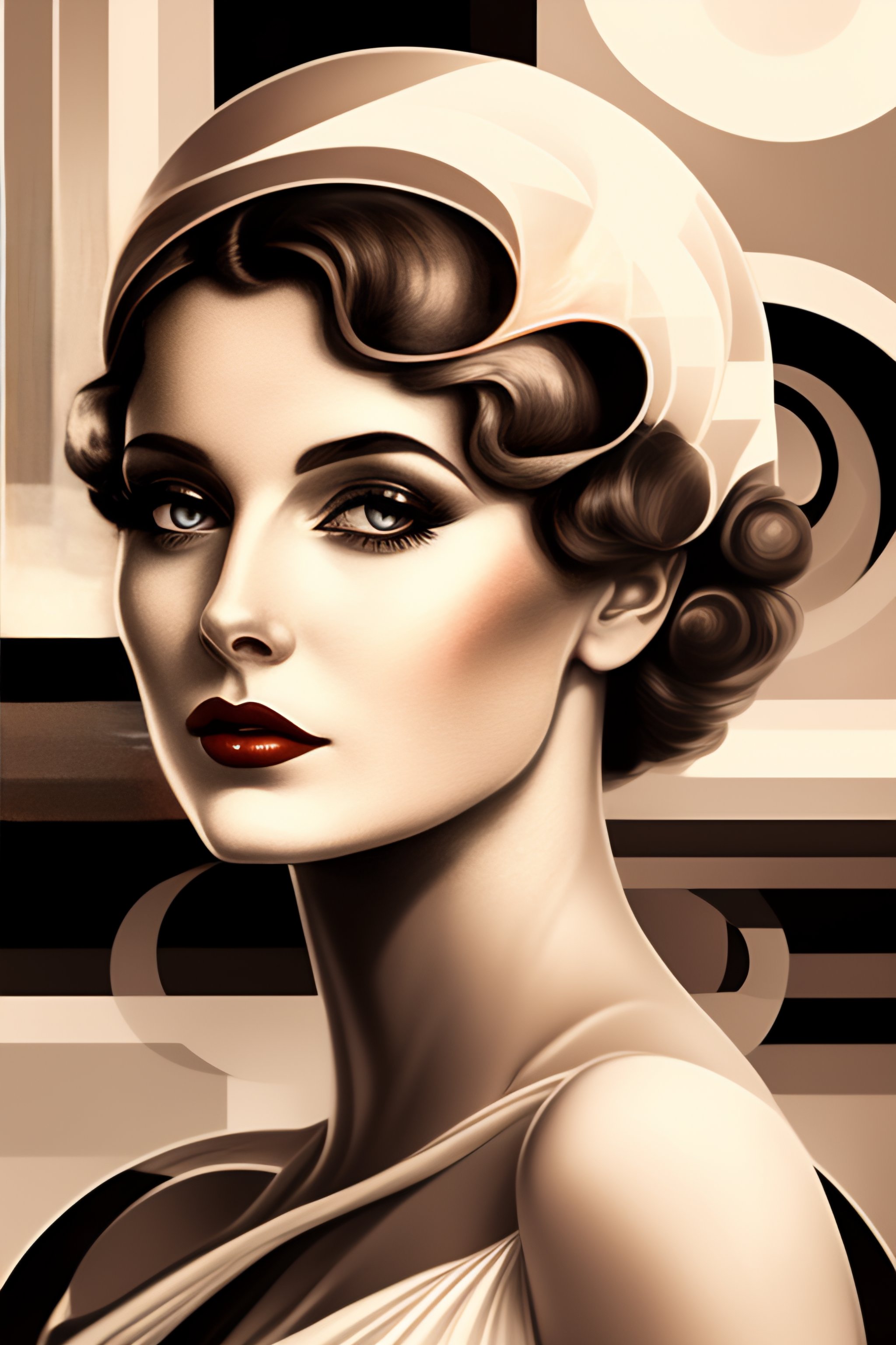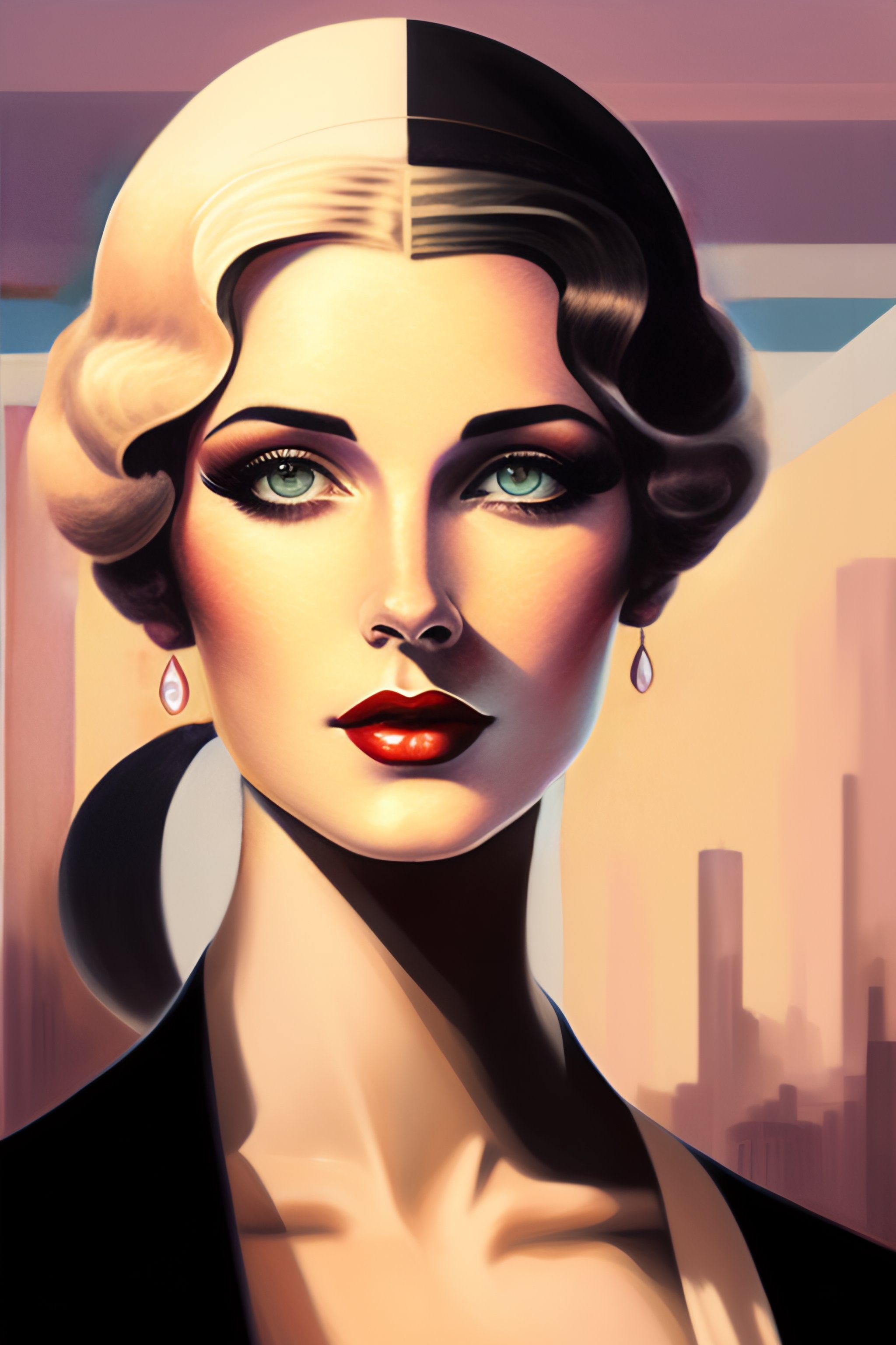 Drawing of a stunning feminine 1920s woman, muted and subtle pastel art deco colors, cubism style, melbourne city background, dark ambient, art noveau line art style